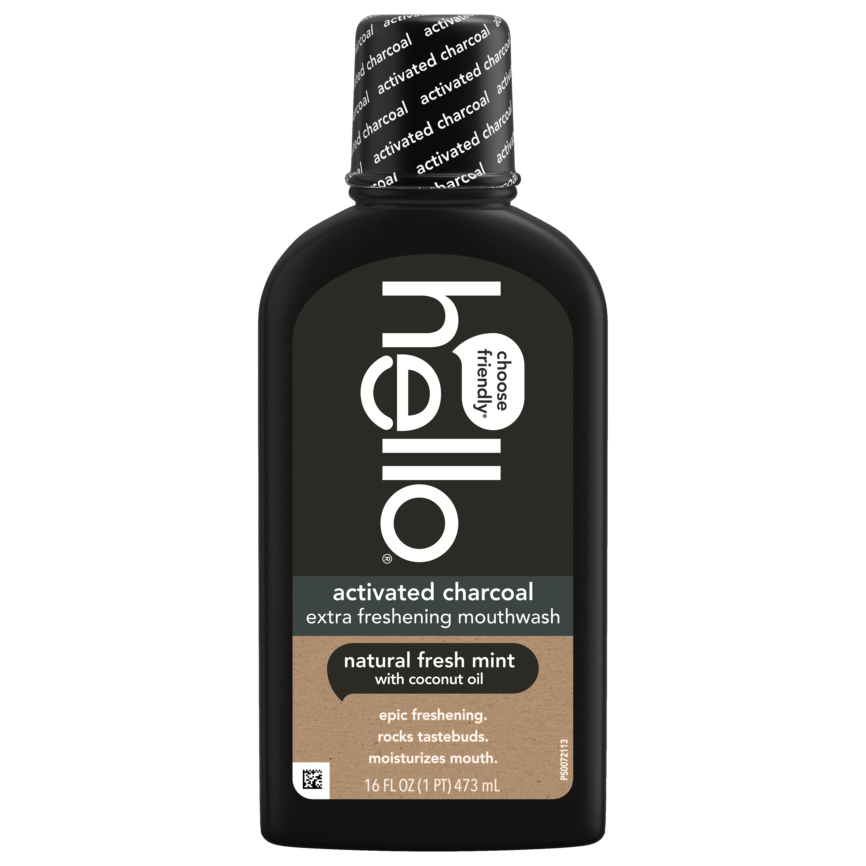 hello Alcohol Free Activated Charcoal Mouthwash, Natural Fresh Mint, 16 Fl Oz Bottle