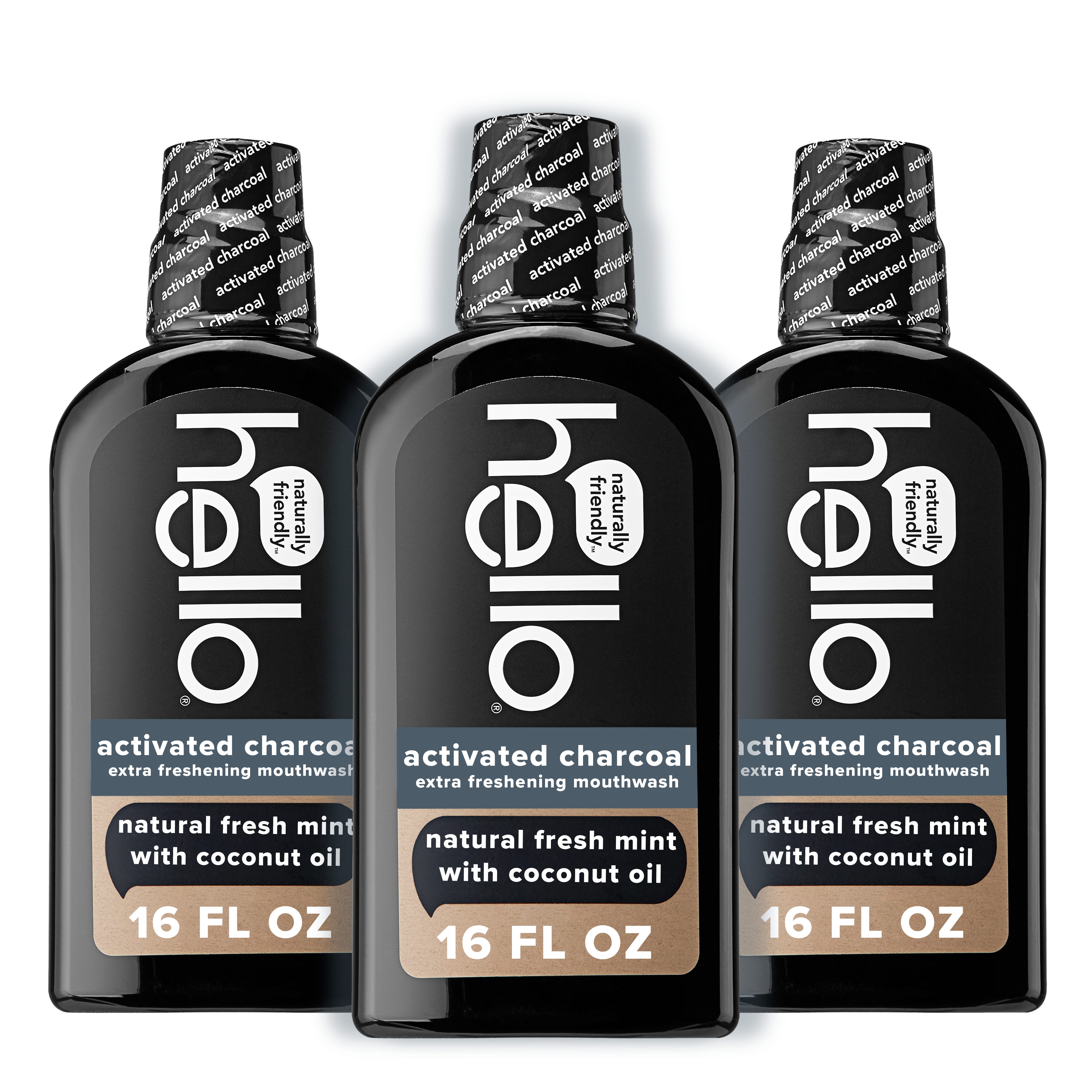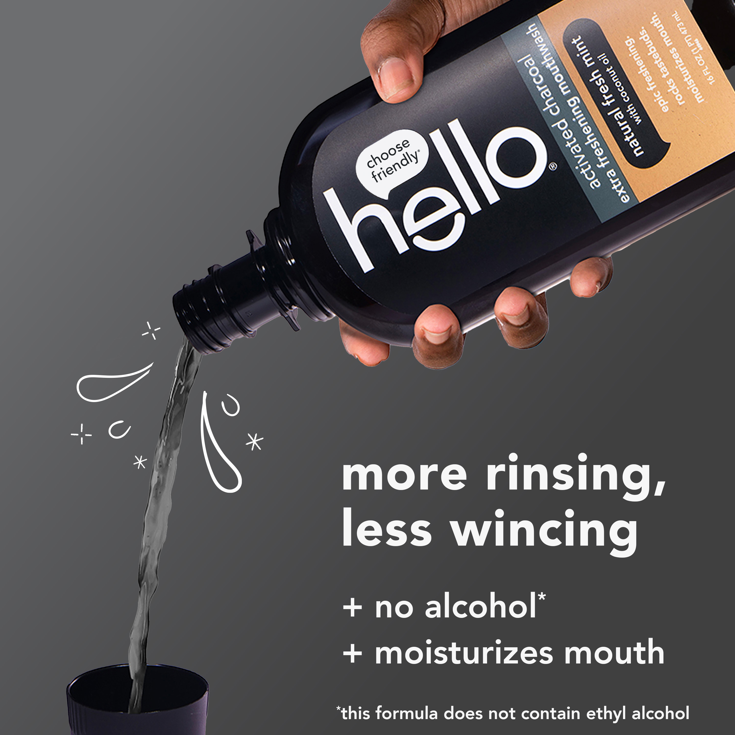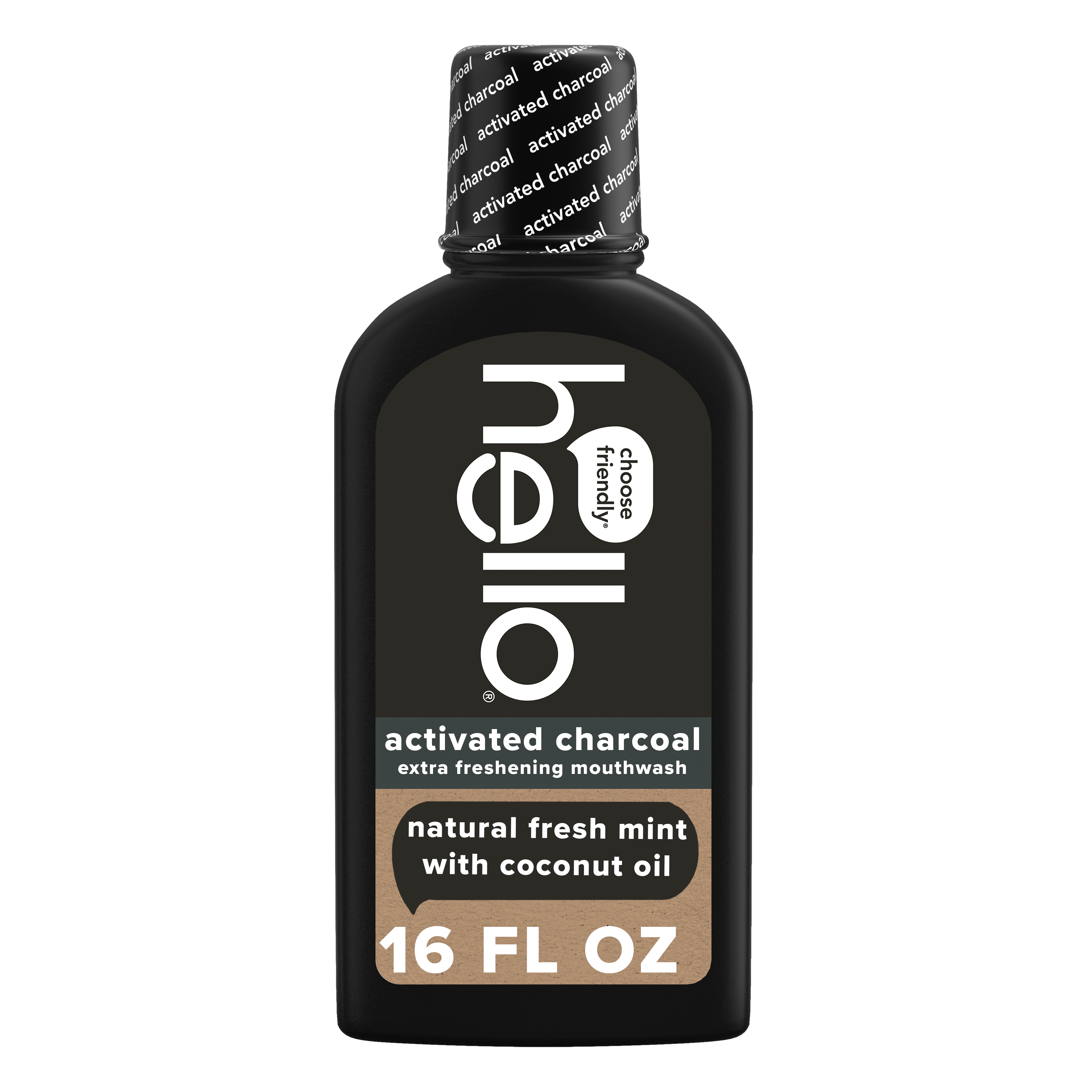 hello Activated Charcoal Extra Freshening Mouthwash, Alcohol Free with Fresh Mint + Coconut Oil, Vegan & SLS Free