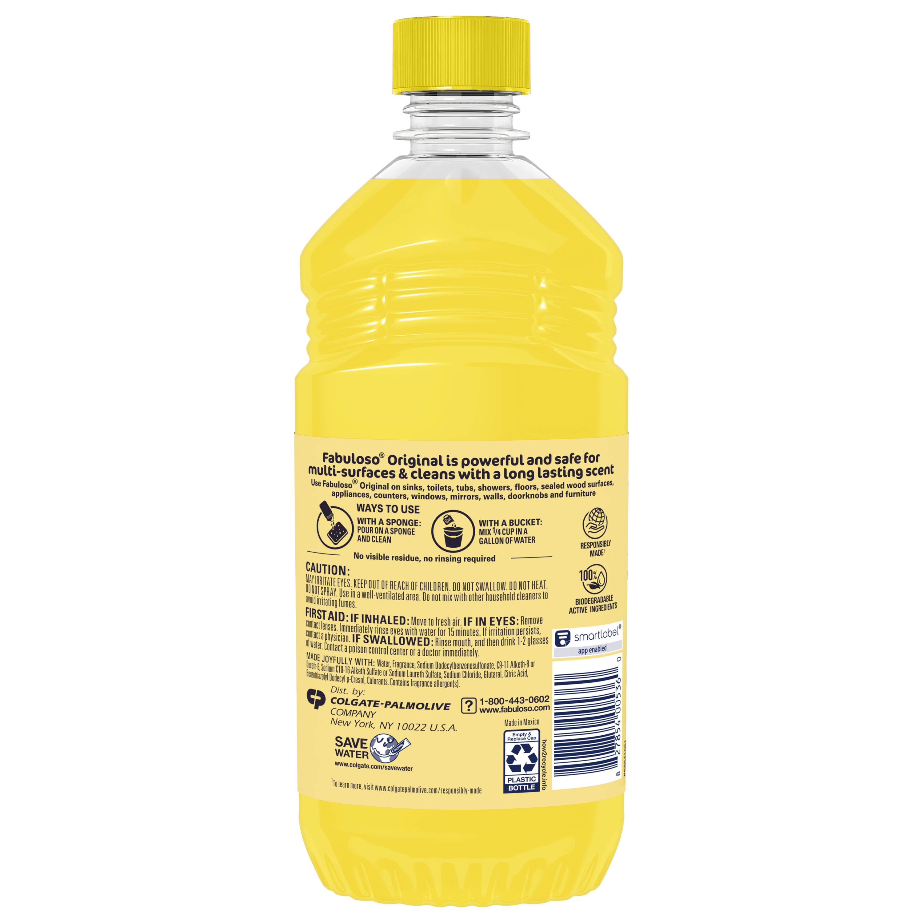 SKU 61028534 Consumer Unit - GTIN 00827854005360 Case - GTIN 10827854005367 Product Category Home Care Product Sub Category Cleaners Liquid / Gel Product Equity (Brand) Fabuloso Product Sub Brand Fabuloso Liq Cln Product Title Fabuloso®, Multi Purpose Cleaner, Refreshing Lemon Scent - 16.9oz Product Description Fabuloso® Multi-Purpose Cleaner- Refreshing Lemon Scent Fabuloso® Multi-Purpose Cleaner in Refreshing Lemon Scent transforms your home with a fresh scent that lasts. Bring the fragrance of Refreshing Lemon indoors, and experience a warm, joyful feeling your friends and family will love. Every colorful pour from the easy-pour bottle delivers a long-lasting, unmistakable freshness and leaves your home bright and clean. Use Fabuloso® Multi-Purpose Cleaner on sinks, toilets, tubs, showers, kitchen and bathroom floors, sealed wood surfaces, appliances, counters, windows, mirrors, walls, doorknobs and furniture, and fill every room in your home with joy. Uplifting fragrances. Clean surfaces. Irresistible joy. Life isn’t always easy, but cleaning it up sure can be. Fabuloso® combines cleaning power with fresh scents that fill your home with joy, to make it a welcoming place no matter how hard your day. From the kitchen to the bathroom and beyond, Fabuloso® Multi-Purpose has a wide variety of long-lasting fragrances that deliver hope for a better tomorrow. Try all of our uplifting scents: Lavender, Passion of Fruits, Citrus & Fruits with Baking Soda, Bleach Alternative Spring Fresh, Tropical Spring, Ocean Paradise, Apple & Vinegar Scent, and Orange Scent with Baking Soda. Shared Moments of Joy All Over the World Our story begins in Venezuela, circa 1980. Cleaning products lacked fragrance and distinction. But families wanted lasting scents that kept their homes fresh and clean for hours. Enter the bold colors and joyful fragrances of Fabuloso® ! 16 years later, families across America also got to experience the joy: we became a household staple thanks to our rainbow of colors and playful, distinctive scents. Today, across the world, we’re more than cleaning products. We’re a catalyst for joy. Bullet 1 Fabuloso® is powerful and safe for multi-surfaces. Bullet 2 Meant for use on sinks, toilets, tubs, showers, kitchen and bathroom floors, sealed wood surfaces, appliances, counters, windows, mirrors, walls, doorknobs, and furniture. Bullet 3 There is no rinsing required when using Fabuloso®. Bullet 4 The Active Ingredients in Fabuloso® are 100% Biodegradable. Bullet 5 Fabuloso® is Responsibly Made** (**to learn more visit www.colgatepalmolive.com/responsibly-made.) Bullet 6 Available in: Lavender Scent, Refreshing Lemon Scent, Passion of Fruits Scent, Citrus & Fruits with Baking Soda Scent, Ocean Paradise Scent, Spring Fresh Scent, Tropical Spring Scent, Apple & Vinegar Scent, and Orange Scent with Baking Soda Scent. Bullet 7 Fabuloso® comes in a variety of convenient sizes: 16.9oz, 16.9oz+30%, 22oz, 28oz, 33.8oz, 56oz, 128oz, 169oz, 210oz. Bullet 8 Can be used with a sponge: pour on a sponge and clean. Bullet 9 Clean with a bucket mix ¼ cup in a gallon of water. Dollar Tree RPC 291329