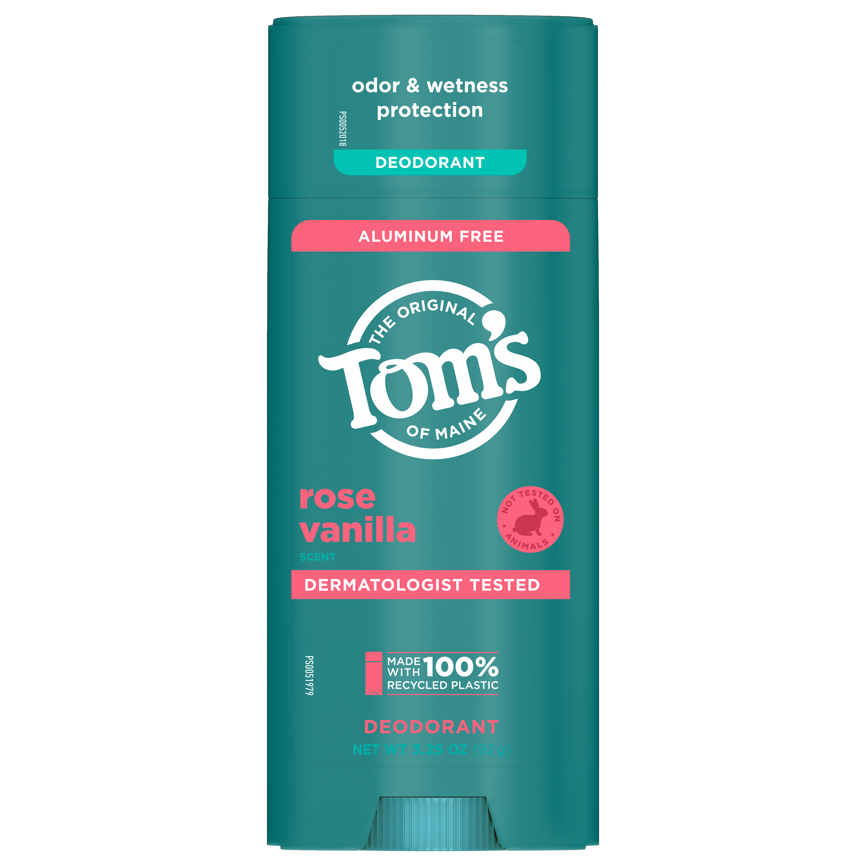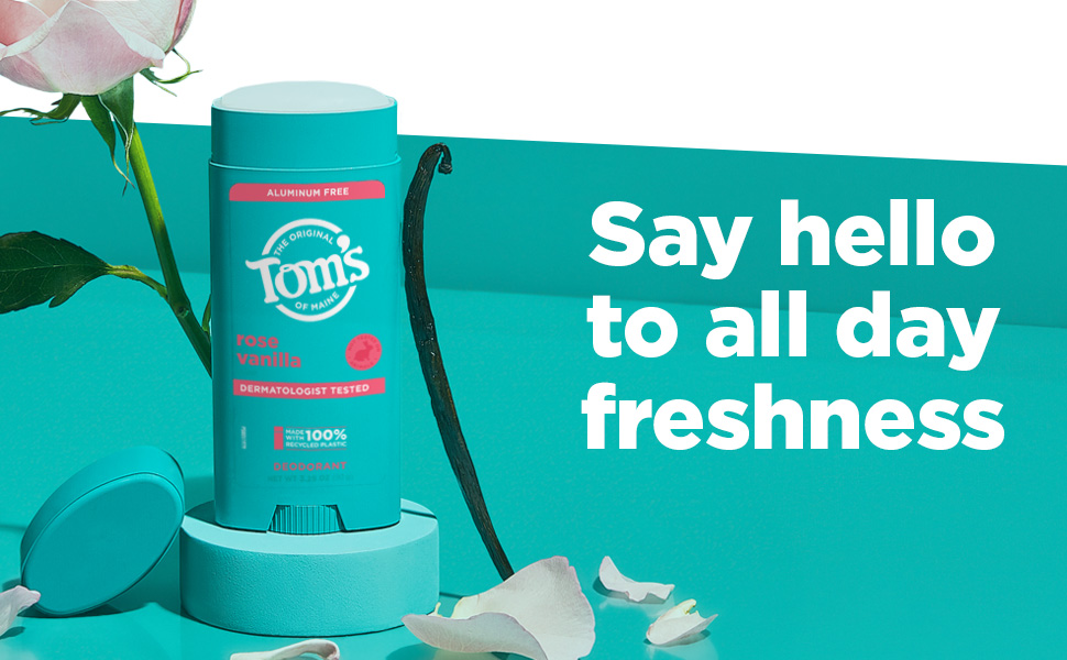 SKU 61028966 Consumer Unit - GTIN 00827854005919 Case - GTIN 10827854005916 Product Category Personal Care Product Sub Category AP > Deo Product Equity (Brand) Tom's of Maine Product Sub Brand Tom's AP/Deo Product Title Tom’s of Maine Rose Vanilla Natural Deodorant, Aluminum Free, Clear Application, Odor & Wetness Protection, Naturally Derived Ingredients, 3.25 oz Product Description Embrace the refreshing, aromatic scent of Rose Vanilla with Tom’s of Maine Natural Deodorant. Our stick deodorant is a breakthrough in odor and wetness protection, powered by naturally derived, moisture-locking ingredients that keep you feeling confident all day long. Designed for a smooth glide, our deodorant goes on clear and stays clear, ensuring a seamless application every time. Made with natural fragrance, it delivers a Rose Vanilla scent with rich floral notes of rose and a warm hint of vanilla, creating an uplifting and soothing experience. Our formula is aluminum free, dermatologist tested, and free from artificial fragrances, dyes, preservatives, and baking soda. Plus, it’s cruelty-free, never tested on animals. We’re committed to sustainability, which is why our containers are made with 100% recycled plastic. As a member of The Recycling Partnership (TRP) polypropylene (PP) coalition, Tom's of Maine actively supports additional PP recycling initiatives across the United States. Transitioning to a natural deodorant? Give your body time to adjust—aluminum from antiperspirants can linger in your pores for about two weeks. After that, you’ll experience the full benefits of our natural, effective formula. Tom's of Maine: A natural approach to personal care that doesn't compromise on performance. Choose your favorite scent and enjoy all-day freshness. eCommerce Copy- Long Description Tom’s of Maine natural deodorant is designed with inclusivity in mind, offering options for men, women, and really, it's for everyone, because feeling fresh and confident knows no gender boundaries. Our underarm deodorant stick provides effective odor and wetness protection, keeping you comfortable throughout the day. This natural deodorant features the captivating fragrance of Rose Vanilla, providing a delightful scent for all. With the power of naturally sourced and derived, moisture-locking ingredients, we keep you feeling refreshed. Rest easy knowing that Tom’s of Maine’s next generation deodorant is dermatologist tested, made with aloe vera, and free from artificial fragrances, dyes, preservatives and baking soda. Plus, we’re doing our part with our new container made with 100% recycled plastic in a new bigger size v. our prior deodorants. A natural approach to personal care without compromising on performance? Yes, please! At Tom’s of Maine, we’re a certified B Corporation committed to creating vegan deodorants with natural fragrances and naturally sourced and derived ingredients that are safe and effective, while giving back 10% of annual profits to charity. Smell good, feel good. Bullet 1 WHAT'S INCLUDED: One (1) 3.25 oz Tom's of Maine Rose Vanilla natural underarm deodorant for women and men Bullet 2 ODOR AND WETNESS PROTECTION: Our breakthrough aluminum-free underarm deodorant offers odor and wetness protection, with naturally sourced and derived ingredients. With over 10 scents, it's truly for everyone Bullet 3 GOES ON CLEAR, STAYS CLEAR: Enjoy a deodorant that goes on clear and stays clear, keeping you feeling confident throughout your day Bullet 4 DESIGNED FOR SMOOTH GLIDE: Experience a smooth, easy application with our deodorant, formulated to glide effortlessly across your skin Bullet 5 NATURAL FRAGRANCE: Infused with the rich, floral scent of Rose Vanilla, our deodorant features natural fragrance with notes of rose and warm vanilla to keep you feeling refreshed and soothed Bullet 6 DERMATOLOGIST TESTED: Our deodorant is dermatologist tested and free from artificial fragrances, dyes, preservatives, and baking soda Bullet 7 CONTAINER MADE WITH 100% RECYCLED PLASTIC: As a member of The Recycling Partnership (TRP) polypropylene (PP) coalition, Tom's of Maine supports increased PP recycling across the United States Amazon RPC B0CB1RZWSL AMZ URL https://www.amazon.com/dp/B0CB1RZWSL