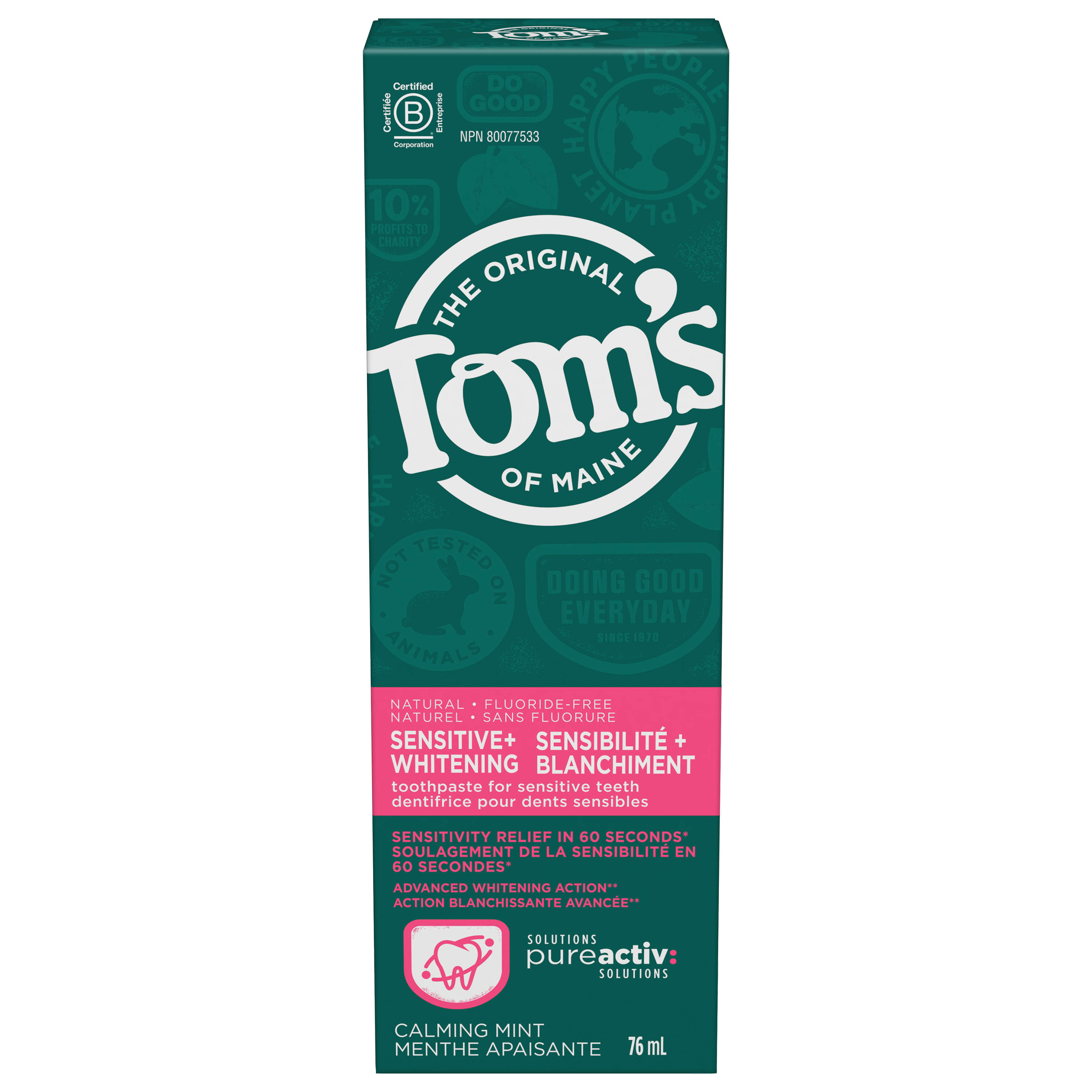 Tom's of Maine Sensitive and Whitening Toothpaste, Fluoride Free, Calming Mint, 76 mL