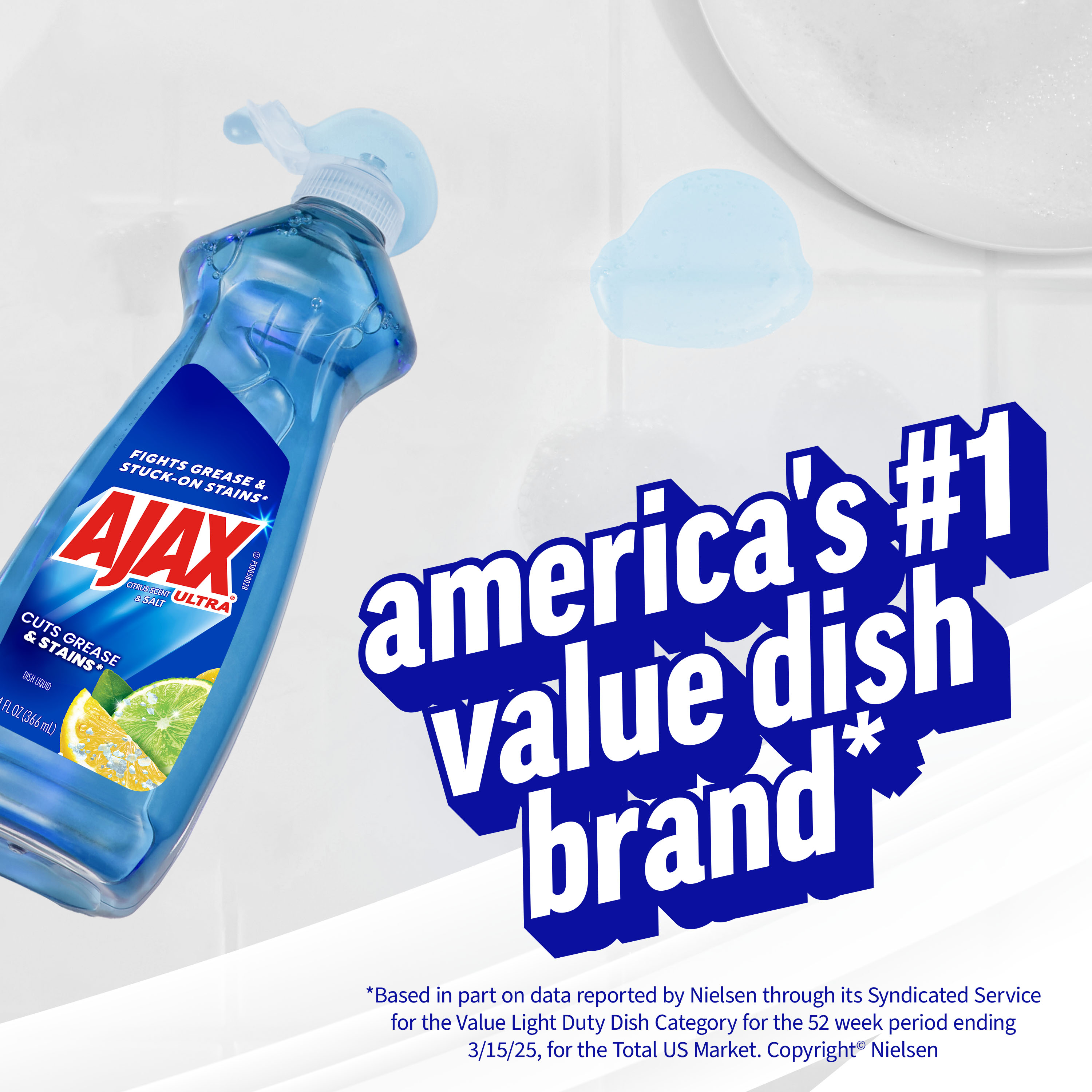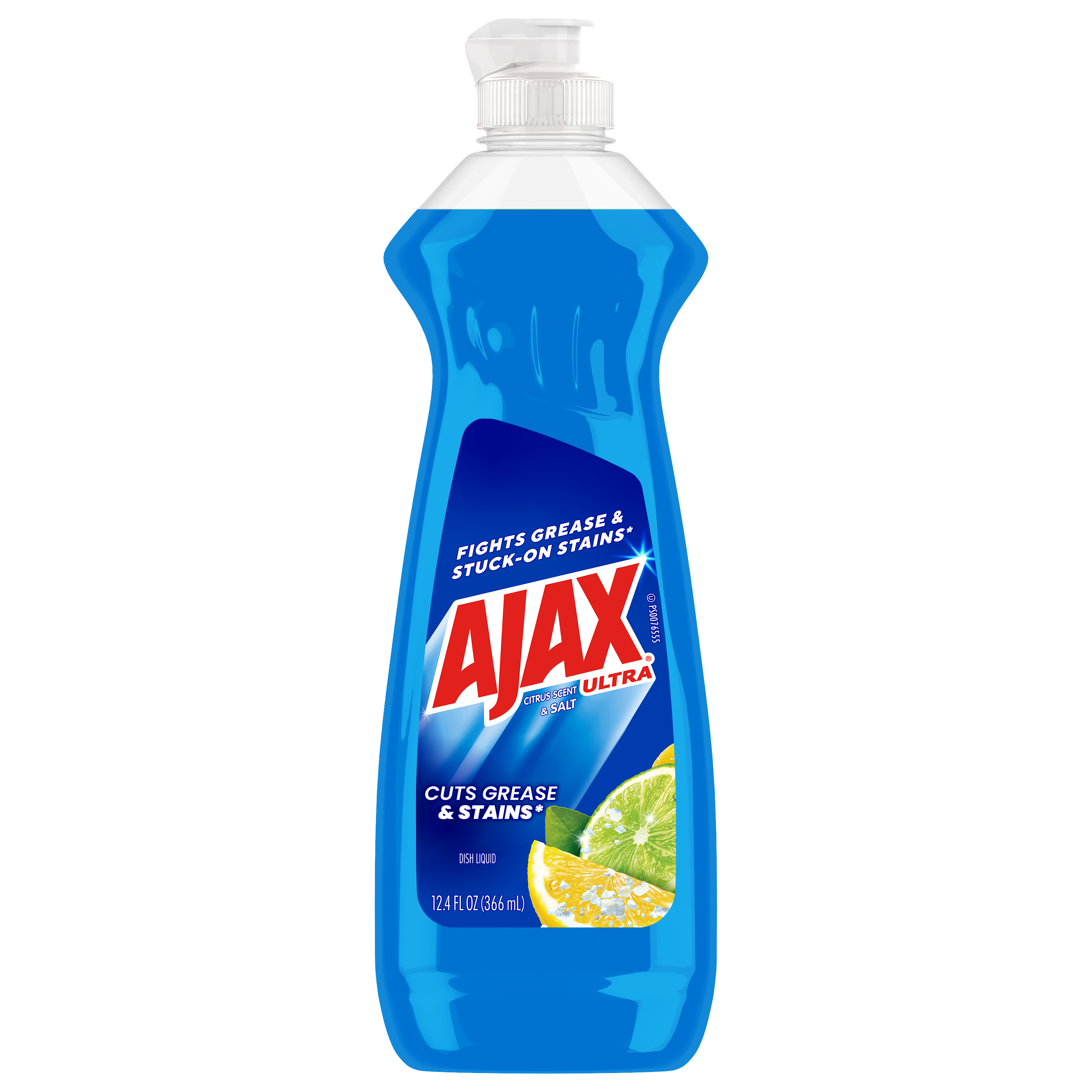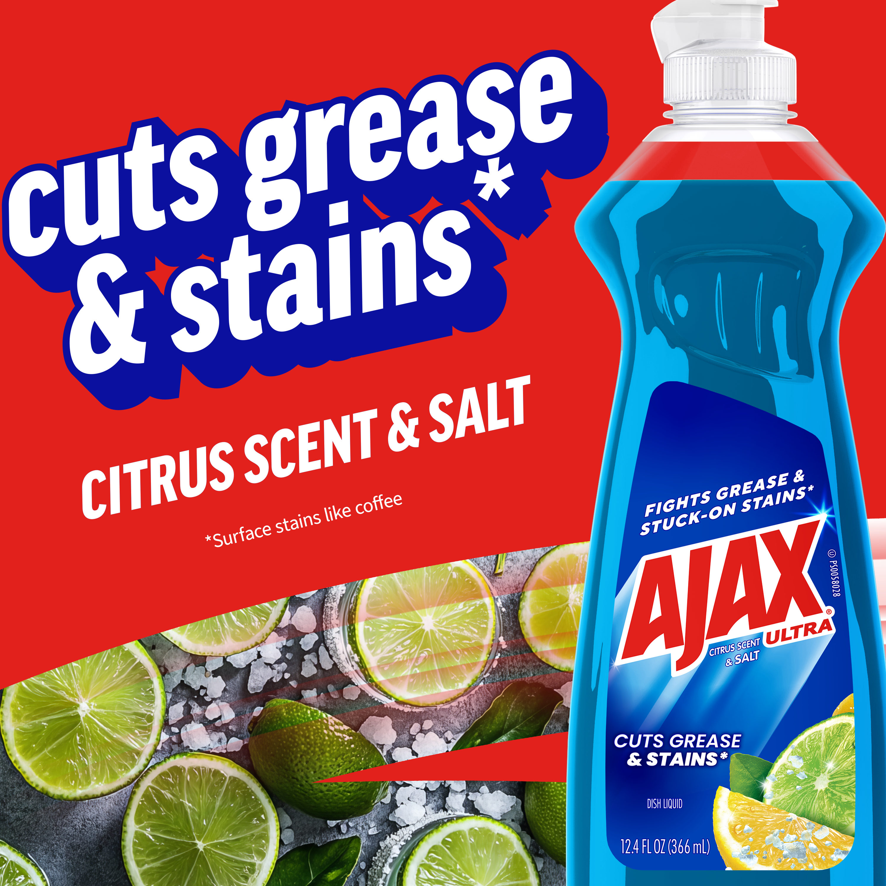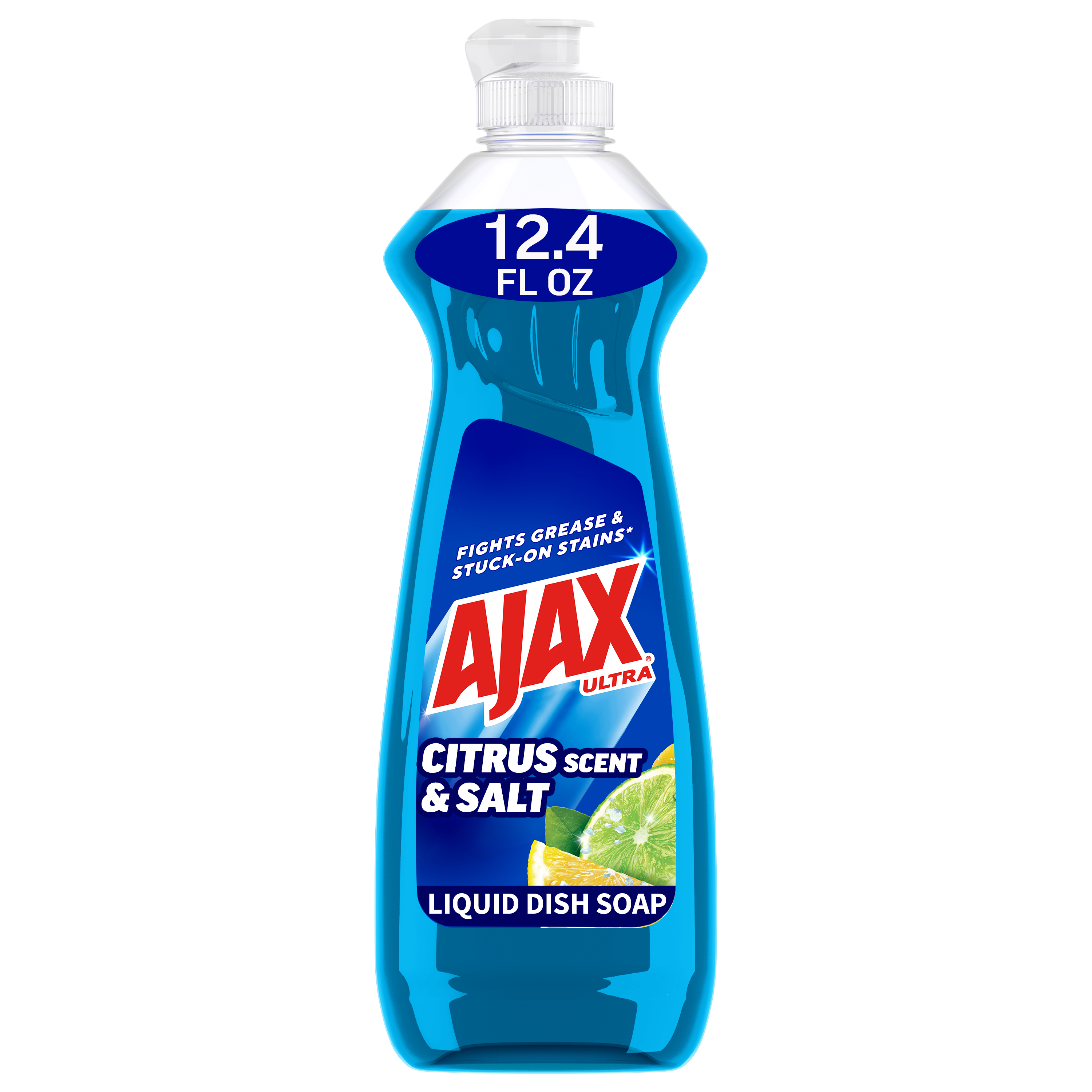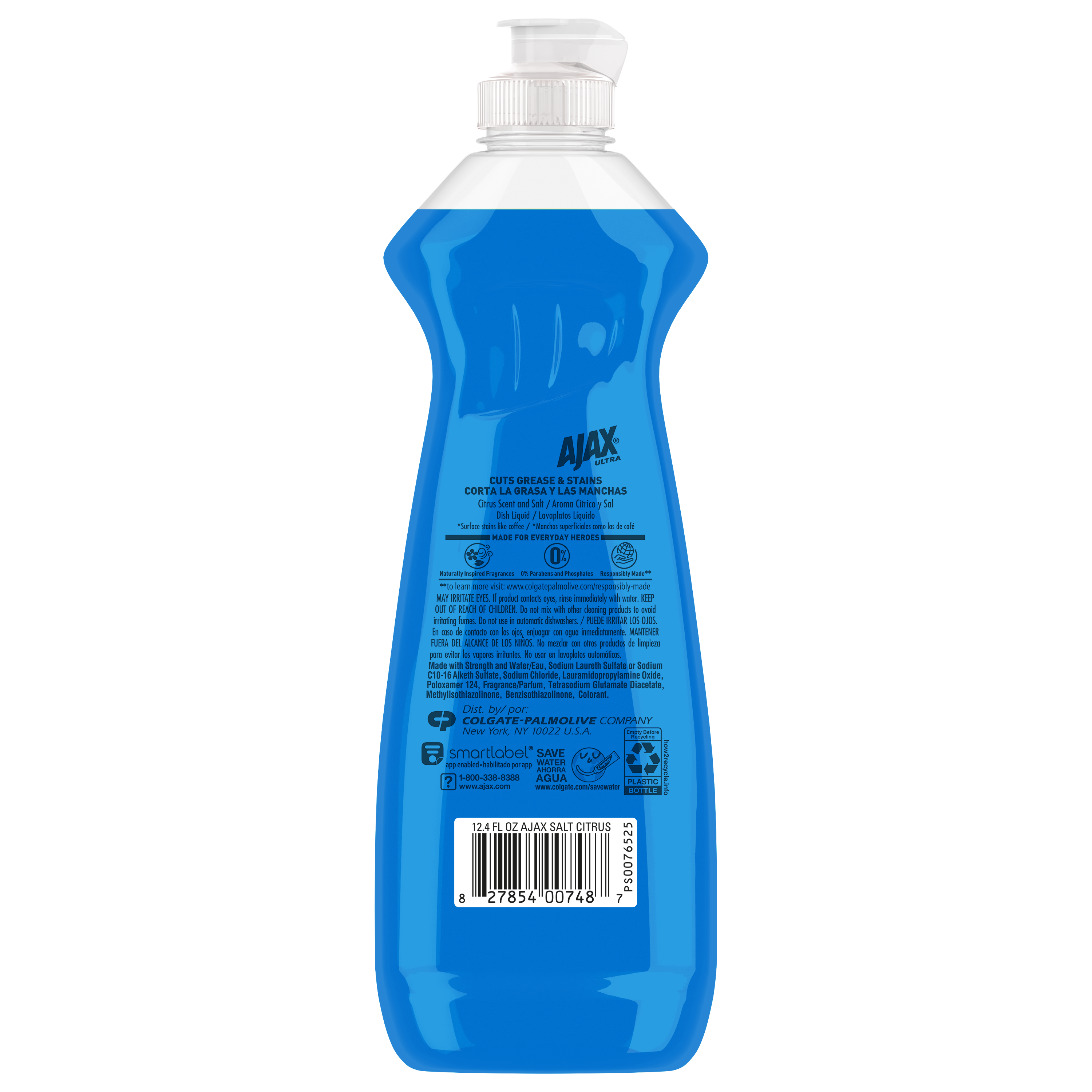 Ajax Ultra Liquid Dish Soap Citrus Scent and Salt, Cuts Grease and Stains, 12.4 oz Bottle