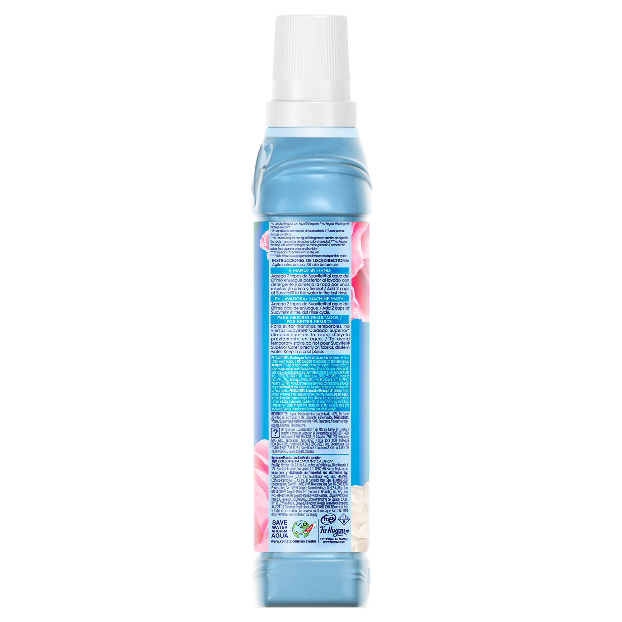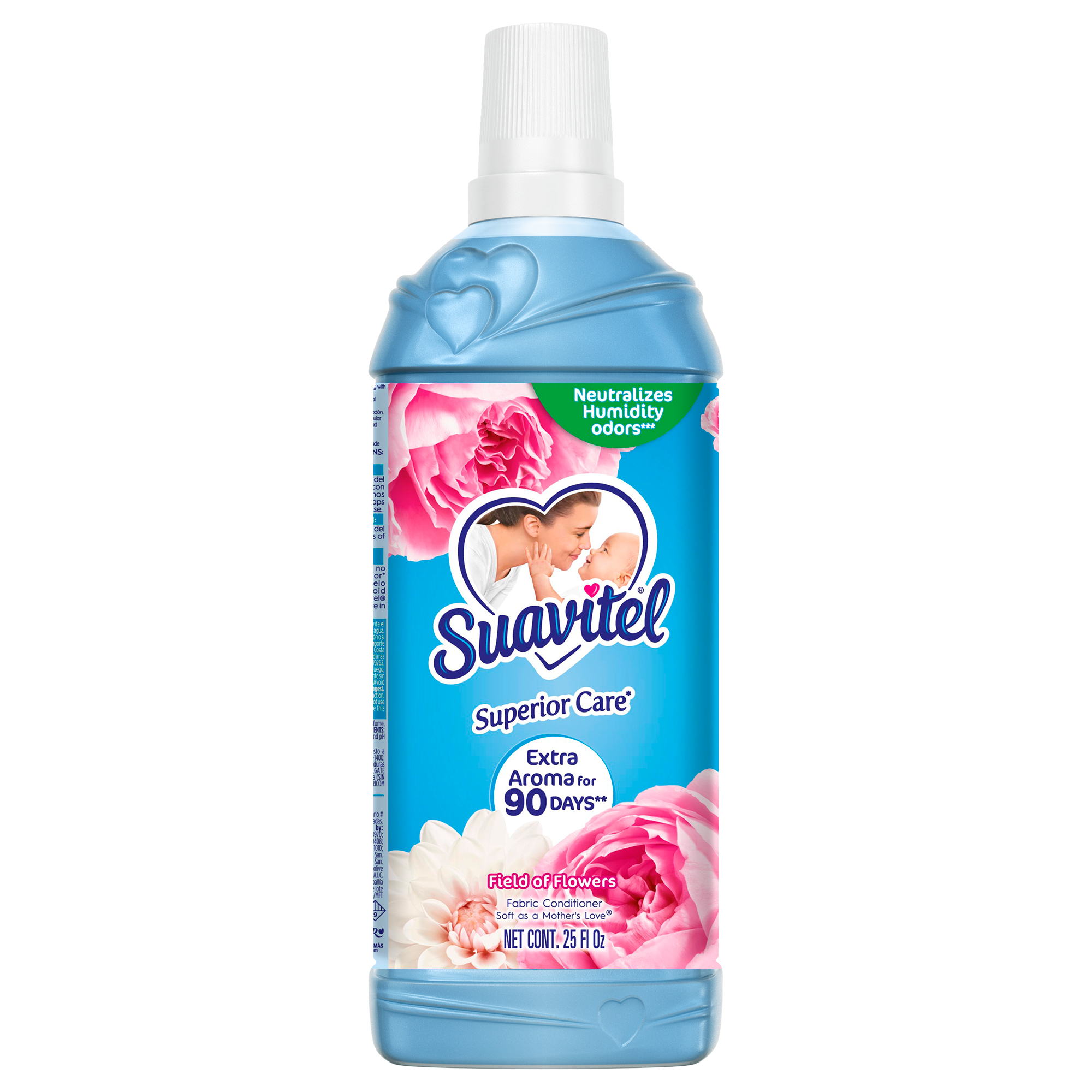SKU 61032794 Consumer Unit - GTIN 00827854008163 Case - GTIN 10827854008160 Product Category Home Care Product Sub Category FC Liquids Product Equity (Brand) Suavitel Product Sub Brand Suavitel Liq FC Product Title Suavitel Fabric Softener, Field Flowers - 25oz eCommerce Copy- Long Description A field of freshness in every bottle Bring your family the loving, lasting scent of fresh cut flowers. Suavitel Field Flowers Liquid Fabric Softener brings the naturally-inspired fragrance of fresh cut flowers indoors, giving your clothes and your home an outdoor freshness that lasts for weeks.A little bit floral with a bright and fruity undertone, the soft, delicate aroma gives you, your family and your home an outdoor freshness that lasts for weeks…. and loving smiles that bloom all year. A loving touch that lasts When it comes to your clothing, family and home, Suavitel Liquid Fabric Softener delivers a warm, loving touch that lasts. Irresistible softness and naturally-inspired fragrances combine to create 45 days of freshness that truly smells like home. Compatible and safe to use with regular and HE washing machines, Suavitel® Liquid Fabric Softener brings a loving, long-lasting freshness to your laundry and your life. For even better laundry results, pair Suavitel Liquid Fabric Softener with Suavitel Dryer Sheets for extra freshness! 50 Years of Loving Softness, Freshness & Care For decades, people have chosen Suavitel for the way it makes their laundry smell and feel - but also for how it makes them feel at home. Suavitel is more than just the sum of its parts: it’s unconditional love, bottled. Today, our fabric conditioners are accessible and affordable, responsibly made,* and are safe for all washing machines. As a brand, we care about more than your clothes - we are committed to helping you care for what you love most and helping you give your family a loving touch that lasts. *To learn more, visit www.colgatepalmolive.com/responsibly-made
