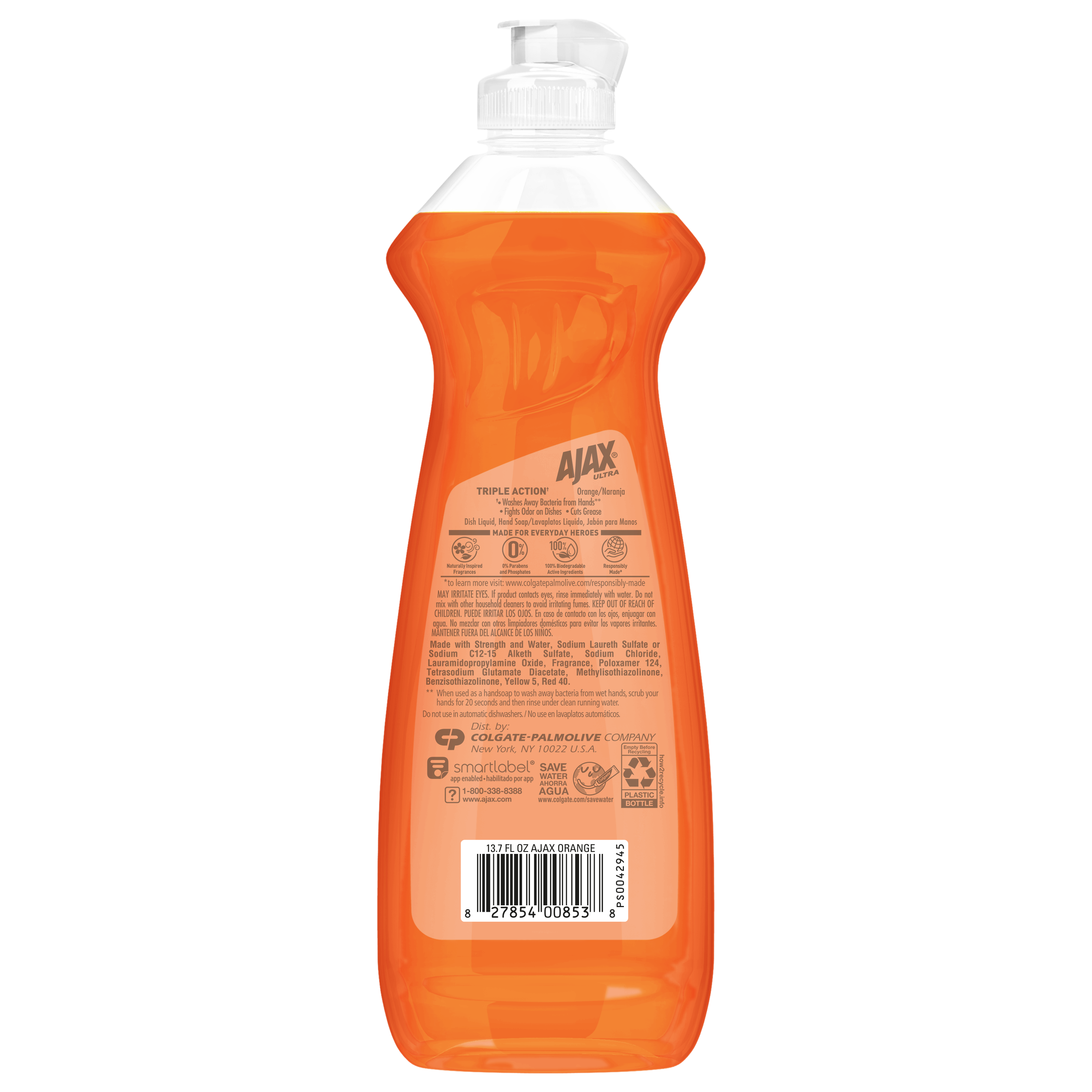 SKU 61033204 Consumer Unit - GTIN 00827854008538 Case - GTIN 10827854008535 Product Category Home Care Product Sub Category Dish Hand Product Equity (Brand) Ajax Product Sub Brand Ajax HD Product Title Ajax Ultra Triple Action Liquid Dish Soap, Orange Scent - 13.7 Fluid Ounce eCommerce Copy- Long Description Experience the power of triple action.