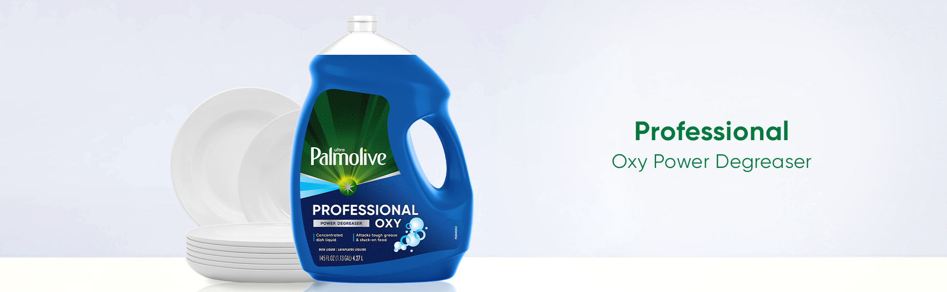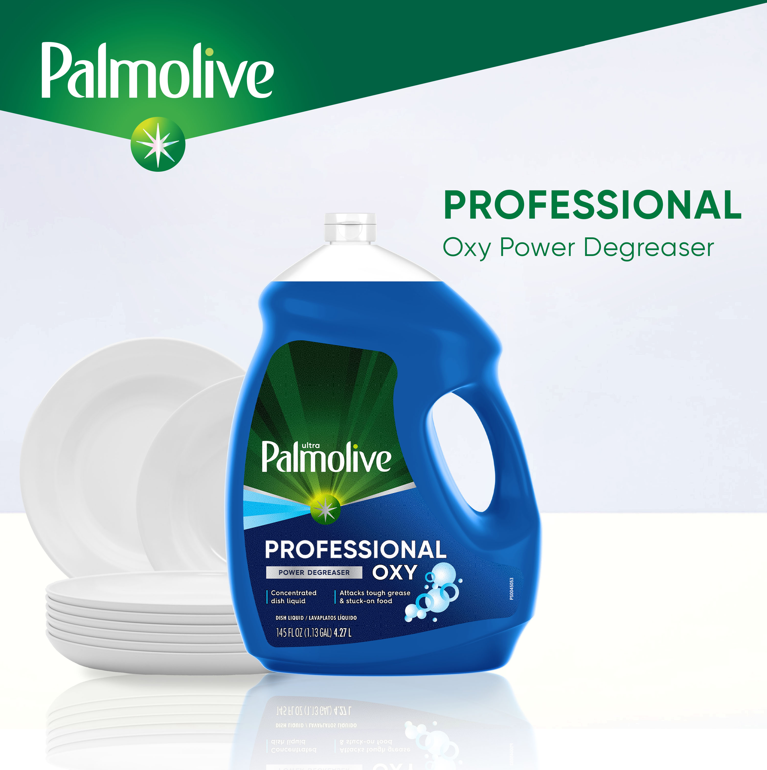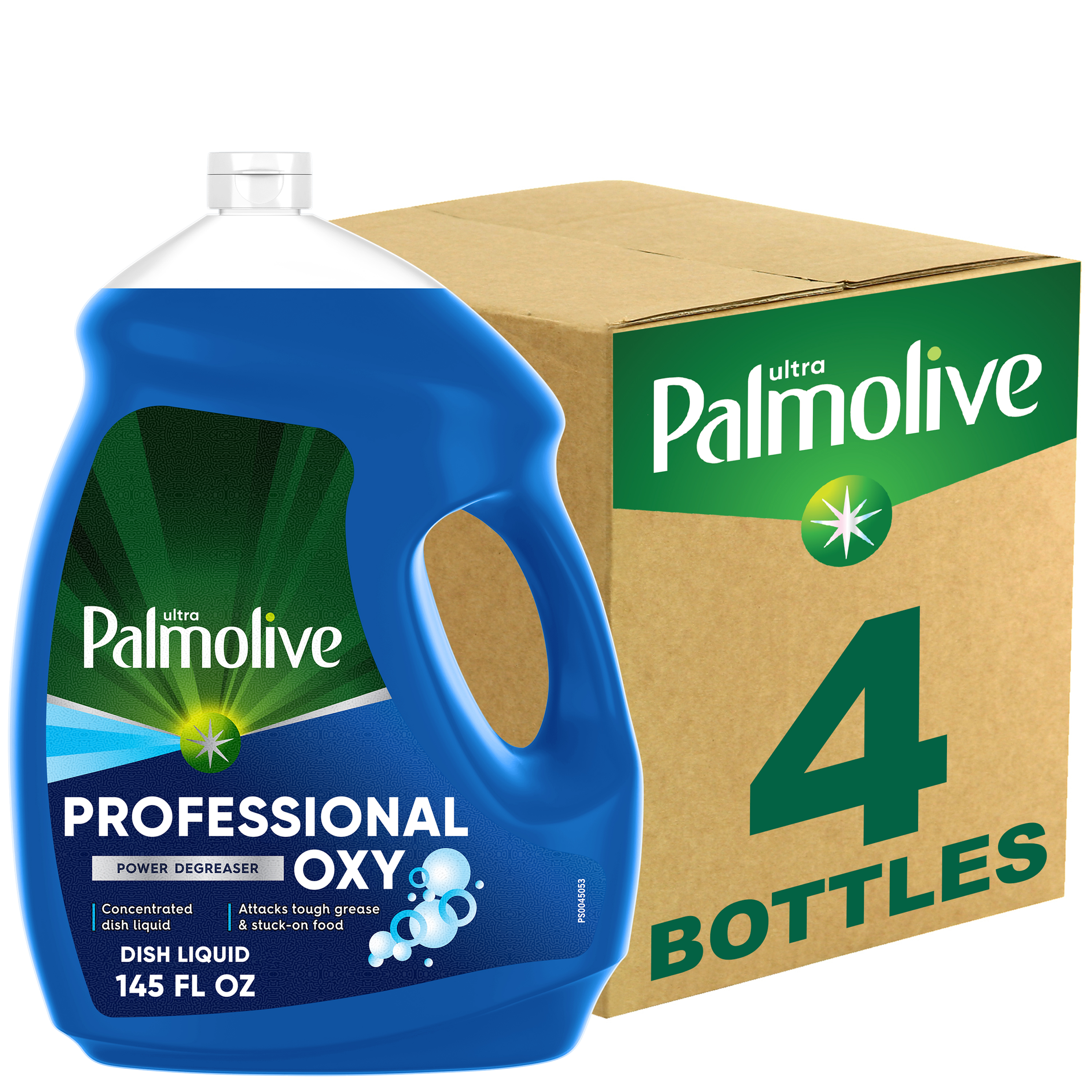SKU 61034143 Consumer Unit - GTIN 00827854009313 Case - GTIN 10827854009310 Product Category Home Care Product Sub Category Dish Hand Product Equity (Brand) Palmolive Product Sub Brand Palmolive Oxy Plus Ultra HD Product Title Palmolive Professional Dishwashing Liquid Dish Soap, Oxy Power Degreaser - 145 Fluid Ounce eCommerce Copy- Long Description Deep grease-cutting power is in your hands Attack grease and hard-to-clean surface stains with Palmolive Professional Oxy Power Degreaser Liquid Dish Soap. This highly concentrated formula can tackle tough food service dishwashing tasks, and can also be used as a presoak for heavily soiled dishes. This product combines the grease-cutting power of Palmolive with oxygenated cleaning action, creating a powerful grease dissolver that leaves the dirtiest dishes sparkling clean. Palmolive Professional Oxy Power Degreaser also makes a great all-purpose cleaner—use it to clean countertops, tables, and stainless surfaces. Palmolive: Delivering 50+ Years of Trusted Clean and Care For over 50 years, households have relied on Palmolive for powerful grease cutting in the kitchen and beyond. And now, we’re thinking about what we can do for the next 50. Palmolive has always engineered our dishwashing liquid to be tough on grease yet soft on hands. Today, this extends to caring for the planet, too: Palmolive: Tough on Grease, Gentle on Planet Made in a TRUE Zero Waste Certified Manufacturing Facility* 100% Biodegradable Cleaning Ingredients 0% Parabens and Phosphates No matter which of our Palmolive Dish Soaps you choose, you can rest assured you’re taking a small step towards making a big difference. *TRUE is a zero waste certification program for businesses to assess performance in reducing waste. Learn more at true.gbci.org.