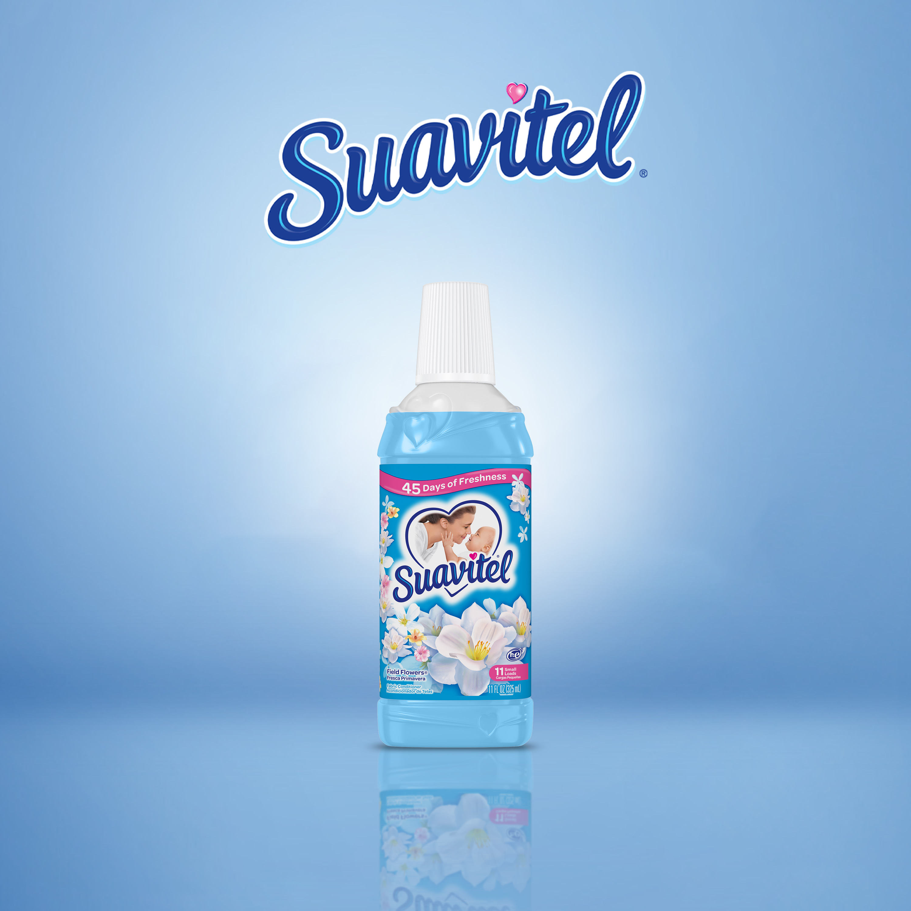 Suavitel Liquid Fabric Conditioner, Laundry Fabric Softener, Field Flowers Scent, 11 oz, Enough Liquid For 11 Small Loads