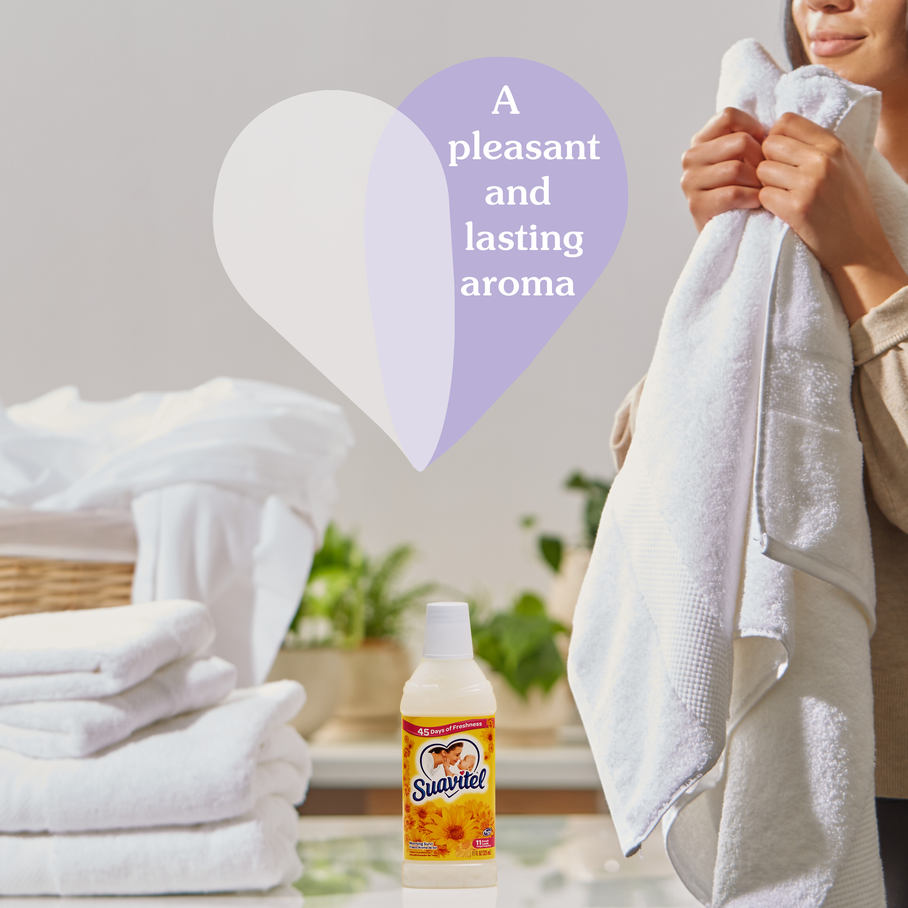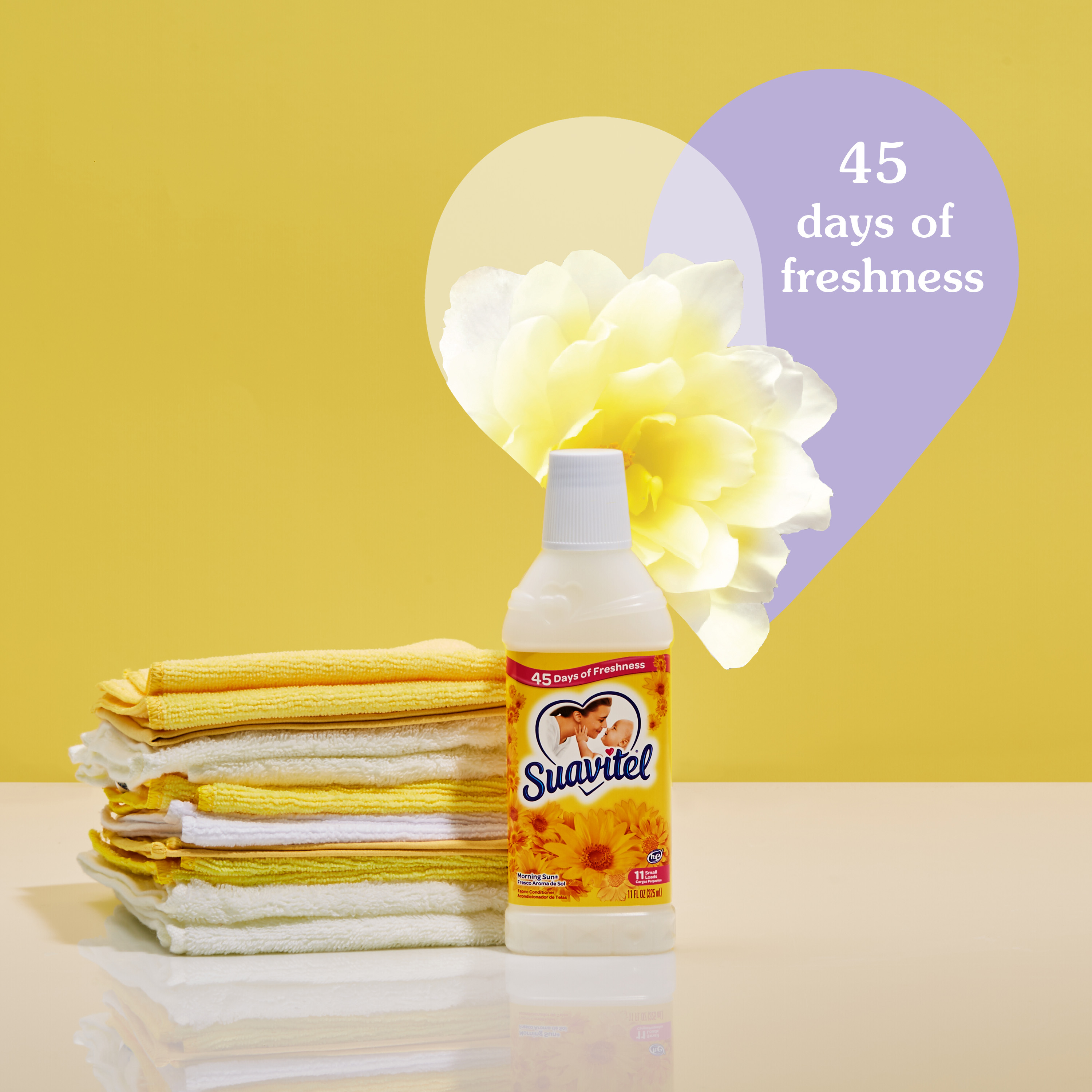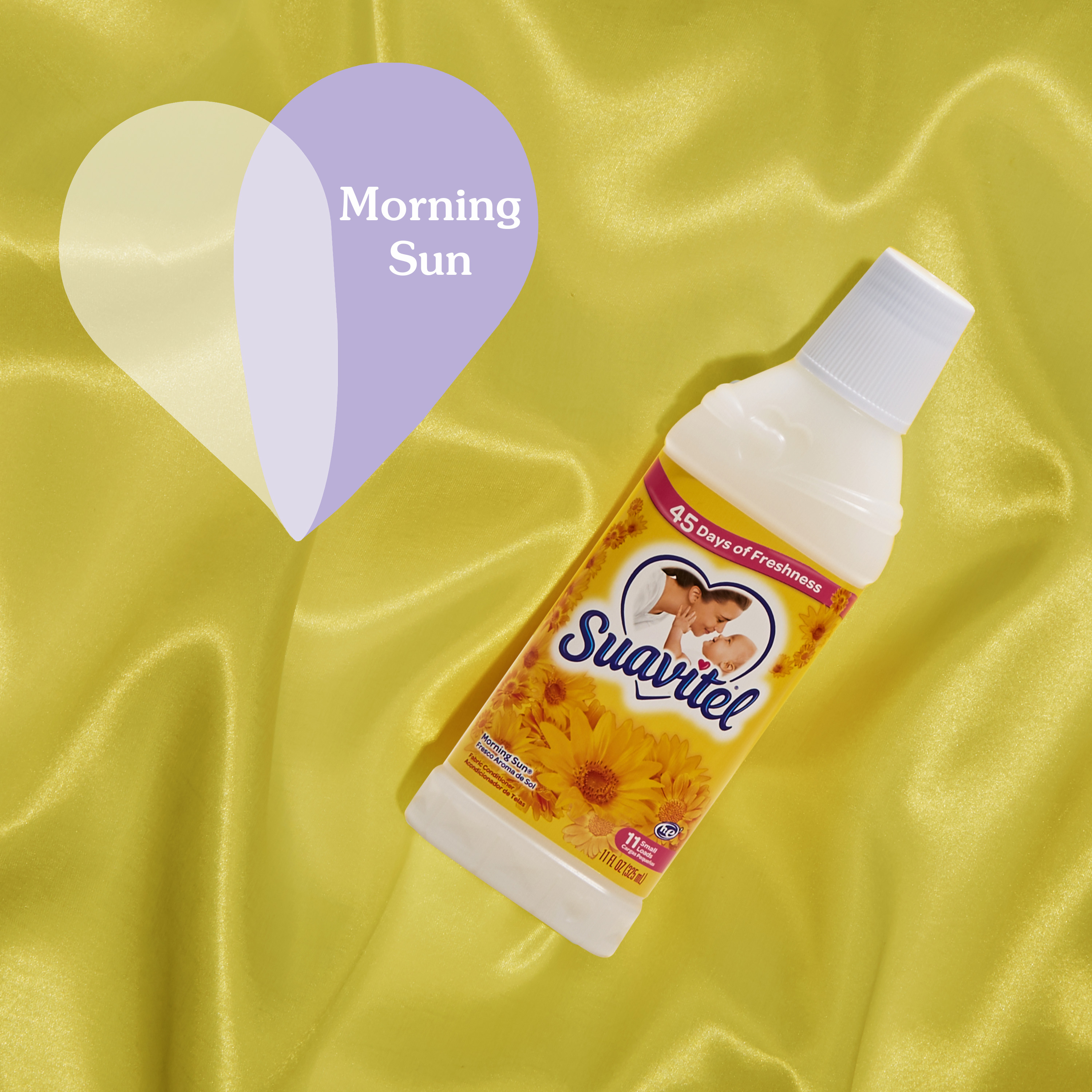 SKU 61034508 Consumer Unit - GTIN 00827854009535 Case - GTIN 10827854009532 Product Category Home Care Product Sub Category FC Liquids Product Equity (Brand) Suavitel Product Sub Brand Suavitel Liq FC Product Title Suavitel Liquid Fabric Conditioner, Laundry Fabric Softener, Morning Sun Scent, 11 oz, Enough Liquid For 11 Small Loads Product Description Embrace the ultimate comfort that Suavitel fabric softener provides. Suavitel fabric conditioner not only leaves your laundry incredibly soft but also imparts a delightful fragrance that lasts for up to 45 days. This fresh scent intensifies the summer radiance with the crisp notes of fresh apple and pineapple fruits. Suavitel is safe for all washing machines and is HE compatible (1). Revel in the captivating fragrance, incredible softness, and long-lasting freshness that Suavitel provides, and enjoy the confidence of beautifully cared-for clothes. (1) Follow the washer manufacturer's use and care guide for proper dispensing of the fabric conditioner eCommerce Copy- Long Description Suavitel’s new formula has more softening ingredients per ounce versus the previous formula, providing a softness that you and your family will love. Embrace the ultimate comfort that Suavitel fabric softener provides. Suavitel fabric softener not only leaves your laundry incredibly soft but also imparts a delightful fragrance that lasts for up to 45 days. Enjoy the light, fresh scent of a bright summer morning with every wash and revel in the softness that Suavitel fabric softener provides to your clothes and linens. The irresistible fragrance and incredible softness will transform your laundry routine into a delightful experience (1). Suavitel is compatible with all types of washing machines, including HE Washing Machines. You can trust Suavitel to deliver outstanding results without causing any damage to your laundry appliances. Upgrade your laundry routine with Suavitel Fabric Softener Morning Sun. Experience the benefits of a new formula, more softening ingredients (2), and a lower dosing amount than the prior Suavitel formula. Revel in the captivating fragrance, incredible softness, and long-lasting freshness that Suavitel provides, and enjoy the confidence of beautifully cared-for clothes. (1) Follow the washer manufacturer's use and care guide for proper dispensing of the fabric conditioner (2) Per ounce vs. previous formula Bullet 1 One 11 oz Bottle of Suavitel Liquid Fabric Conditioner, Laundry Fabric Softener, Morning Sun Scent Bullet 2 This clothes softener is enough liquid for 11 small loads Bullet 3 This fresh scent intensifies the summer radiance with the crisp notes of fresh apple and pineapple fruits and lasts for weeks on your clothes and linens Bullet 4 The irresistible fragrance and incredible softness will transform your laundry routine into a delightful experience Bullet 5 Experience 45 days of freshness with this in wash fabric conditioner Bullet 6 Suavitel is compatible with all types of washing machines, including HE Washing Machines (1) Bullet 7 Transform your laundry supplies with our laundry softener and enjoy its lasting benefits Family Dollar RPC 1400975