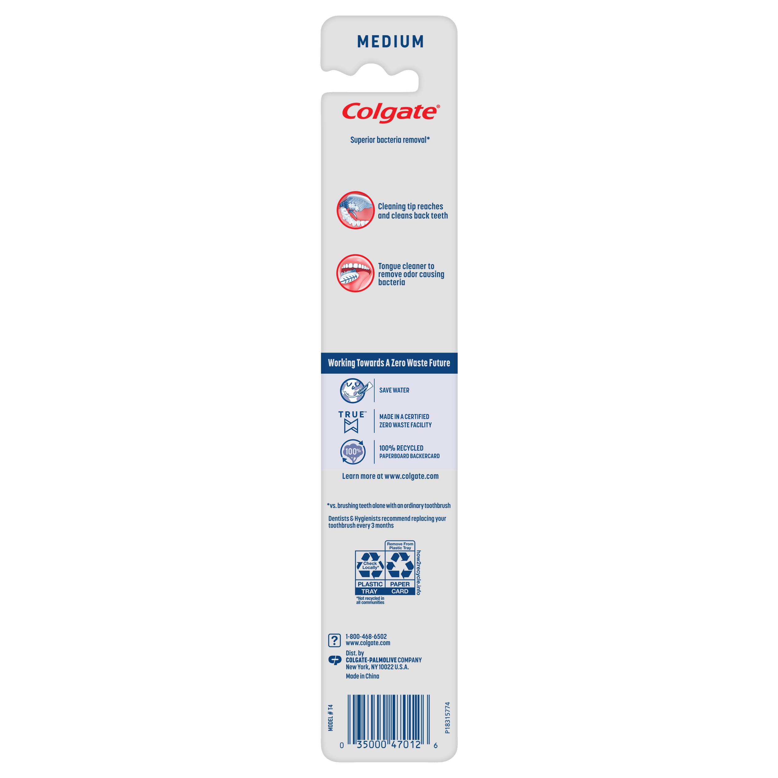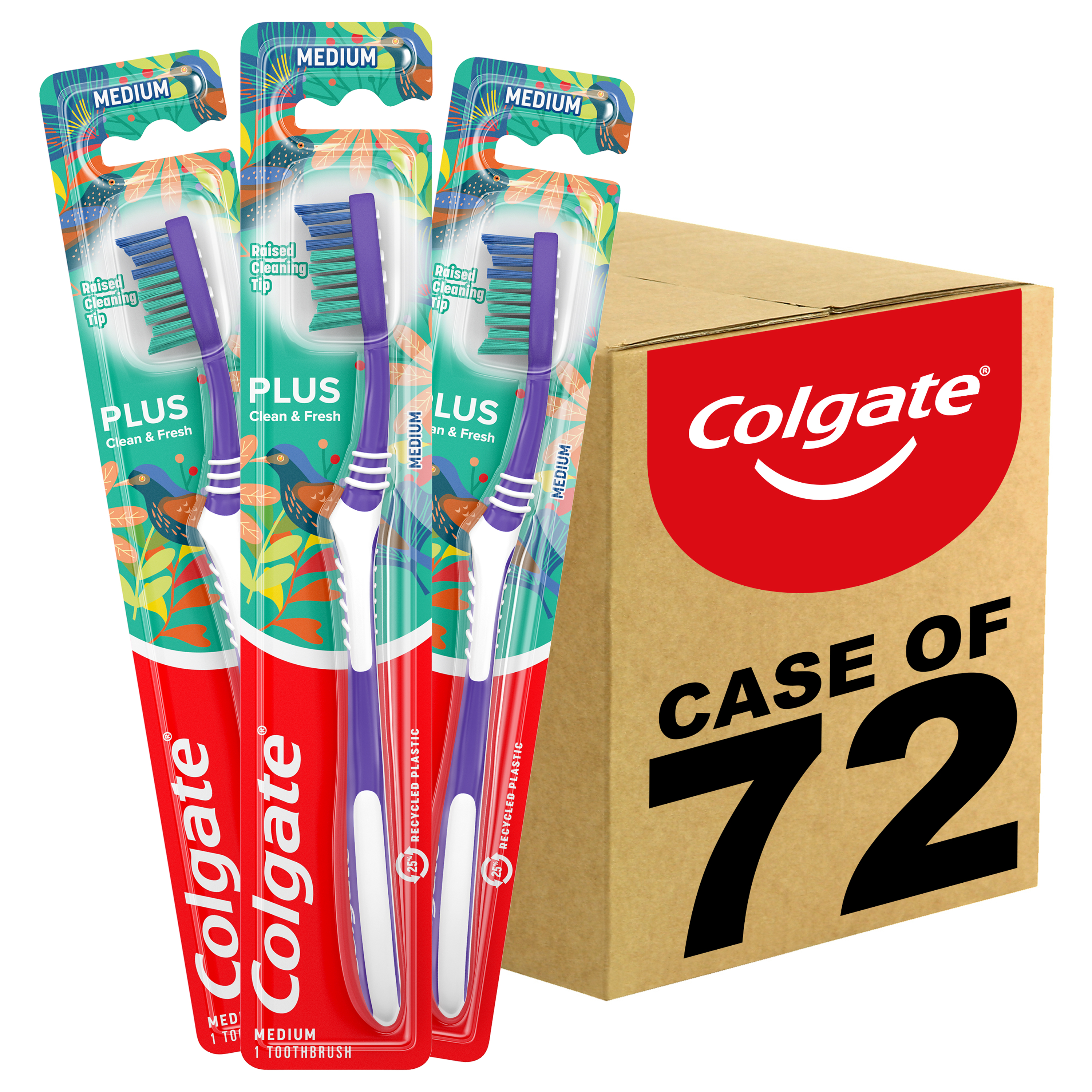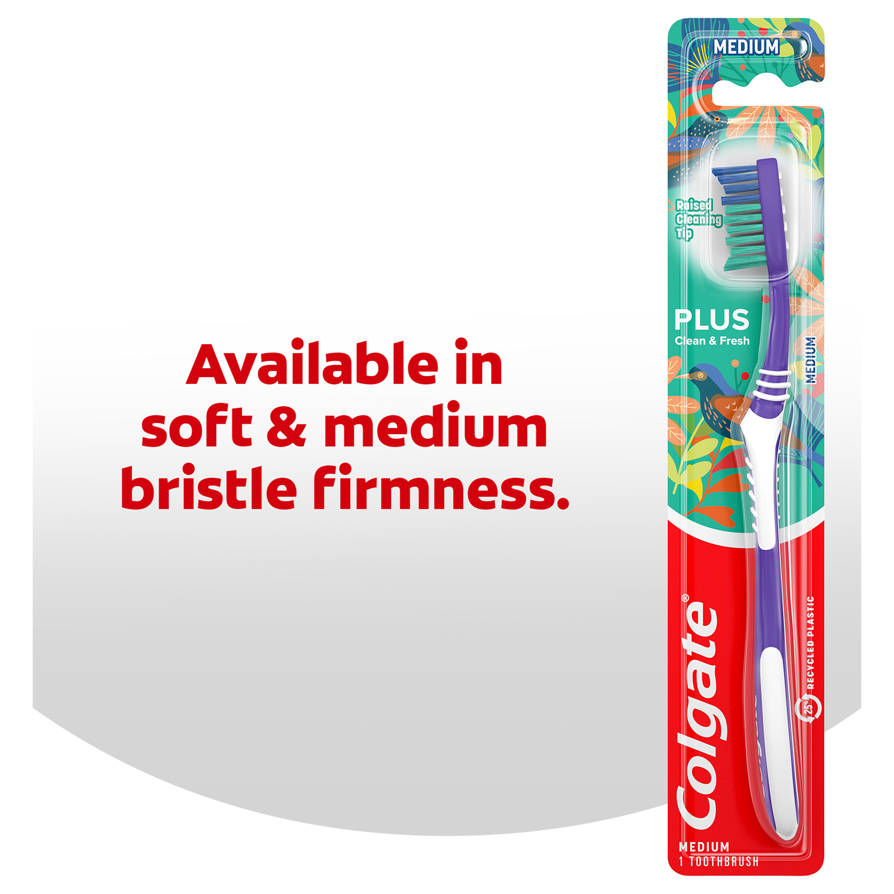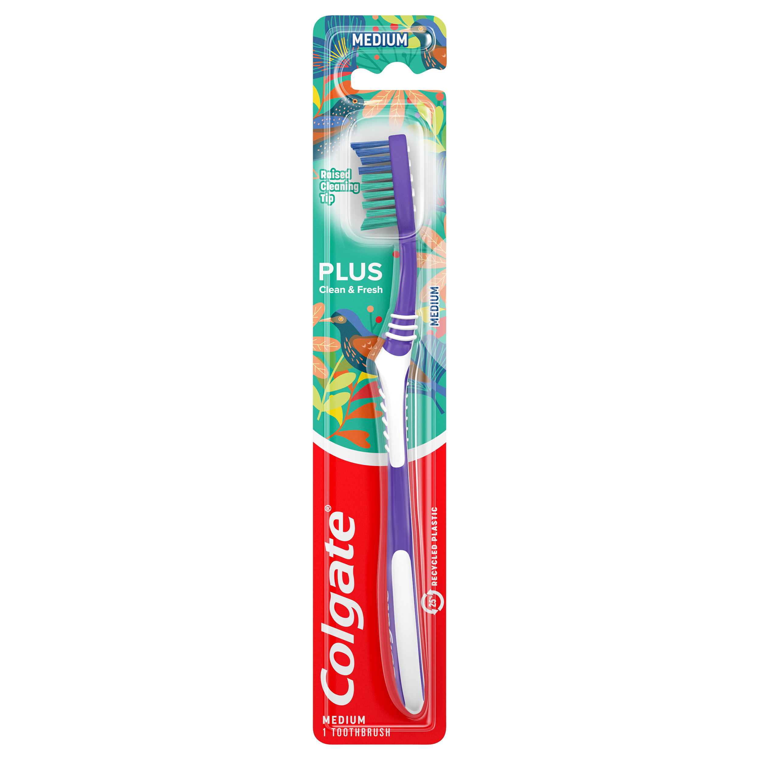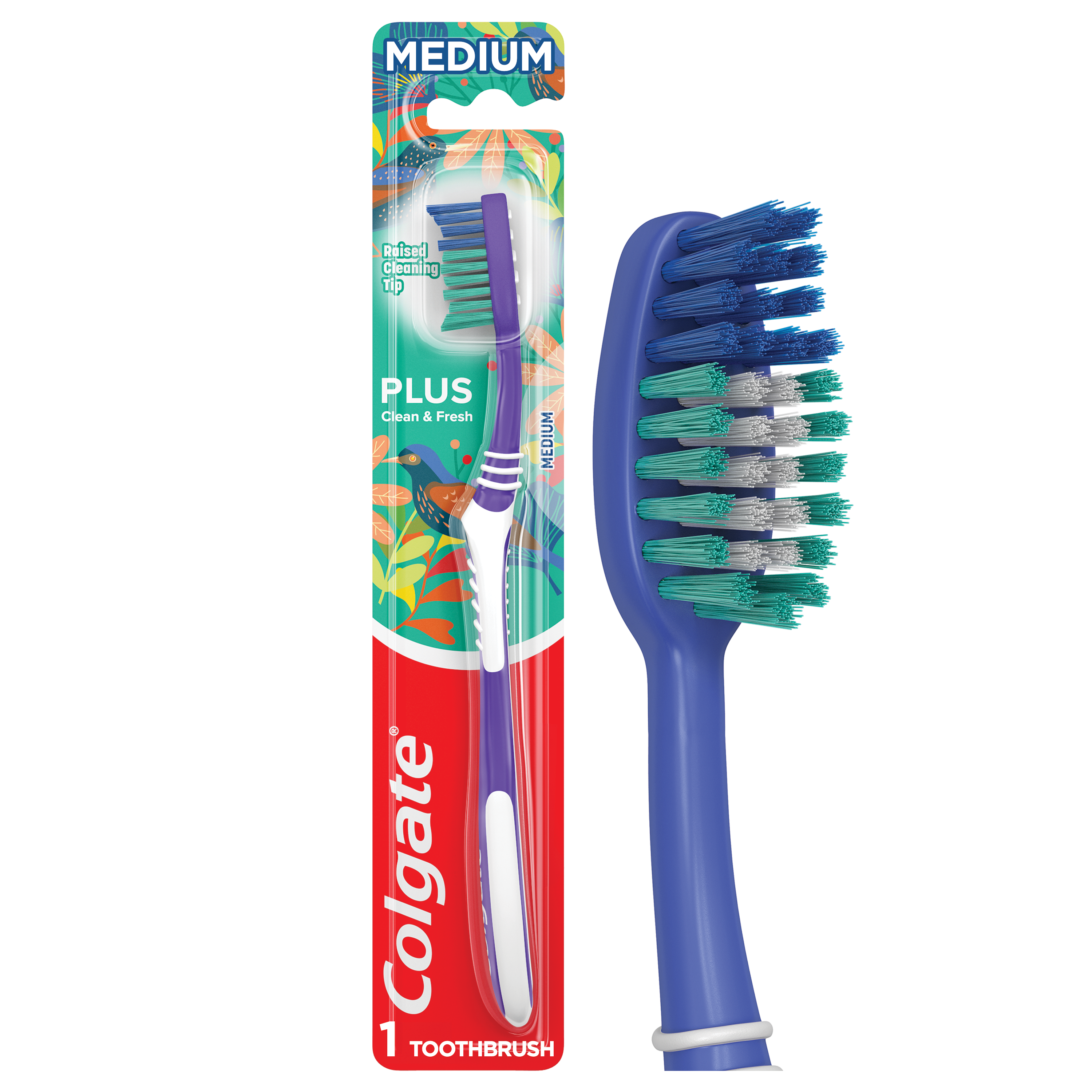 SKU 61034586 Consumer Unit - GTIN 00035000470126 Case - GTIN 10035000470123 Product Category Oral Care Product Sub Category Manual TB Product Equity (Brand) Colgate Product Sub Brand Colgate Plus Man TB Product Title Colgate Plus, Medium Product Description Colgate Plus manual toothbrush provides an effective clean with a cleaning-tip that reaches and cleans back teeth and a tongue cleaner to remove odor-causing bacteria. It also has an easy-to-grip handle to provide comfort and control while brushing. Colgate Plus toothbrush is available in soft and medium bristle firmness. Remember to change your toothbrush every 3 months. Bullet 1 Cleaning-tip that reaches and cleans back teeth Bullet 2 Tongue cleaner to remove odor-causing bacteria Bullet 3 Easy-to-grip handle to provide comfort and control Bullet 4 Available in soft and medium bristle firmness Amazon RPC B0C35921LF AMZ URL https://www.amazon.com/dp/B0C35921LF Albertsons RPC 960512591 Albertsons URL https://www.albertsons.com/shop/product-details.960512591.html Dollar Tree RPC 363228 Family Dollar RPC 903619