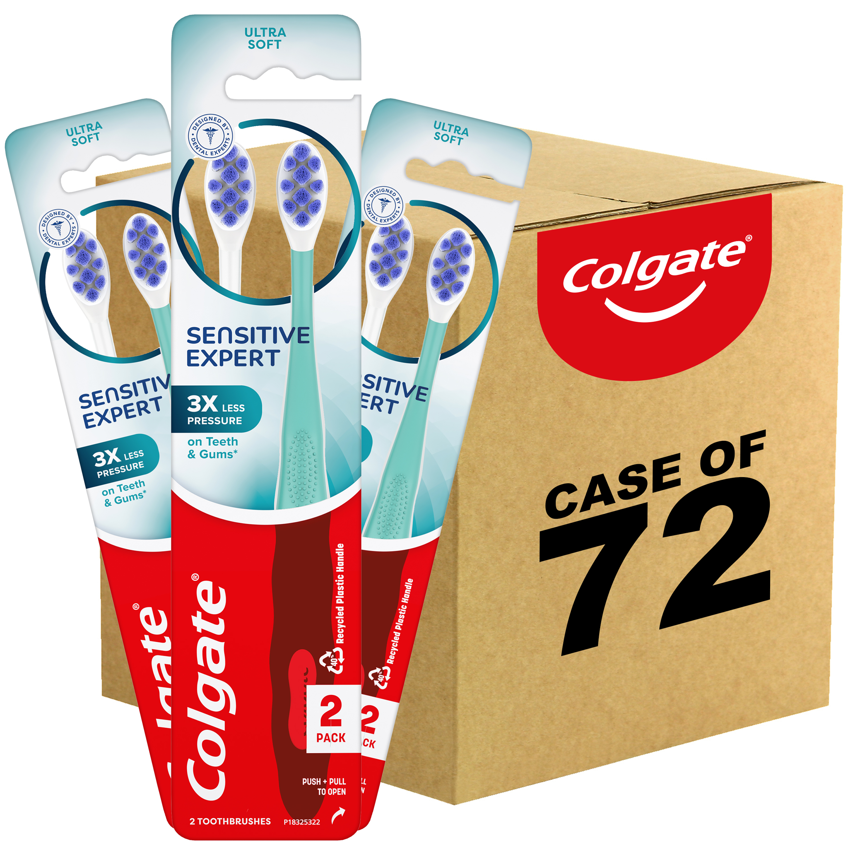 SKU 61036581 Consumer Unit - GTIN 00827854010852 Case - GTIN 10827854010859 Product Category Oral Care Product Sub Category Manual TB Product Equity (Brand) Colgate Product Sub Brand Colgate Gummy Man TB Product Title Colgate Sensitive Expert Ultra Soft Sensitive Toothbrush, 2 Pack Product Description Experience ultra soft, dense cloud-like bristles gently cleaning your teeth and along the gumline with Colgate Sensitive Expert Ultra Soft Toothbrush. With an unparalleled level of softness and an innovative design, Colgate Sensitive Expert Ultra Soft Sensitive Toothbrush is your oral care solution for sensitive teeth. People who experience teeth sensitivity tend to avoid brushing those areas of the mouth, but this can further exacerbate the problem. These extra soft toothbrushes for adults are carefully designed for gum care and sensitive teeth. This super soft toothbrush exerts 3X less pressure on teeth and gums for a gentler brushing experience*. Plus, this sensitive toothbrush pack contains 3X more ultra soft bristles* for a gentle and effective clean. Each extra soft bristle toothbrush includes a highly flexible neck for easy navigation. The Colgate Sensitive Expert Toothbrush is designed with sensitivity in mind and features gentle, ultra soft bristles. It’s the ultimate solution for sensitivity so you can tackle sensitive spots with confidence. Embrace the power of ultra softness with Colgate Sensitive Expert Ultra Soft Toothbrush. At Colgate, we make products that promote healthy smiles. Not only because having a healthy smile is important to your overall health, but because when you have a healthy smile, you actually smile more – and that’s a powerful thing. Smiles are the simplest form of optimism, something we need now more than ever. That’s why we’re championing optimism – we are committed to creating a healthier planet and working every day to create healthy smiles for all. Everyone has the right to a bright smile. That’s why we’re committed to raising oral healthcare standards everywhere. Whether it’s building healthy new habits as kids or learning something new from the experts, we’re here for you.*vs Colgate Extra Clean Soft toothbrush eCommerce Copy- Long Description Designed for Sensitive Teeth and Gums People who experience teeth sensitivity tend to avoid brushing those areas of the mouth, but this can further exacerbate the problem. The Colgate Sensitive Expert Ultra Soft Manual Toothbrush is carefully designed for gum care and sensitive teeth. It exerts 3X less pressure on teeth and gums for a gentler brushing experience*. Plus, this sensitive toothbrush pack contains 3X more ultra soft bristles* for a gentle and effective clean. Each of the ultra soft toothbrushes includes a highly flexible neck for easy navigation. Ultra Soft, Ultra Gentle The Colgate Sensitive Expert Toothbrush is designed with sensitivity in mind and features gentle, ultra soft bristles. It’s the ultimate solution for sensitivity so you can tackle sensitive spots with confidence. Embrace the power of ultra softness with Colgate Sensitive Expert Ultra Soft Toothbrush. Healthy Smiles With Colgate At Colgate, we make products that promote healthy smiles. Not only because having a healthy smile is important to your overall health, but because when you have a healthy smile, you actually smile more – and that’s a powerful thing. Smiles are the simplest form of optimism, something we need now more than ever. That’s why we’re championing optimism – we are committed to creating a healthier planet and working every day to create healthy smiles for all. Everyone has the right to a bright smile. That’s why we’re committed to raising oral healthcare standards everywhere. Whether it’s building healthy new habits as kids or learning something new from the experts, we’re here for you. *vs Colgate Extra Clean Soft toothbrush Bullet 1 Includes two (2) Colgate Sensitive Expert Ultra Soft Toothbrushes, Extra Soft Toothbrushes for Adults Bullet 2 This super soft toothbrush pack is specially designed for gum care and sensitive teeth with innovative ultra soft bristles Bullet 3 Contains 3X more ultra soft toothbrush bristles* for gentle and effective cleaning (*vs Colgate Extra Clean Soft toothbrush) Bullet 4 Colgate Sensitive Expert Toothbrush uses ultra soft bristles that exert 3X less pressure on teeth and gums* (*vs Colgate Extra Clean Soft toothbrush) Bullet 5 Manual toothbrush features a highly flexible neck for easy navigation Bullet 6 Colgate Sensitive Expert Ultra Soft Bristle Toothbrush is the ultimate solution for reducing teeth sensitivity Bullet 7 Tackle sensitive spots with confidence using the Colgate Sensitive Expert Ultra Soft Manual Toothbrush Amazon RPC B0CFGBY7KL AMZ URL https://www.amazon.com/dp/B0CFGBY7KL Walmart RPC 5108229204 Walmart URL (Computed) https://www.walmart.com/ip/a/5108229204 Target RPC 89382482 Target URL https://www.target.com/p/a/-/A-89382482 CVS RPC 108304
