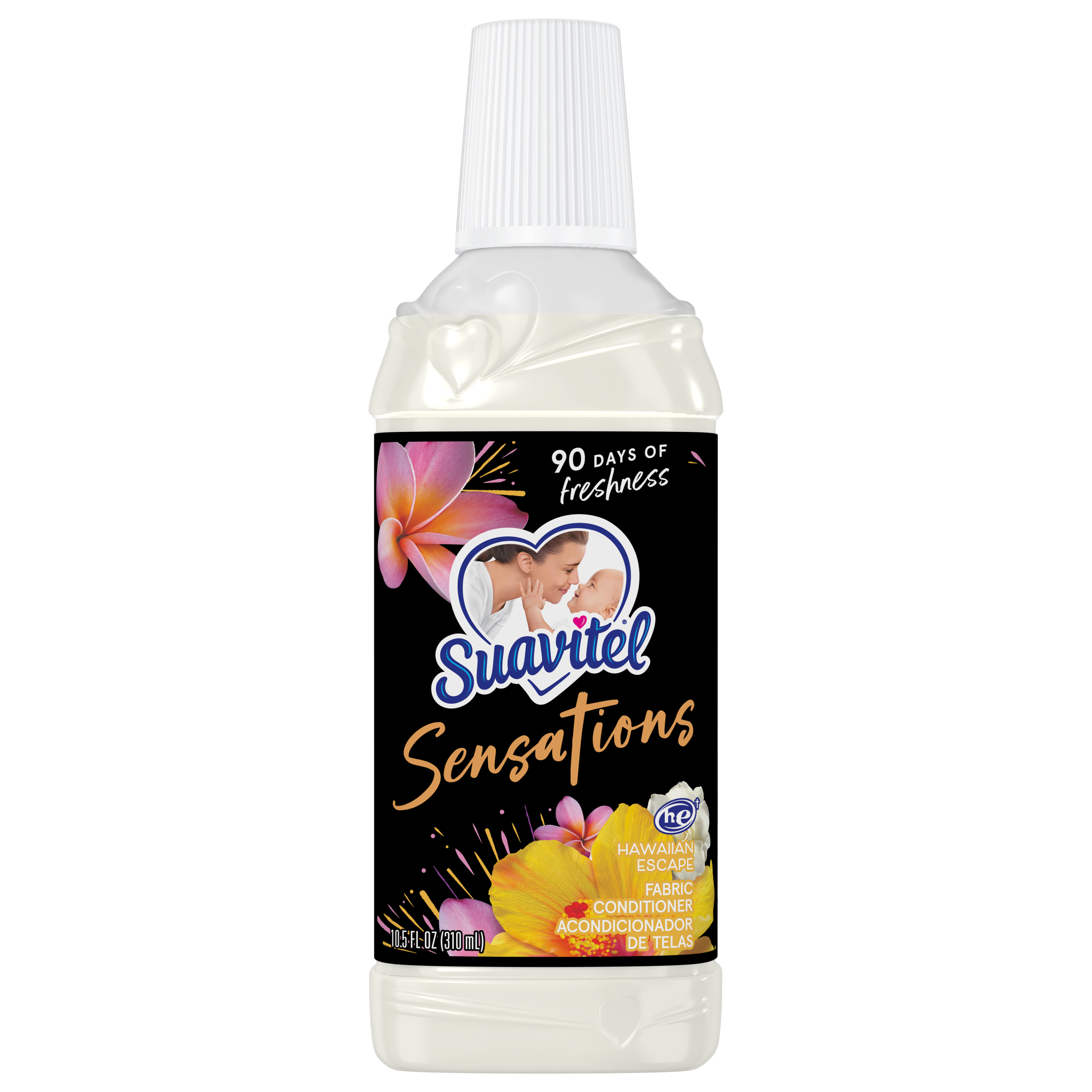 SKU 61037289 Consumer Unit - GTIN 00827854010968 Case - GTIN 10827854010965 Product Category Home Care Product Sub Category FC Liquids Product Equity (Brand) Suavitel Product Sub Brand Suavitel Liq FC Product Title Suavitel Sensation Fabric Softener, Hawaiian Escape - 10.5oz eCommerce Copy- Long Description Looking for a mini-getaway? Our Suavitel Sensations Hawaiian Escape Liquid Fabric Conditioner gives you just that. Suavitel Sensations gives you the softness you love and expect from Suavitel, plus irresistible freshness that lasts for 90 days. The Hawaiian Escape scent is a tropical blend with fresh exotic fruity and floral notes and hints of vanilla and coconut that will whisk you away on a tropical vacation — without ever having to leave your laundry room! For decades, people have chosen Suavitel for the way it makes their laundry smell and feel - but also for how it makes them feel at home. Suavitel is more than just the sum of its parts: it’s unconditional love, bottled. Today, our fabric conditioners are accessible and affordable, responsibly made*, and are safe for all washing machines. As a brand, we care about more than your clothes - we are committed to helping you care for what you love most and helping you give your family a loving touch that lasts. *To learn more, visit www.colgatepalmolive.com/responsibly-made