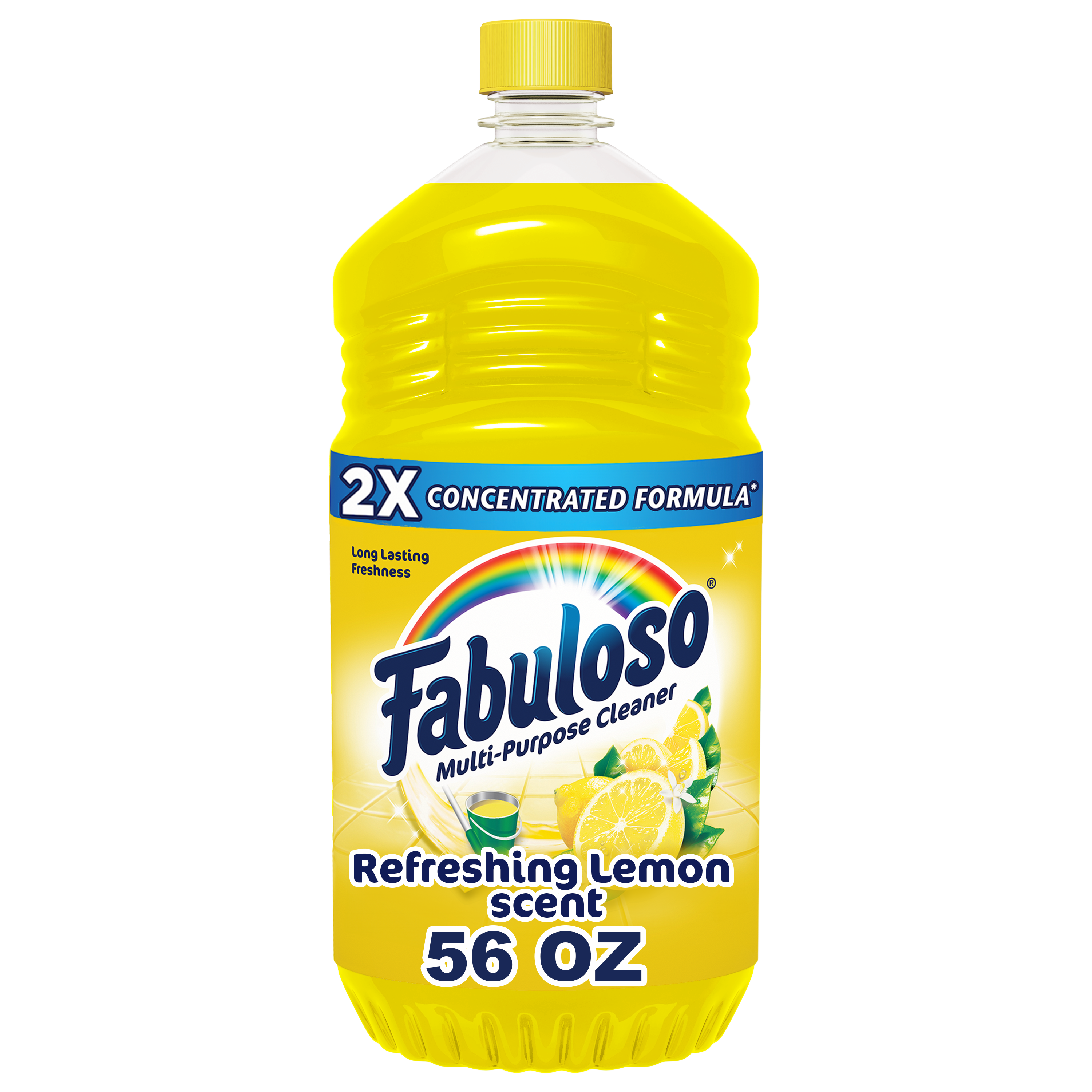 SKU 61037889 Consumer Unit - GTIN 00827854010418 Case - GTIN 10827854010415 Product Category Home Care Product Sub Category Cleaners Liquid / Gel Product Equity (Brand) Fabuloso Product Sub Brand Fabuloso Liq Cln Product Title Fabuloso Multi-Purpose Cleaner, 2X Concentrated Formula, Refreshing Lemon Scent, 56 oz Product Description Fabuloso 2x Multi-Purpose Cleaner is the perfect solution for anyone looking for an effective way to keep their home clean and smelling great. Whether used as a bathroom cleaner, kitchen cleaner, or floor cleaner, the long-lasting lemon scent will fill your home with joy. Our multi-purpose cleaner cuts through grease, grime, and dirt. Its easy-pour bottle delivers a colorful and satisfying pour every time. We understand that life isn't always easy, but cleaning it up can be with Fabuloso multi-purpose surface cleaner. Our 2X concentrated formula provides 2x more uses and 2x more active ingredients vs our non-concentrated Fabuloso Original. It also uses 50% less plastic by following dosing instructions and getting twice as many uses out of one bottle vs. the same size of Fabuloso Original. It's important to use Fabuloso cleaning products safely, please follow the instructions on the label. Mix 1/8 cup in a gallon of water or pour on a sponge and clean. eCommerce Copy- Long Description Fabuloso® Multi-Purpose Cleaner, 2X Concentrated Formula, Refreshing Lemon Scent Fabuloso® Multi-Purpose Cleaner, 2X Concentrated Formula in Refreshing Lemon Scent transforms your home with a fresh scent that lasts. Bring the fragrance of lavender indoors, and experience a warm, joyful feeling your friends and family will love. Fabuloso®’s 2X Concentrated Formula now provides 2X more active ingredients compared to non-concentrated Fabuloso Original, giving you 2X the dosage in the same bottle. Every colorful pour from the easy-pour bottle delivers a long-lasting, unmistakable freshness and leaves your home bright and clean. Use Fabuloso® Multi-Purpose Cleaner, on sinks, toilets, tubs, showers, kitchen and bathroom floors, sealed wood surfaces, appliances, counters, windows, mirrors, walls, doorknobs and furniture, and fill every room in your home with joy. Uplifting fragrances. Clean surfaces. Irresistible joy. Life isn’t always easy, but cleaning it up sure can be. Fabuloso® combines cleaning power with fresh scents that fill your home with joy, to make it a welcoming place no matter how hard your day. Fabuloso®’s 2X Concentrated Formula provides 2X more uses in the same bottle compared to non-concentrated Fabuloso Original. From the kitchen to the bathroom and beyond, Fabuloso® Multi-Purpose, Cleaner 2X Concentrated has a wide variety of long-lasting fragrances that deliver hope for a better tomorrow. Try all of our uplifting scents: Lavender, Passion of Fruits, Citrus & Fruits with Baking Soda, Bleach Alternative† Spring Fresh, Tropical Spring, and Orange Scent with Baking Soda. † Bleach-free option with 20% more active ingredients vs other Fabuloso 2X Concentrated products Shared Moments of Joy All Over the World Our story begins in Venezuela, circa 1980. Cleaning products lacked fragrance and distinction. But families wanted lasting scents that kept their homes fresh and clean for hours. Enter the bold colors and joyful fragrances of Fabuloso® ! 16 years later, families across America also got to experience the joy: we became a household staple thanks to our rainbow of colors and playful, distinctive scents. Today, across the world, we’re more than cleaning products. We’re a catalyst for joy. Bullet 1 2X concentrated formula provides 2X more active ingredients compared to non-concentrated Fabuloso Original Bullet 2 Multi-purpose cleaner for a wide range of surfaces, from floors to furniture to appliances Bullet 3 Mix 1/8 cup in a gallon of water or pour on a sponge and clean Bullet 4 Refreshing lemon scent provides long-lasting freshness Bullet 5 Uses 50% less plastic by following dosing instructions to get twice as many uses out of one bottle v. the same size of Fabuloso Original Bullet 8 Also available in: Lavender Scent, Passion of Fruits Scent, Citrus & Fruits with Baking Soda Scent, Bleach Alternative† Spring Fresh Scent Scent, Tropical Spring Scent, and Orange Scent with Baking Soda † Bleach-free option with 20% more active ingredients vs other Fabuloso® 2X Concentrated Liquid Multi-Purpose Cleaning Products Bullet 9 Fabuloso® 2X Concentrated Liquid Multi-Purpose Cleaner comes in a variety of convenient sizes: 16.9 oz, 28 oz, 33.8 oz, 56 oz, 128 oz, 169 oz, 210 oz Amazon RPC B0BYLHTWCM AMZ URL https://www.amazon.com/dp/B0BYLHTWCM Target RPC 88667983 Target URL https://www.target.com/p/a/-/A-88667983