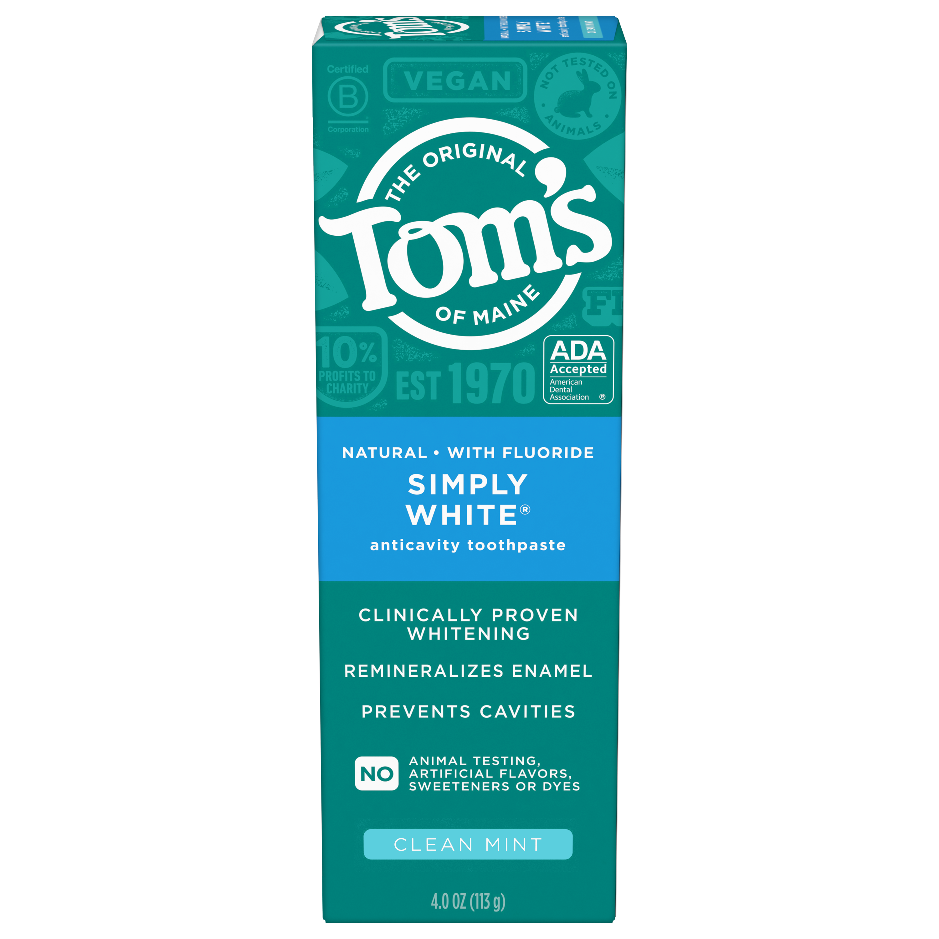 Tom’s of Maine Simply White Anticavity Toothpaste with Fluoride, Clean Mint, 4.0 Oz