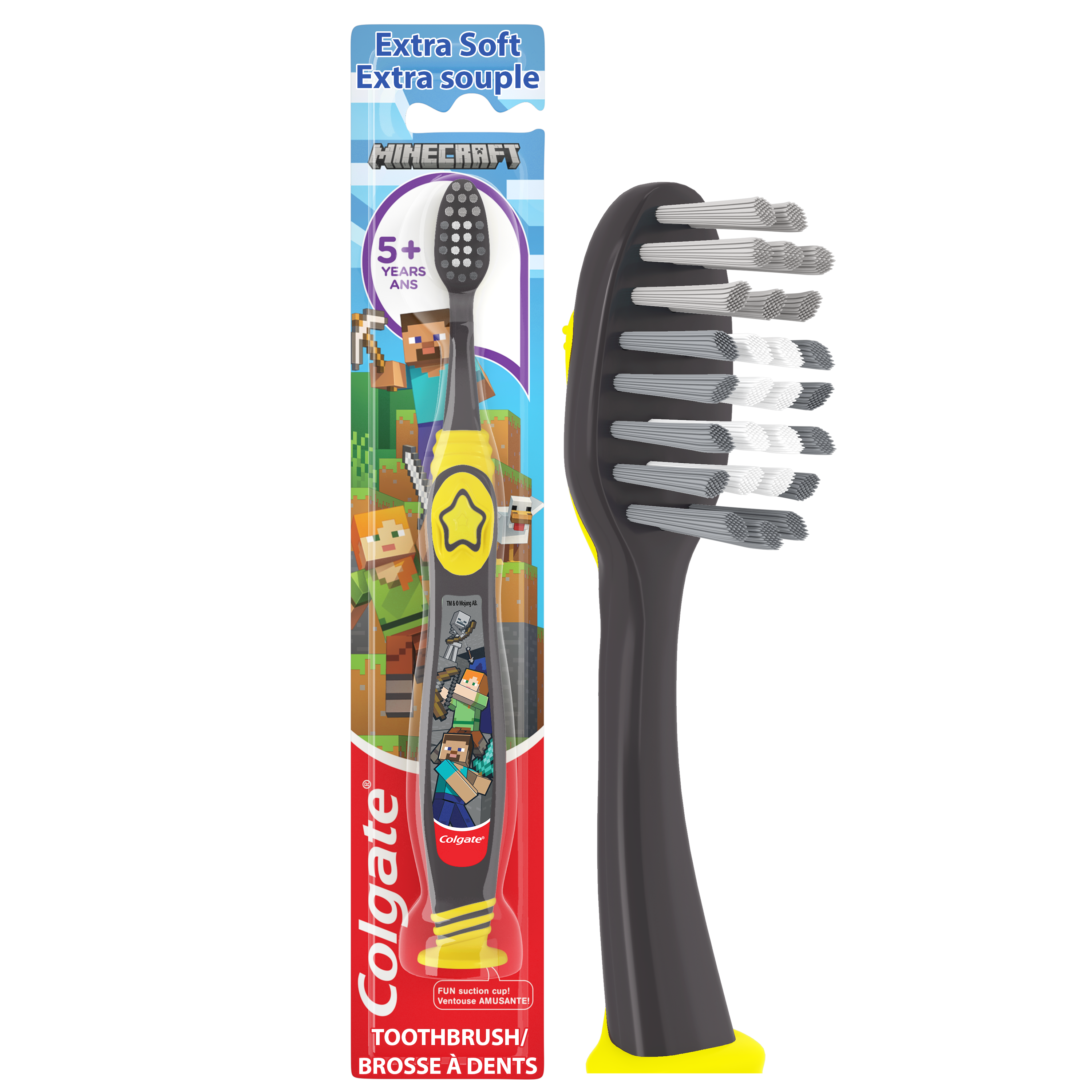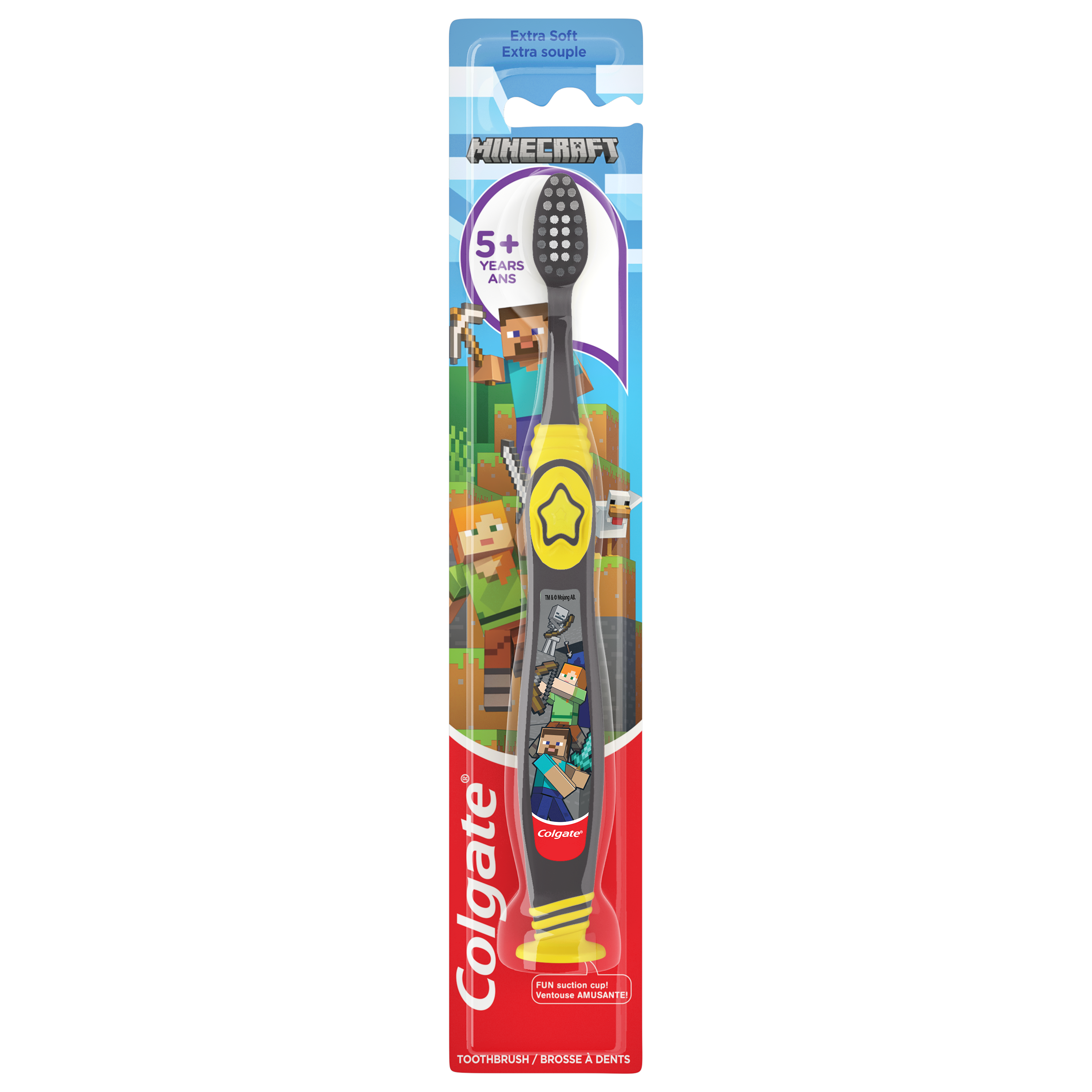 SKU 61038328 Consumer Unit - GTIN 00827854011927 Product Category Oral Care Product Sub Category Manual TB Product Equity (Brand) Colgate Product Sub Brand Colgate Kids Man TB Product Title Colgate Kids Manual Minecraft Toothbrush Product Description Colgate Kids Manual Minecraft Toothbrush is the perfect kids toothbrush to encourage good oral habits early on! This Minecraft themed childrens toothbrush is uniquely designed to make brushing fun and easy. The extra soft toothbrush bristles provide effective yet gentle cleaning making it a great manual toothbrush for kids. Plus, this extra soft bristle toothbrush for kids is great for children with both baby and adult teeth and the soft tongue cleaner on the back of the toothbrush head helps clean beyond teeth. For small children, teeth brushing is something completely new! And helping them get used to having a toothbrush in their mouth can make the teeth brushing routine a positive experience right from the start. Whether it’s letting your child hold their kids toothbrush with suction cup to get used to it and try to brush their own teeth, the Colgate Kids Manual Minecraft Toothbrush is designed to make teeth brushing fun. The kids toothbrush features a raised tip and multi-height bristles to clean big and small teeth in hard-to-reach places, a soft tongue cleaner, a suction cup for easy and fun upright storage, and a thumb rest and rounded handle for a comfortable grip. At Colgate, we’re making kids toothbrushes more fun because we know the power of a healthy smile. Our children’s oral health initiative, Bright Smiles, Bright Futures, has impacted the lives of more than a billion children by providing free oral health education and dental care in over 80 countries. As the world leader in oral care, Colgate is committed to improving children's oral health around the world. eCommerce Copy- Long Description Colgate Kids Manual Minecraft Toothbrush, 1 Count Colgate Kids Manual Minecraft Toothbrush is the perfect kids toothbrush to encourage good oral habits early on! This Minecraft themed childrens toothbrush is uniquely designed to make brushing fun and easy. The extra soft toothbrush bristles provide effective yet gentle cleaning making it a great manual toothbrush for kids. Plus, this extra soft bristle toothbrush for kids is great for children with both baby and adult teeth and the soft tongue cleaner on the back of the toothbrush head helps clean beyond teeth. Kids Tooth Brushing Made Fun For small children, teeth brushing is something completely new! And helping them get used to having a toothbrush in their mouth can make the teeth brushing routine a positive experience right from the start. Whether it’s letting your child hold their kids toothbrush with suction cup to get used to it and try to brush their own teeth, the Colgate Kids Manual Minecraft Toothbrush is designed to make teeth brushing fun. The kids toothbrush features a raised tip and multi-height bristles to clean big and small teeth in hard-to-reach places, a soft tongue cleaner, a suction cup for easy and fun upright storage, and a thumb rest and rounded handle for a comfortable grip. Healthy Smiles With Colgate At Colgate, we’re making kids toothbrushes more fun because we know the power of a healthy smile. Our children’s oral health initiative, Bright Smiles, Bright Futures, has impacted the lives of more than a billion children by providing free oral health education and dental care in over 80 countries. As the world leader in oral care, Colgate is committed to improving children's oral health around the world. Bullet 1 Includes one (1) individual Colgate Kids Manual Minecraft Toothbrush with Suction Cup Bullet 2 Features a thumb rest for great control when brushing and comes with a built-in suction cup for easy and fun upright storage Bullet 3 The extra soft bristles on this kids toothbrush gently clean teeth and gums Bullet 4 This kids manual toothbrush features a comfortable thumb grip and a rounded easy-to-hold handle which are perfect for little hands to use Bullet 5 Multi-height extra soft bristle toothbrush cleans both baby teeth and adult teeth and uses a raised tip to clean hard-to-reach back teeth Bullet 6 Tongue cleaner on the back of this Minecraft toothbrush helps clean beyond teeth Bullet 7 The small kid toothbrush head easily fits in little mouths and can help reach back teeth to help brush in hard-to-reach places Bullet 8 Make morning and nighttime brushing fun with this Minecraft themed kids toothbrush