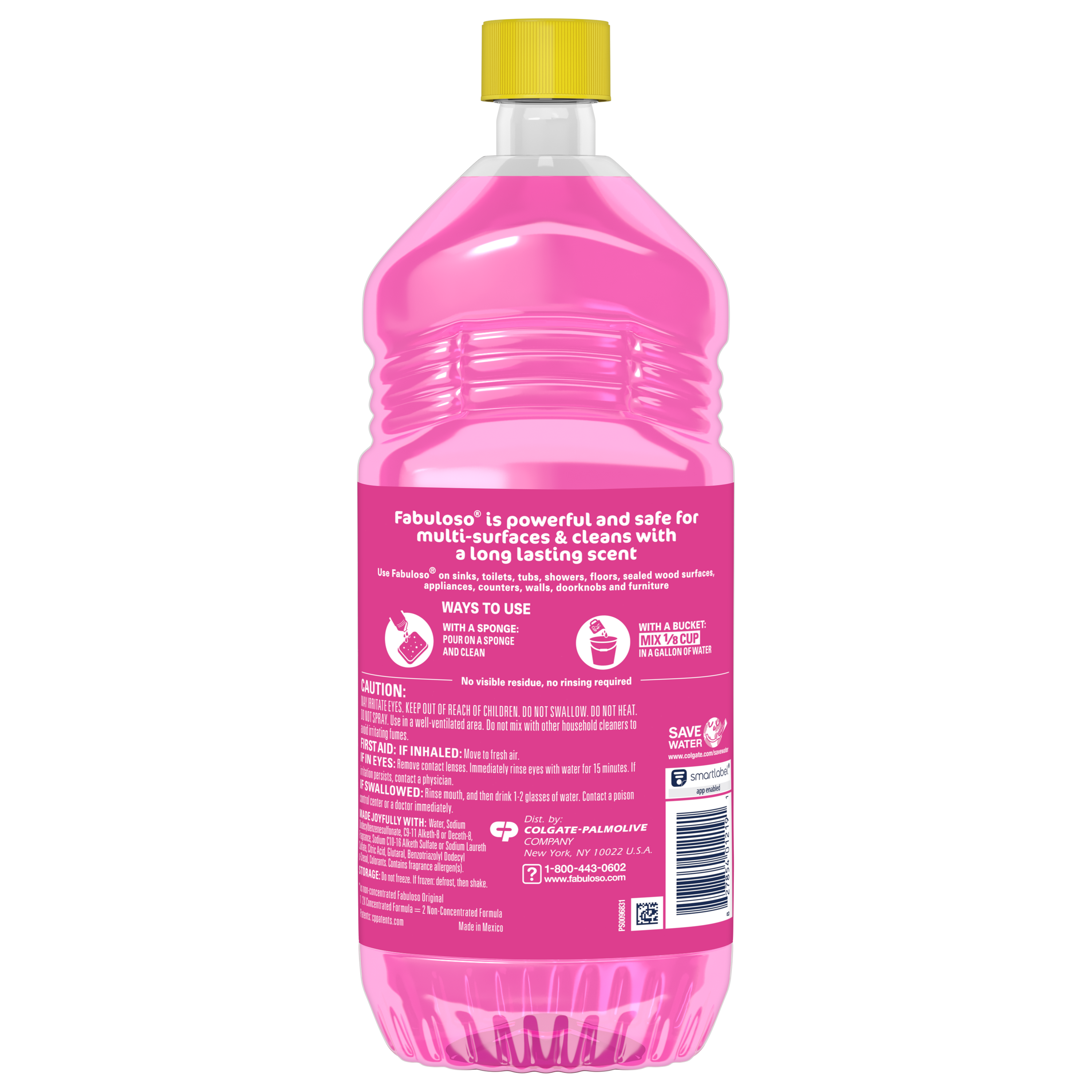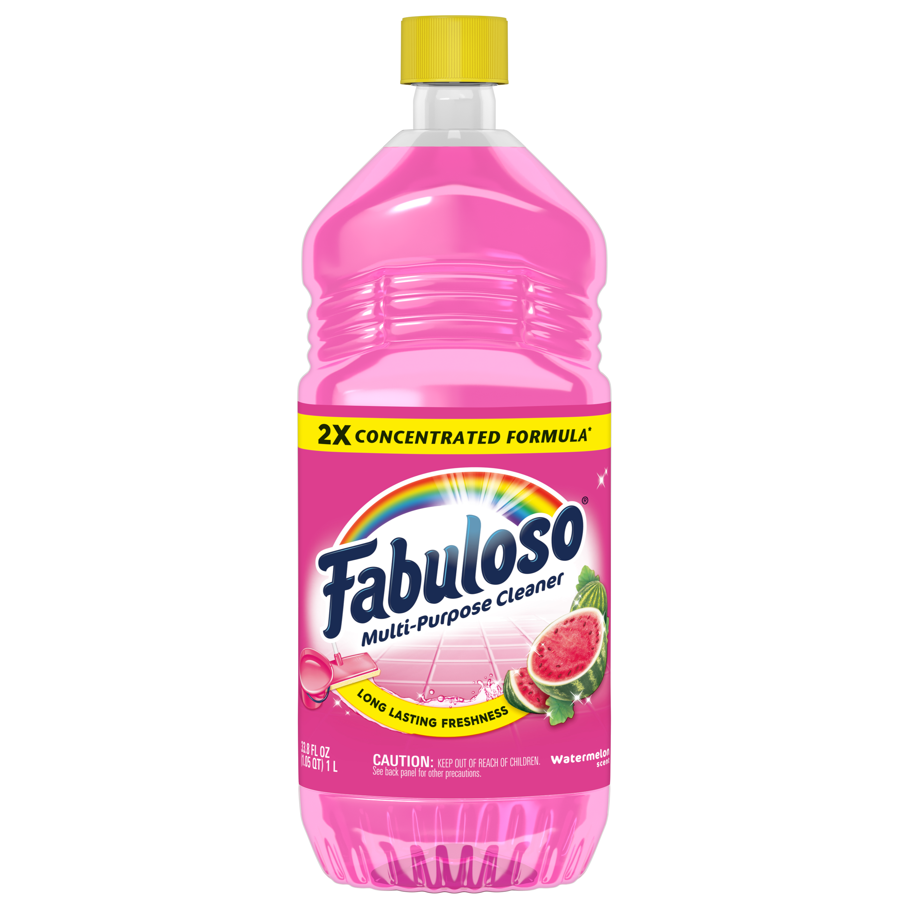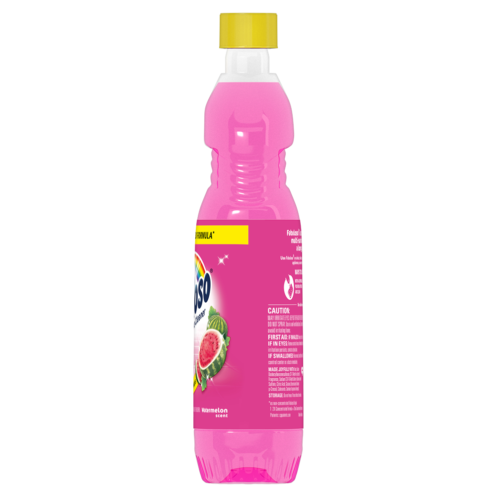 SKU 61038630 Consumer Unit - GTIN 00827854012191 Case - GTIN 10827854012198 Product Category Home Care Product Sub Category Cleaners Liquid / Gel Product Equity (Brand) Fabuloso Product Sub Brand Fabuloso Liq Cln Product Title Fabuloso 2X Multi-Purpose Cleaner, No Rinse Floor Cleaner, Long-Lasting Freshness, Watermelon Scent, 33.8 fl oz Product Description Discover the exceptional cleaning power and long-lasting freshness of Fabuloso 2X Multi-Purpose Cleaner with Watermelon scent. This cleaner features a bright watermelon and citrus scent with fruity notes, complemented by soft musks and powdery undertones, leaving your home feeling fresh and revitalized. Fabuloso 2X concentrated formula provides 2X more uses in the same bottle compared to non-concentrated Fabuloso Original. The no rinse floor cleaner provides long-lasting freshness and is safe for everyday cleaning on floors, sinks, toilets, tubs, showers, sealed wood, appliances, counters, walls, doorknobs, and furniture. Ideal as a kitchen cleaner and bathroom cleaner, it keeps every room smelling fresh long after you clean. For best results, follow dosing instructions by mixing 1/8 cup of Fabuloso to a bucket of water for mopping, or use undiluted on a sponge for general surface cleaning and spot treatment, giving you flexibility for all your cleaning needs. Keep in a cool, dry place and do not freeze; if the product freezes, simply defrost and shake well before use to restore optimal cleaning performance. Experience the confidence of a powerful, reliable cleaner that transforms your entire home with every use, backed by the trusted Fabuloso brand families have depended on for generations. eCommerce Copy- Long Description Introducing Fabuloso 2X Watermelon with its watermelon scent, designed to make your cleaning routine as fun and refreshing as a fresh cut watermelon at a summer picnic. This vibrant pink cleaner will transform your cleaning experience, leaving your home smelling like a warm summer day. Fabuloso Multi-Purpose Cleaner is the perfect solution for anyone looking for an effective way to keep their home clean and smelling great. Whether used as a bathroom cleaner, kitchen cleaner, or floor cleaner, the long lasting watermelon scent will fill your home with joy. Our multi-purpose cleaner cuts through grease, grime, and dirt. Its easy-pour bottle delivers a colorful and satisfying pour every time. We understand that life isn't always easy, but cleaning it up can be with Fabuloso multi-purpose cleaner. Our 2X concentrated formula provides 2x more active ingredients vs our non-concentrated Fabuloso Original. It's important to use Fabuloso cleaning products safely, please follow the instructions on the label. Mix 1/8 cup in a gallon of water or pour on a sponge and clean. Enjoy the pink burst of vibrant watermelon fragrance as you clean, turning your chores into a delightful, paradise escape. Bullet 1 Includes one 33.8 fl oz bottle of Fabuloso 2X Multi-Purpose Cleaner, Watermelon scent Bullet 2 Enjoy the bright watermelon and citrus scent of Fabuloso with fruity notes, complemented by soft musks and powdery undertones Bullet 3 Fabuloso 2X concentrated formula provides 2X more uses in the same bottle compared to non-concentrated Fabuloso Original Bullet 4 This all-purpose cleaner can be used on floors, sinks, toilets, tubs, showers, sealed wood, appliances, counters, walls, doorknobs, and furniture Bullet 5 Fabuloso is ready to use: add 1/8 cup to a bucket of water for mopping, or use undiluted on a sponge for general surface cleaning and spot treatment Bullet 6 Keep Fabuloso in a cool, dry place and do not freeze; if the product freezes, simply defrost and shake well before use Bullet 7 Fabuloso is the perfect cleaning product for families and households delivering the trusted clean you love Walmart RPC 5074843160 Walmart URL (Computed) https://www.walmart.com/ip/a/5074843160 Family Dollar RPC 1402211