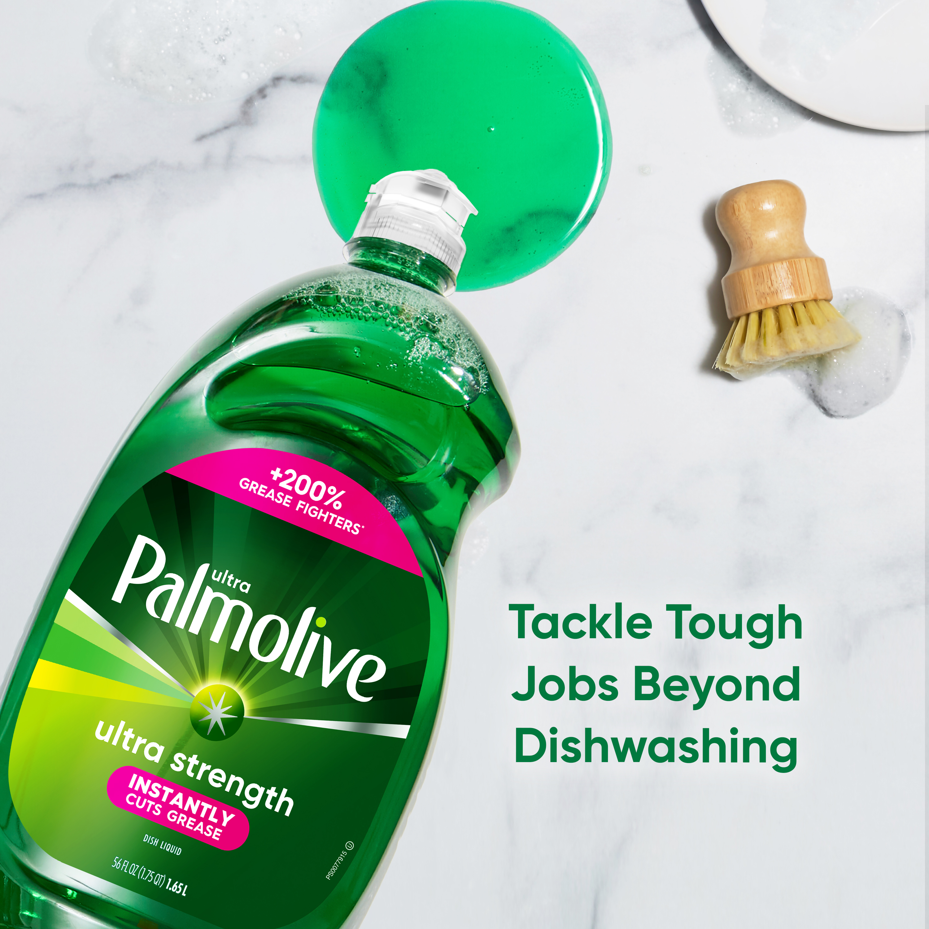 SKU 61038704 Consumer Unit - GTIN 00035000451224 Case - GTIN 10827854012273 Product Category Home Care Product Sub Category Dish Hand Product Equity (Brand) Palmolive Product Sub Brand Palmolive Ultra HD Product Title Palmolive Ultra Strength Liquid Dish Soap, Mess-Free, Easy-Flip Cap, 56 fl oz Bottle Product Description Experience our revolutionary Palmolive Ultra Liquid Dish Soap. Our signature green liquid dish soap delivers superior cleaning power. Boasting +200% more grease fighters* compared to the leading non-concentrated dish soap, our latest innovation tackles the toughest kitchen challenges with ease. Palmolive Ultra instantly cuts grease and is proven to clean 48-hour stuck-on food faster than ever before. It leaves dishes sparkling clean with every wash, thanks to its enhanced grease-fighting capabilities. Not only is this dishwashing liquid tough on grease, but it is also soft on hands. The bottle features a convenient easy-flip cap for added ease of use. Upgrade your dishwashing experience with Palmolive Ultra; the effective dish soap that combines powerful cleaning with gentle care. *vs. leading non-concentrated dish soap eCommerce Copy- Long Description The OG: Original Green Palmolive.