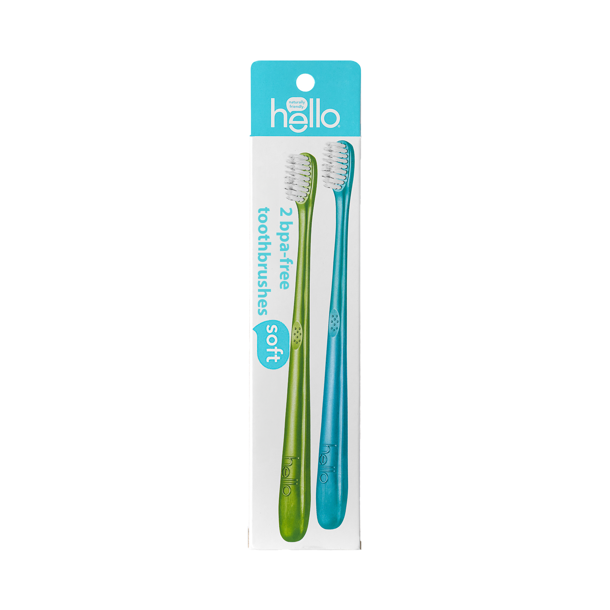 SKU 61038752 Consumer Unit - GTIN 819156022084 Case - GTIN 20819156022088 Product Category Oral Care Product Sub Category Manual TB Product Equity (Brand) hello Product Sub Brand Hello Man TB Product Title hello Adult Soft Bristle Toothbrush Pack, Blue and Green, 2 Count Product Description Say hello to maximum brushing happiness with the hello Adult Soft Bristle Toothbrush Pack. Designed with soft, precision-tapered bristles, these BPA-free adult toothbrushes help polish away stains and remove pesky plaque buildup. The soft toothbrush bristles are gentle enough for your gums and they’re strong enough for your teeth. Each hello toothbrush in this twin pack is BPA-free, vegan, cruelty-free, and not tested on animals. Looking to add some extra bonus points to your oral care routine? Pair one of the soft toothbrushes with your fave hello toothpaste for the ultimate dream team oral care combo. And a friendly reminder, replace your manual hello toothbrush every 90 days. eCommerce Copy- Long Description say hello to double the fun with hello colorful toothbrush twin pack with soft tapered bristles. these bristles are soft enough for your gums and strong enough to brush away dirt and grime from your beautiful pearlies. the comfy handle comes in two colors and is made with plant-based materials from the usa for extra-friendliness. hello is also vegan, cruelty free, and not tested on animals (leaping bunny certified and peta recognized). for optimum hygiene, please remember to score a new toothbrush every 90 days. #brushhappy. Bullet 1 Includes two (2) hello Adult Soft Bristle Toothbrushes, Blue and Green Bullet 2 These soft bristle toothbrushes are completely BPA-free, and feature ergonomic handles made from plant-based materials Bullet 3 The soft, precision-tapered bristles on each adult toothbrush help polish away stains and remove pesky plaque buildup Bullet 4 This hello soft bristle toothbrush pack uses soft toothbrush bristles that are gentle on gums and strong enough for your teeth Bullet 5 A friendly reminder, remember to replace your soft bristle hello toothbrush every 90 days