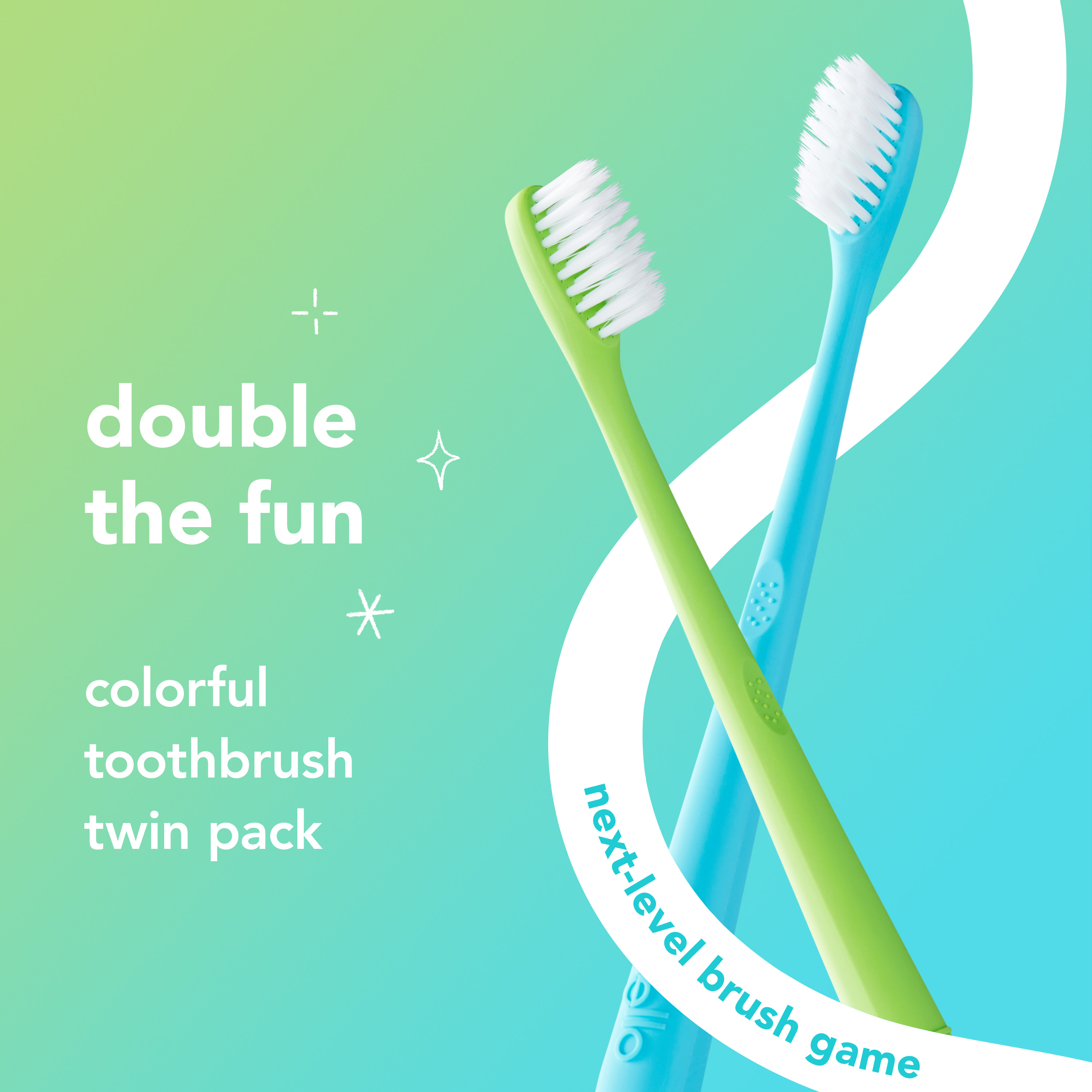 hello Blue + Green Toothbrush Twin Pack, Soft Tapered Bristles, Vegan & SLS Free