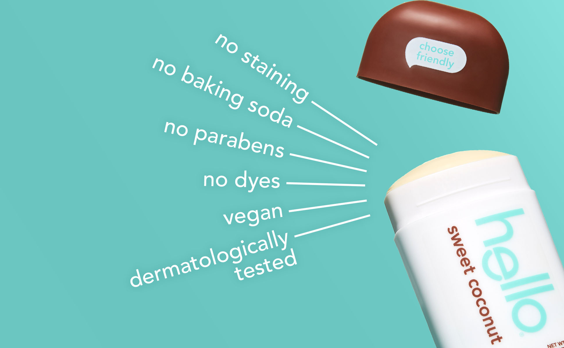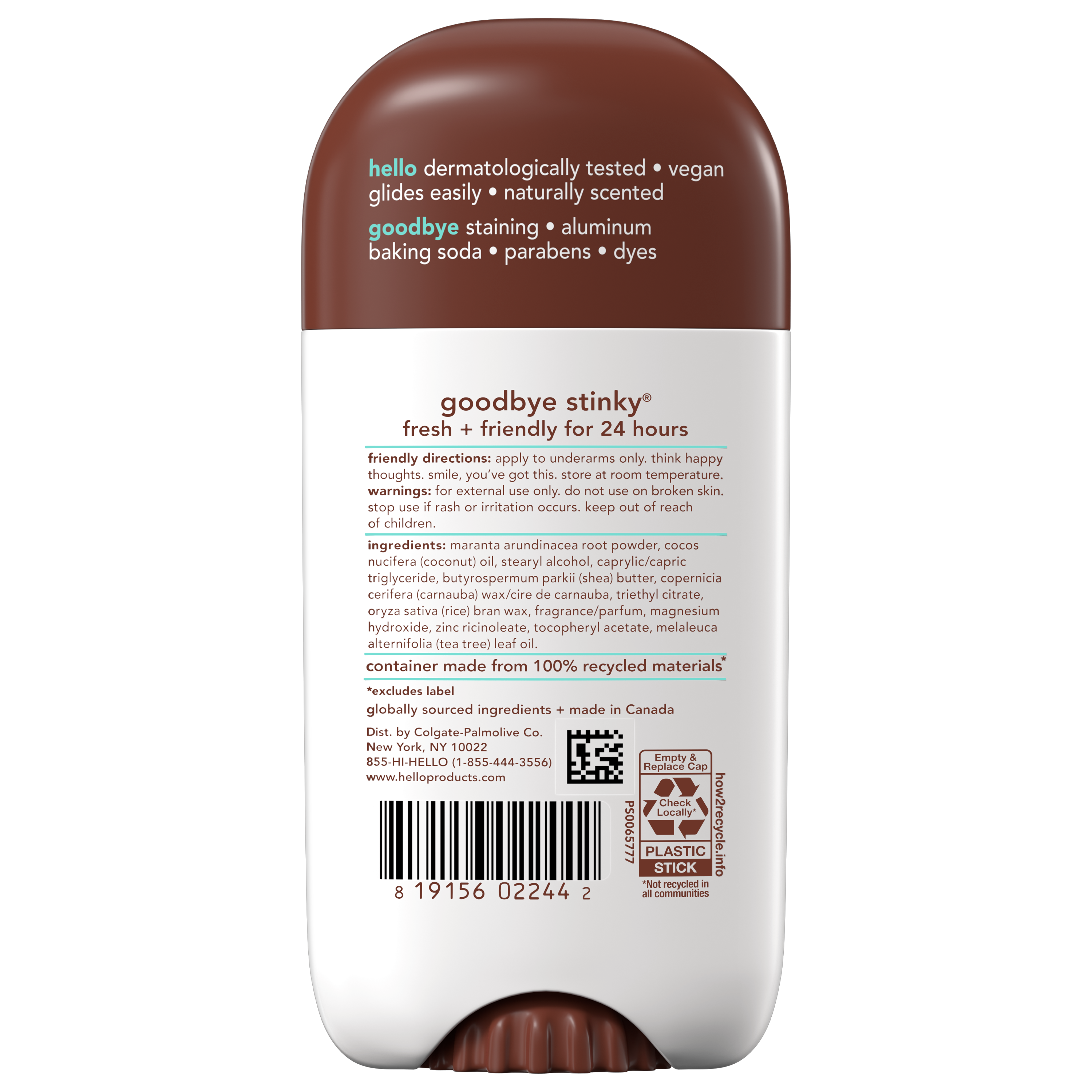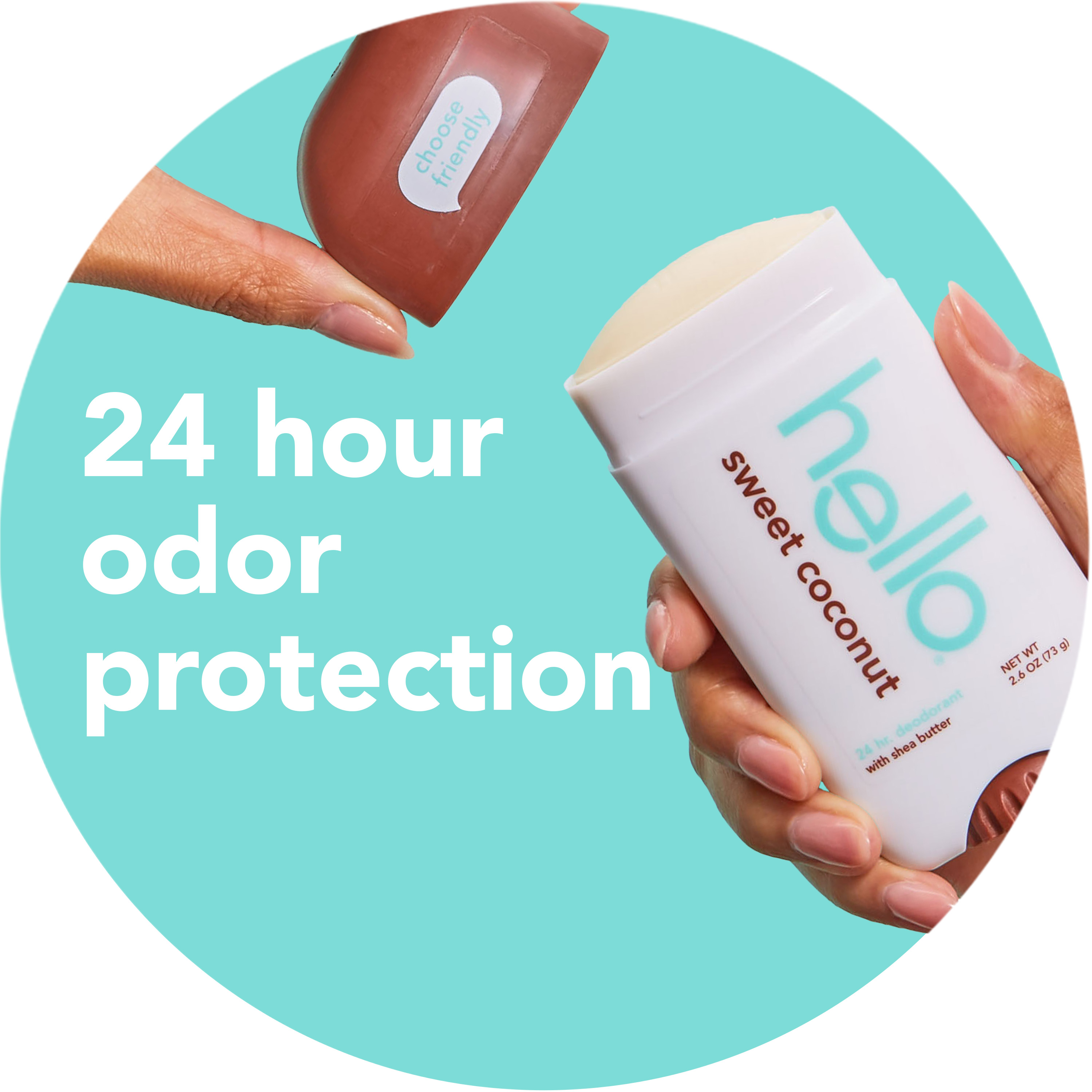 SKU 61038757 Consumer Unit - GTIN 00819156022442 Case - GTIN 20819156022446 Product Category Personal Care Product Sub Category AP > Deo Product Equity (Brand) hello Product Sub Brand Hello AP/Deo Product Title hello Sweet Coconut Aluminum Free Deodorant for Women and Men with Shea Butter, 24-Hour Freshness, Baking Soda Free Deodorant, Dermatologically Tested, 2.6 oz Stick Product Description Say hello to hello Sweet Coconut Aluminum Free Deodorant. Head to the tropics (no sunscreen needed!) with the rich, creamy scent of coconut. Our 24-hour deodorant with shea butter is dermatologically tested and naturally scented to keep you feeling fresh all day. Say goodbye to aluminum, baking soda, parabens, and dyes. Plus, it glides on easily for a smooth application and won’t stain your clothes. Choose friendly with a deodorant that's not tested on animals and vegan for happy underarms. Anything less would be the pits. eCommerce Copy- Long Description say goodbye to stinky and say hello to fresh and friendly for 24 hours with hello Sweet Coconut Aluminum Free Deodorant. with our naturally scented formula, you can wave goodbye to worries about odor. whether you're working, working out, or just working it, hello deodorant has you covered. this hello deo is formulated with a sweet coconut scent and without aluminum, baking soda, and parabens. so, you don't have to worry about irritation. our deodorants are dermatologically tested, vegan, and not tested on animals. anything less would be the pits. Bullet 1 WHAT I’M GETTING: Includes one 2.6 oz deodorant stick of hello Sweet Coconut Aluminum Free Deodorant for Men and Women Bullet 2 ALUMINUM FREE PROTECTION: Free of aluminum, dyes, parabens, and baking soda Bullet 3 NATURALLY SCENTED: Embrace beachside bliss with the creamy, dreamy scent of sweet coconut Bullet 4 24-HOUR DEODORANT WITH SHEA BUTTER: Keeps you fresh + friendly for 24 hours, so you can take on the day with confidence Bullet 5 KNOW YOUR DEODORANT: Vegan and dermatologically tested Walmart RPC 648556028 Walmart URL (Computed) https://www.walmart.com/ip/a/648556028