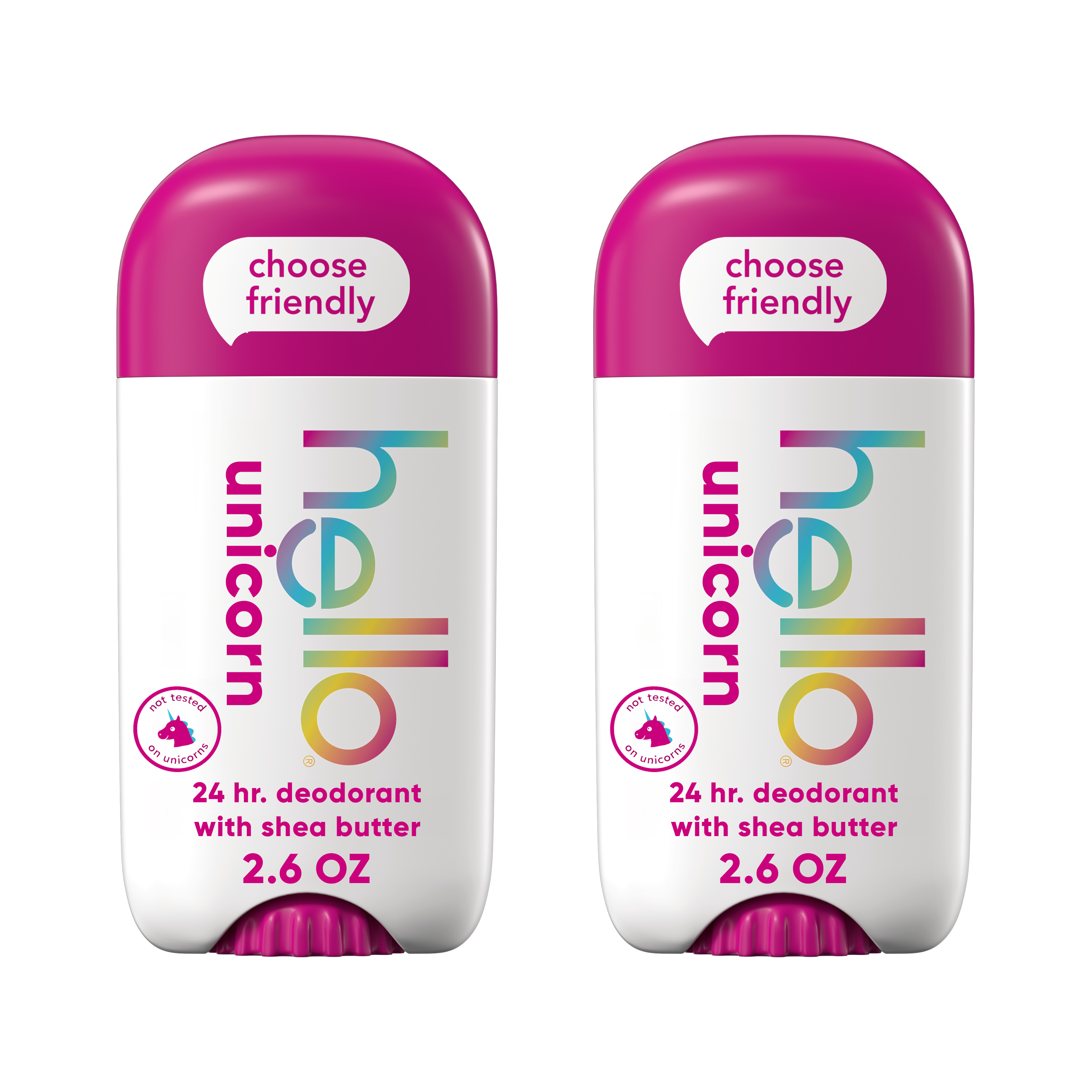 hello Unicorn Aluminum Free Deodorant for Women and Men with Shea Butter, 24-Hour Freshness, Baking Soda Free Deodorant, Dermatologically Tested, 2.6 oz Stick (2 Pack)