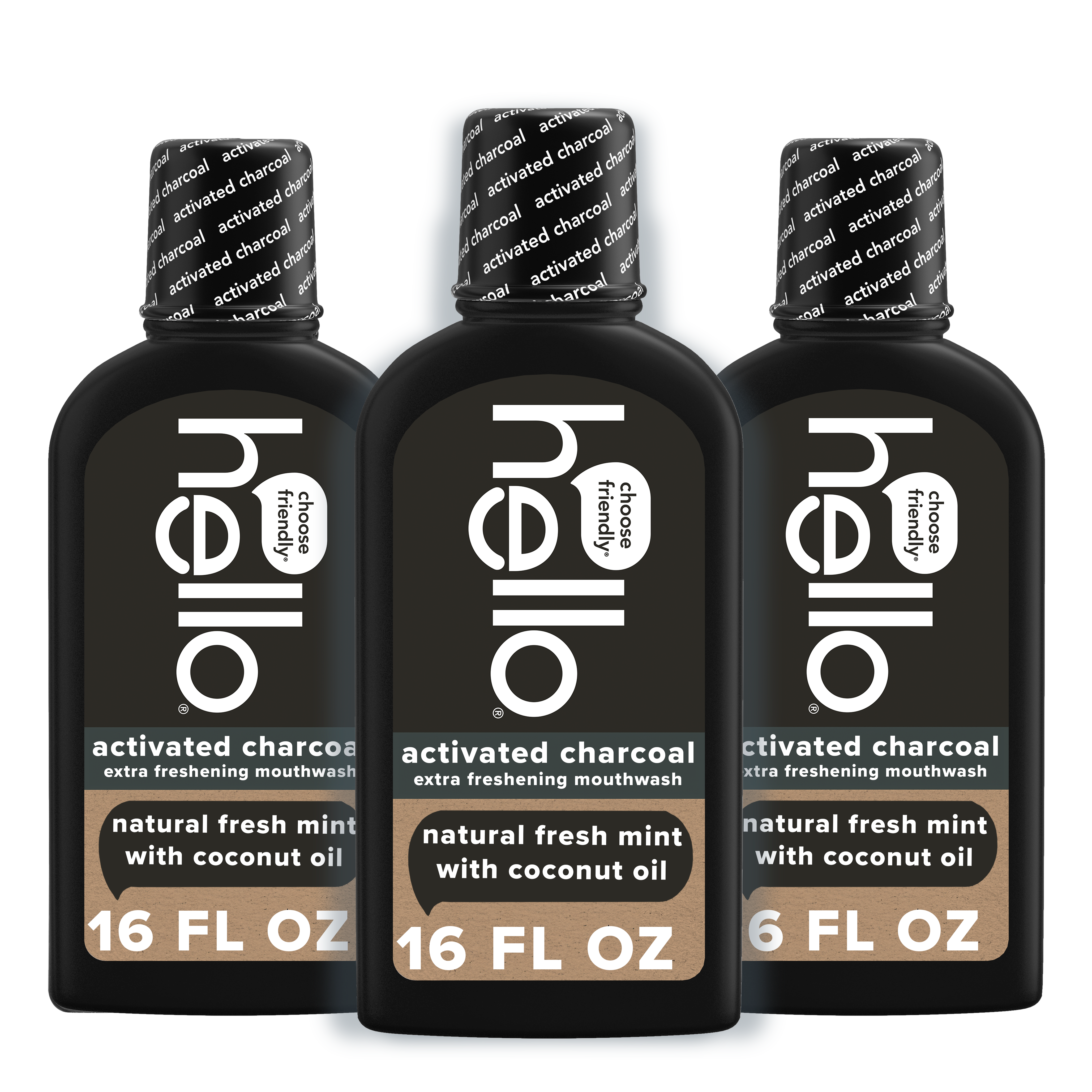 hello Alcohol Free Activated Charcoal Mouthwash, Natural Fresh Mint, 3 Pack, 16 Fl Oz Bottles