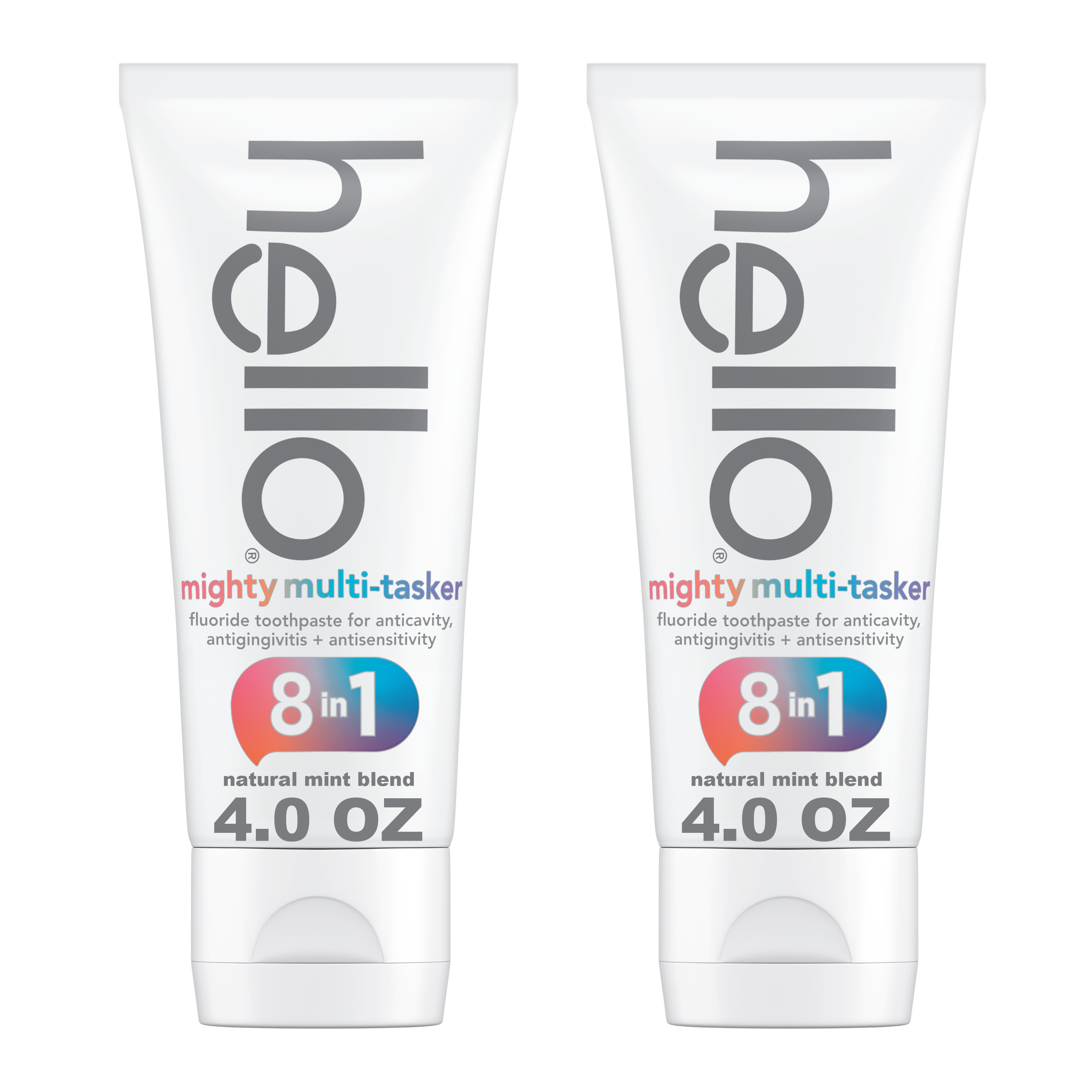 hello 8 in 1 Mighty Multi-Tasker Fluoride Toothpaste, Natural Mint Blend, 2 Count, 4.0 Oz Tubes