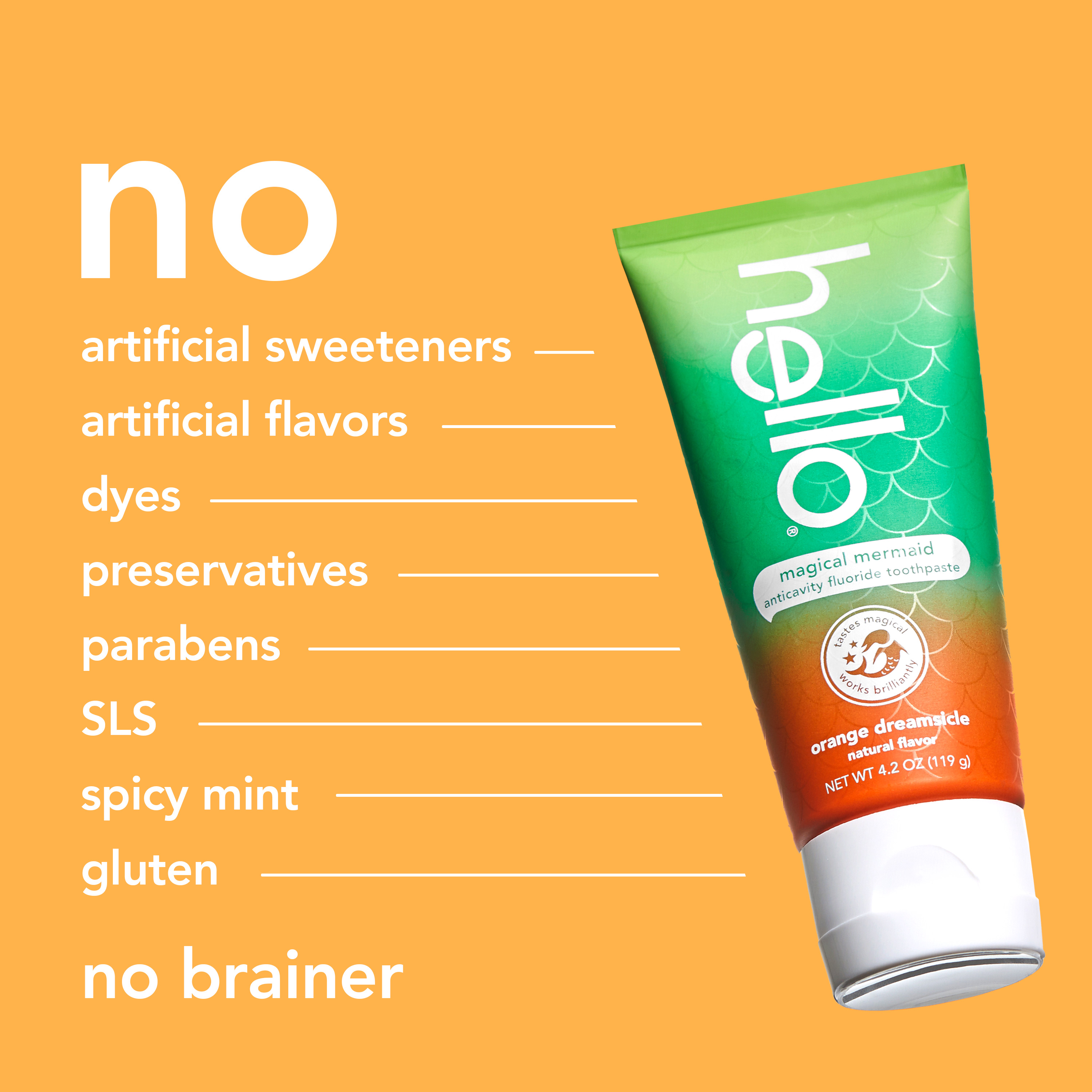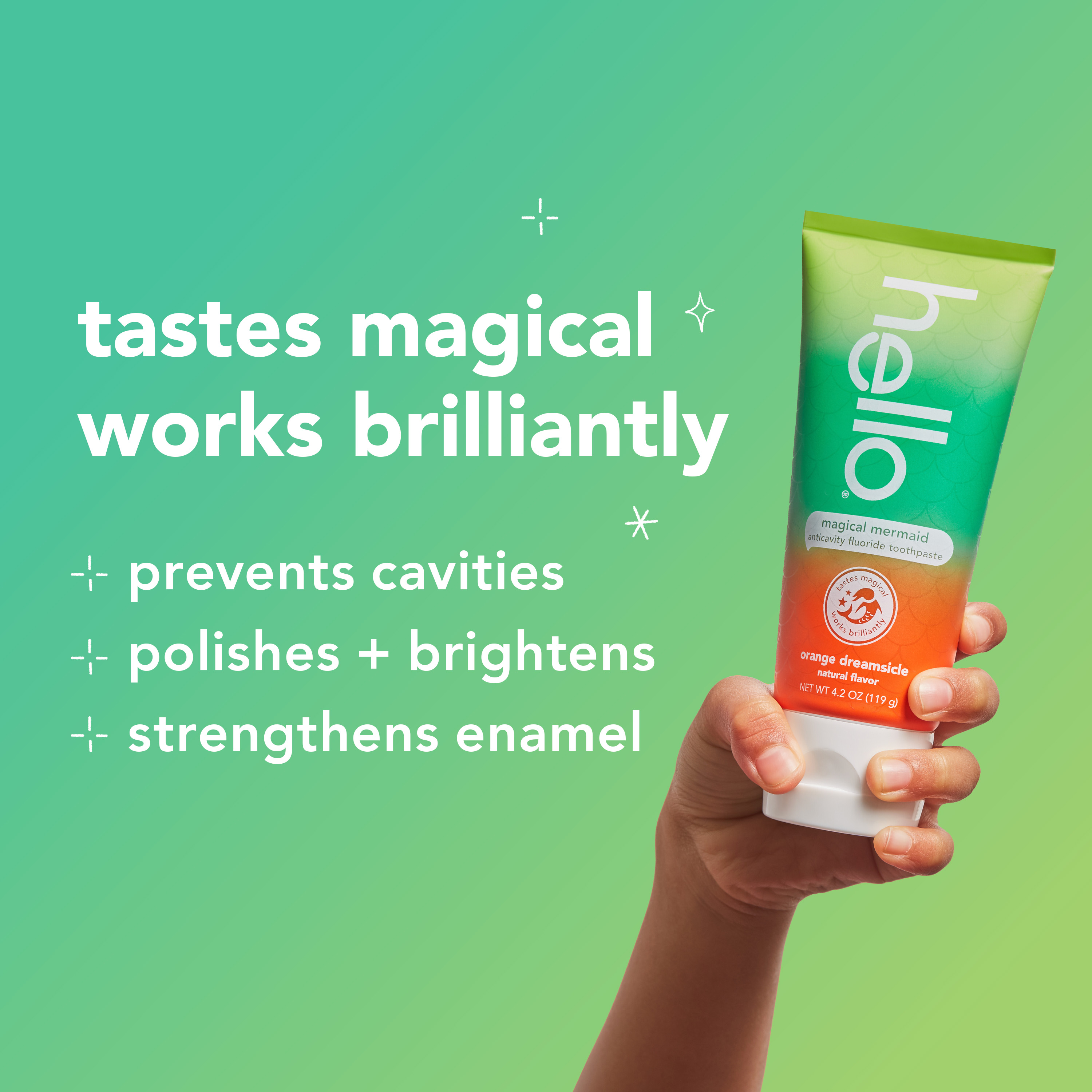 | Bullet 1 | Includes three (3) 4.2 oz tubes of hello Magical Mermaid Kids Toothpaste with Fluoride, Orange Dreamsicle Flavored Toothpaste for Kids |