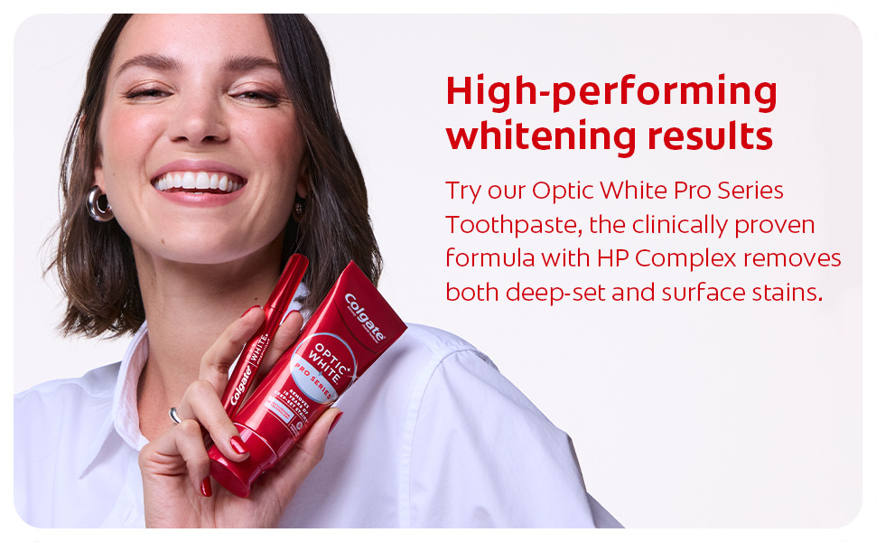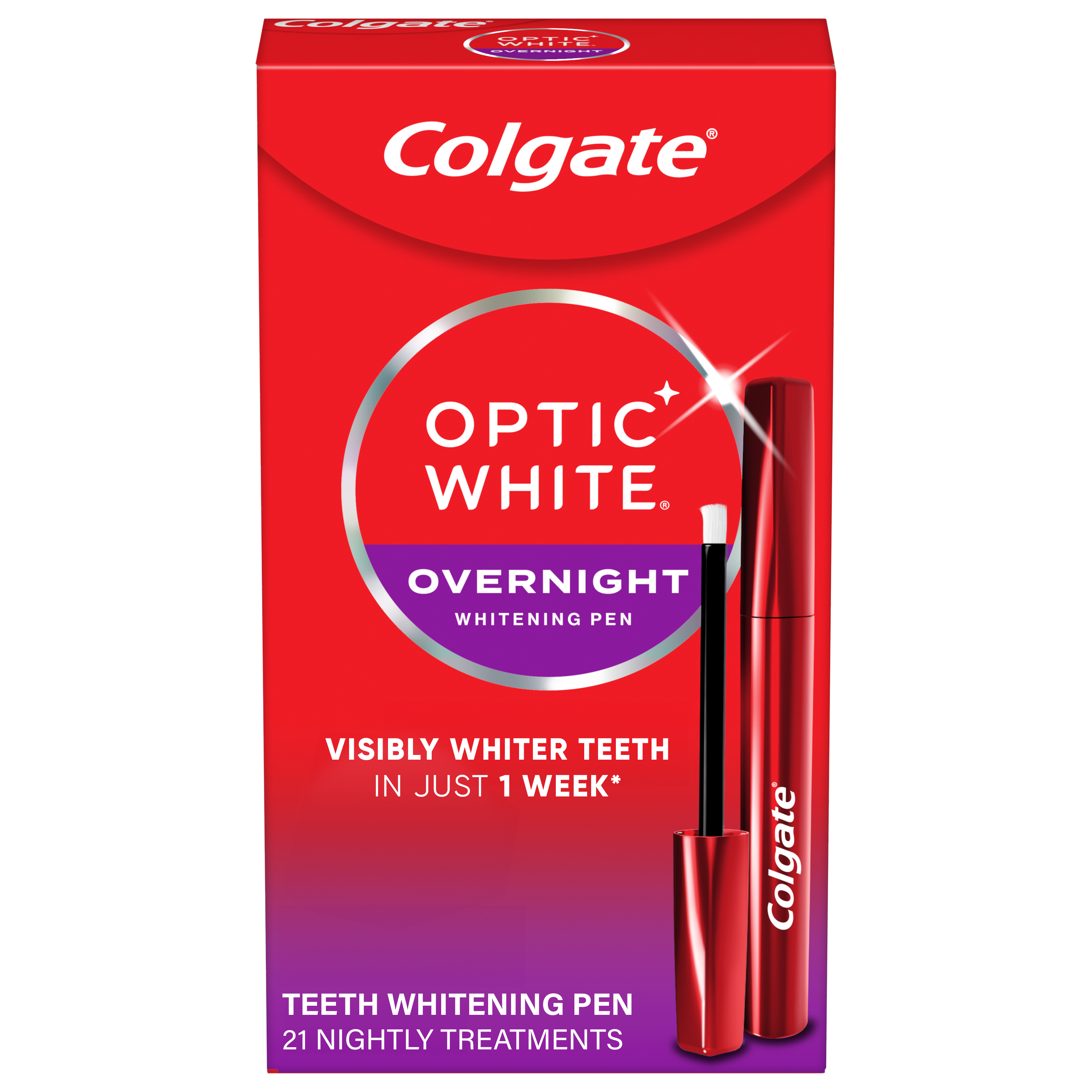 SKU 61039125 Consumer Unit - GTIN 00035000970664 Case - GTIN 10035000970661 Product Category Oral Care Product Sub Category At Home Whitening Product Equity (Brand) Colgate Product Sub Brand Colgate OW Overnight Pen AHW Product Title Colgate Optic White Overnight Teeth Whitening Pen with Hydrogen Peroxide, 0.08 OZ Product Description Get whiter teeth in just 1 week* with Colgate Optic White Overnight Teeth Whitening Pen. This proven formula is powered by hydrogen peroxide—the same whitening ingredient used by dentists—to remove tough stains. Plus, Colgate Overnight ensures enamel safe teeth whitening and is designed for no tooth sensitivity during and after the whitening process. Let the gel work its magic overnight. How does it work? Powered by hydrogen peroxide, this easy-to-use whitening pen removes 15 years of stains in only 1 week.* Get effective teeth whitening at home with fast results for a glowing smile. Is it safe for enamel? Yes, the Overnight Teeth Whitening Pen is enamel safe for daily use. This teeth whitener uses a dentist-recommended ingredient to dissolve stains without compromising enamel. Will it cause sensitivity? This pen is specifically designed for no tooth sensitivity during and after the whitening process. Optic White’s at home whitening gel stays on while you sleep for convenient, effective teeth whitening. Let’s get glowing! *When used as directed, see product packaging eCommerce Copy- Long Description Experience visibly whiter teeth in just 1 week* with the Colgate Optic White Overnight Teeth Whitening Pen. This Colgate whitening pen contains 21 nightly treatments and has a hydrogen peroxide-based formula that is enamel-safe and designed for no tooth sensitivity**. To use the teeth gel whitening pen, follow your regular brushing routine. Next, dry your teeth, then paint the whitening gel onto clean, dry teeth. The serum dries within seconds and will stay on your teeth overnight while you sleep. To remove the dried whitening gel serum, simply brush your teeth like normal when you wake up the next morning and enjoy a whiter smile. Repeat treatment nightly for 1-3 weeks in a row for best whitening results. Get glowing and start living your life to the brightest with the Colgate Optic White Overnight Teeth Whitening Pen. *when used as directed **during and after the whitening process Bullet 1 One 0.08 OZ Colgate Optic White Overnight Teeth Whitening Pen powered by hydrogen peroxide Bullet 2 Removes 15 years of stains in just 1 week* (*When used as directed, see product packaging) Bullet 3 Let the gel work its magic overnight Bullet 4 Enamel safe for daily use and designed for no tooth sensitivity during and after the whitening process Bullet 5 Vegan, gluten-free, and sugar-free teeth whitening serum Bullet 6 Precision brush allows for easy application of the whitening serum to each tooth before bed Bullet 7 The whitening pen includes enough concentrated serum for 35 nightly treatments so you can maintain your results for weeks Amazon RPC B082YHNBMG AMZ URL https://www.amazon.com/dp/B082YHNBMG