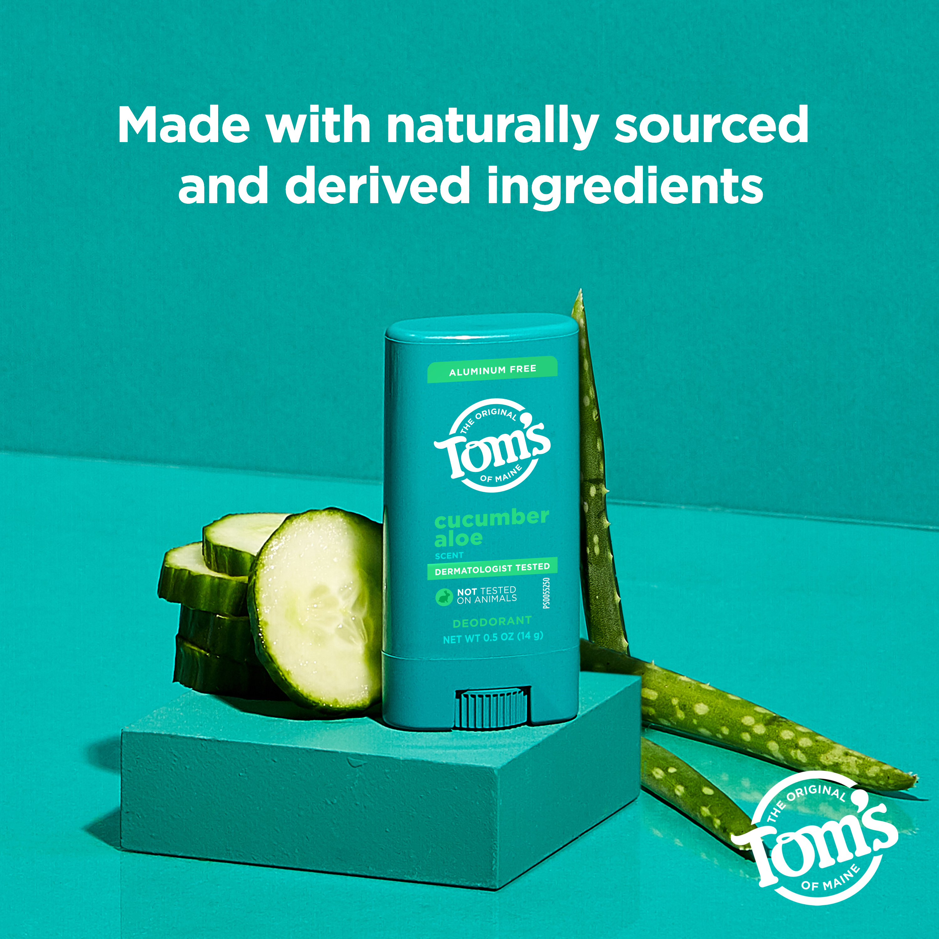 SKU 61039296 Consumer Unit - GTIN 00827854012795 Case - GTIN 10827854012792 Product Category Personal Care Product Sub Category AP > Deo Product Equity (Brand) Tom's of Maine Product Sub Brand Tom's AP/Deo Product Title Tom’s of Maine Cucumber Aloe Natural Mini Deodorant for Women and Men, .5 oz Product Description Tom’s of Maine natural mini deodorant is designed with inclusivity in mind, offering options for men, women, and really, it's for everyone, because feeling fresh and confident knows no gender boundaries. Our underarm deodorant stick provides effective odor and wetness protection, keeping you comfortable throughout the day. This natural deodorant features the captivating fragrance of cucumber aloe, providing a delightful scent for all. With the power of naturally sourced and derived, moisture-locking ingredients, we keep you feeling refreshed. Rest easy knowing that Tom’s of Maine’s next generation deodorant is dermatologist tested, made with aloe vera, and free from artificial fragrances, dyes, preservatives and baking soda. This mini size is perfect for traveling and for on-the go-convenience. A natural approach to personal care without compromising on performance? Yes, please! At Tom’s of Maine, we’re a certified B Corporation committed to creating vegan deodorants with natural fragrances and naturally sourced and derived ingredients that are safe and effective, while giving back 10% of annual profits to charity. Smell good, feel good. eCommerce Copy- Long Description Tom’s of Maine natural deodorant is designed with inclusivity in mind, offering options for men, women, and really, it's for everyone, because feeling fresh and confident knows no gender boundaries. Our underarm deodorant stick provides effective odor and wetness protection, keeping you comfortable throughout the day. This natural deodorant features the captivating fragrance of cucumber aloe, providing a delightful scent for all. With the power of naturally sourced and derived, moisture-locking ingredients, we keep you feeling refreshed. Rest easy knowing that Tom’s of Maine’s next generation deodorant is dermatologist tested, made with aloe vera, and free from artificial fragrances, dyes, preservatives and baking soda. This mini size is perfect for traveling and for on-the go-convenience. A natural approach to personal care without compromising on performance? Yes, please! At Tom’s of Maine, we’re a certified B Corporation committed to creating vegan deodorants with natural fragrances and naturally sourced and derived ingredients that are safe and effective, while giving back 10% of annual profits to charity. Smell good, feel good. Bullet 1 One .5 oz Tom’s of Maine Cucumber Aloe natural mini deodorant for men and women, it's for everyone Bullet 2 Aluminum free deodorant with naturally sourced and derived, moisture-locking ingredients Bullet 3 Underarm deodorant for everyone that offers odor and wetness protection, keeping you fresh and confident throughout the day Bullet 4 Our travel size deodorant is dermatologist tested, made with aloe vera, and free from artificial fragrances, dyes, preservatives and baking soda Bullet 5 This vegan deodorant is not tested on animals