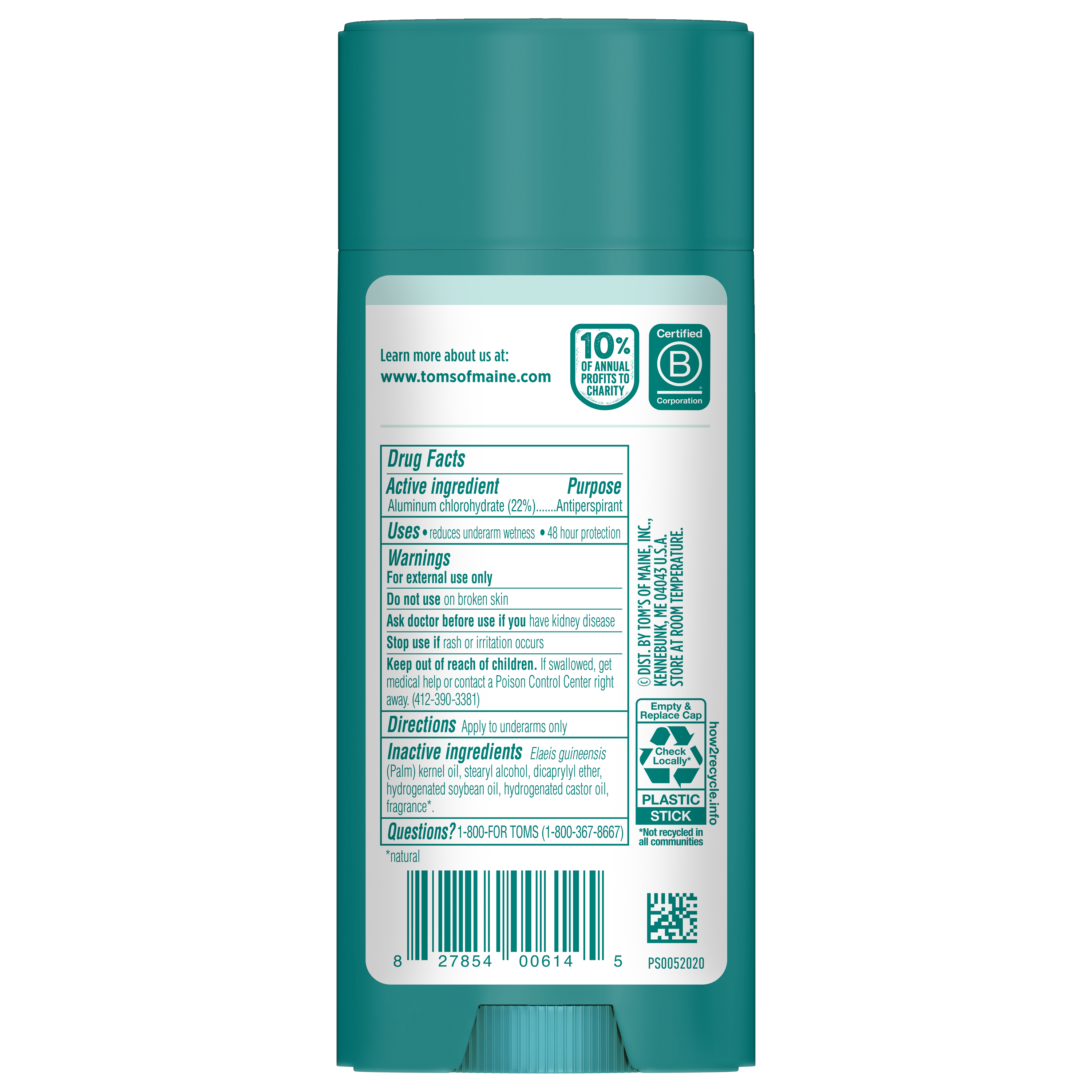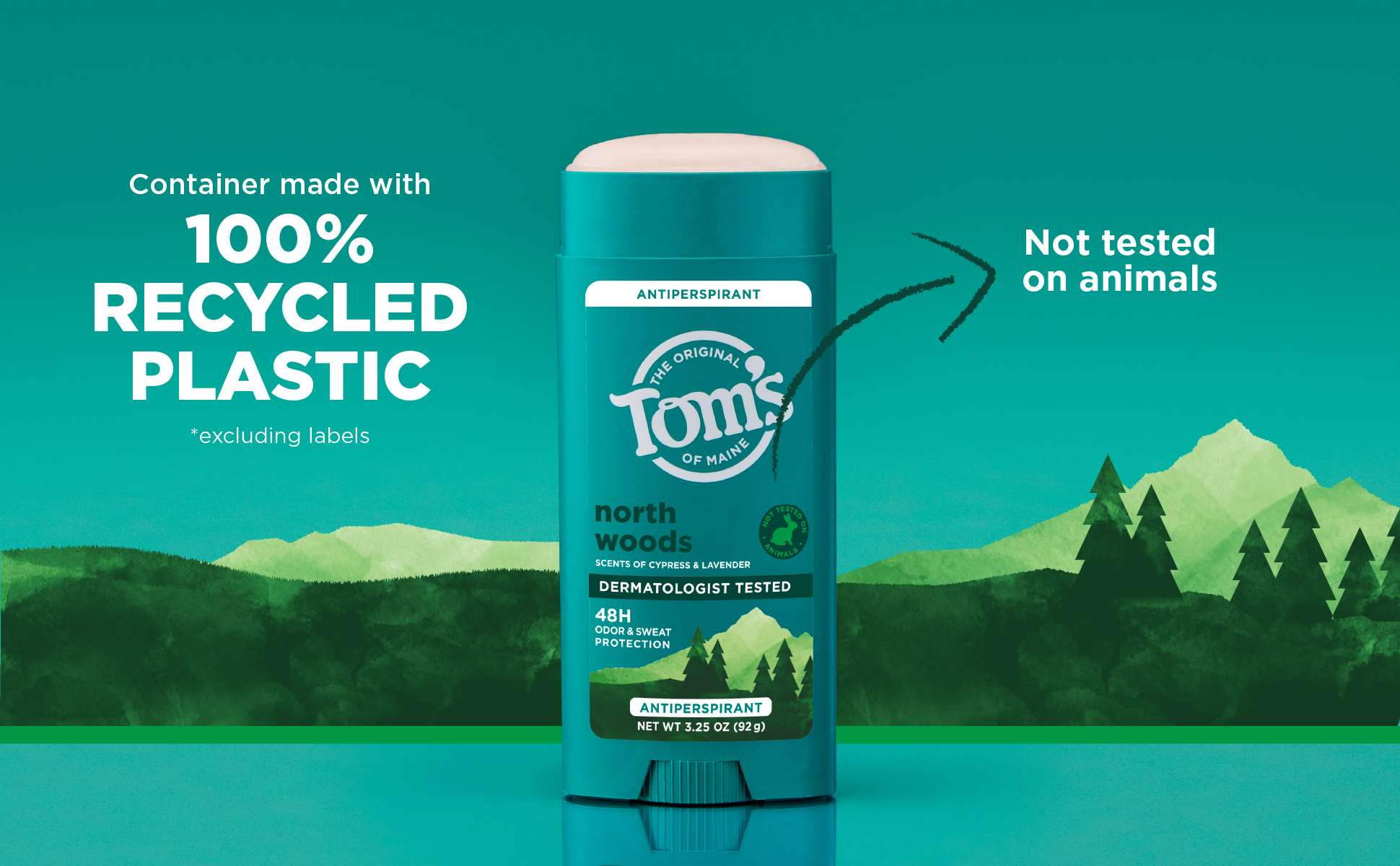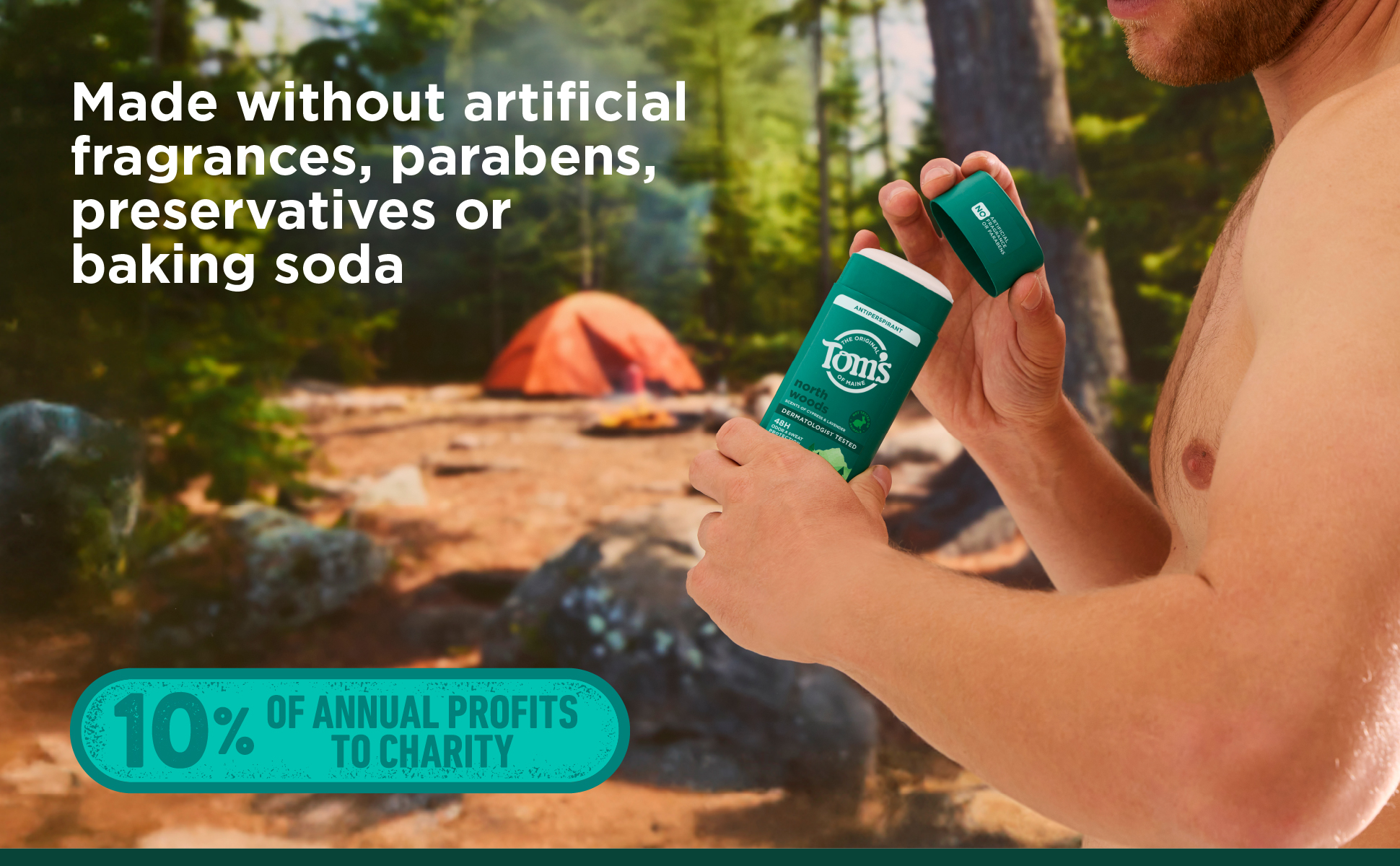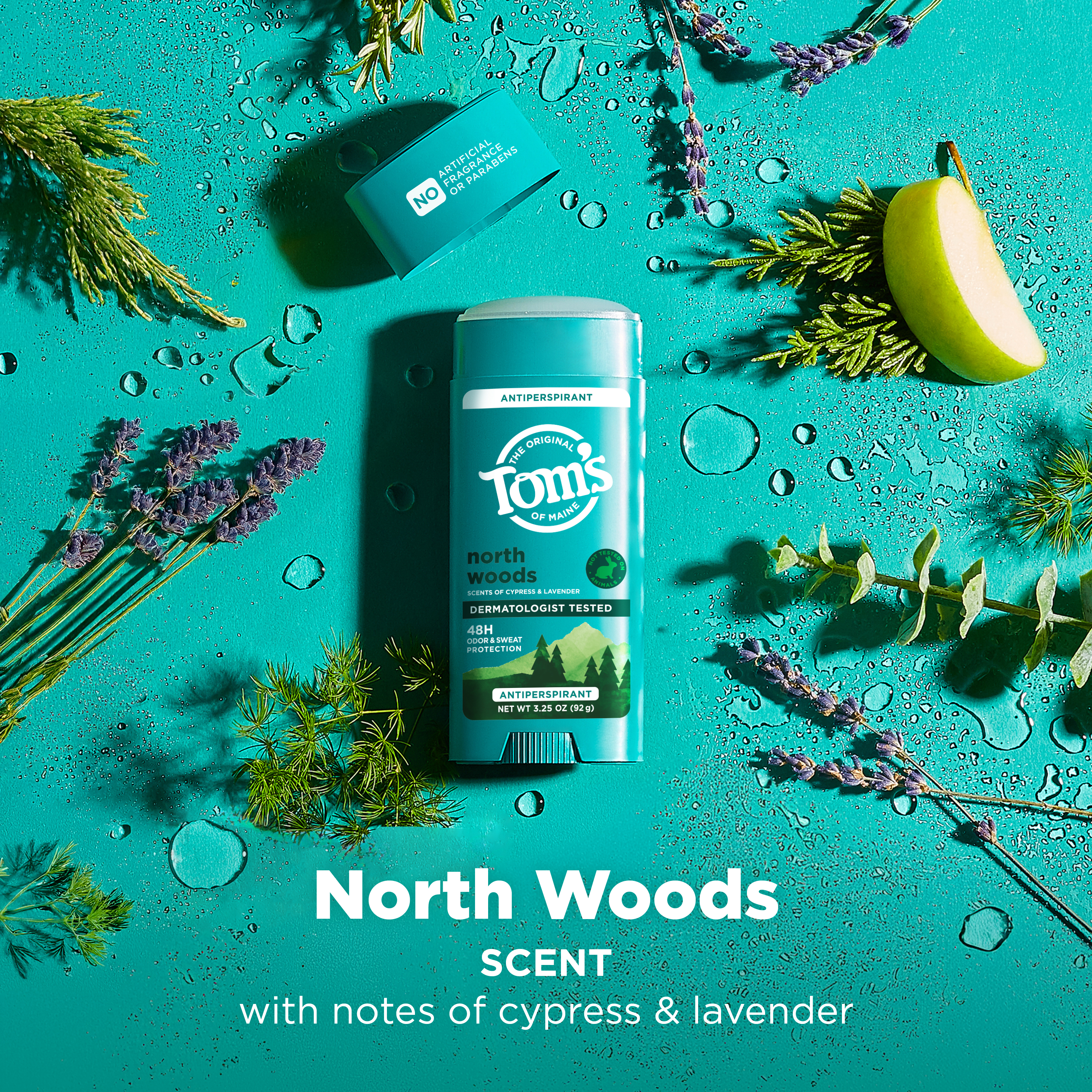 SKU 61039513 Consumer Unit - GTIN 00827854012986 Case - GTIN 10827854012983 Product Category Personal Care Product Sub Category AP > Deo Product Equity (Brand) Tom's of Maine Product Sub Brand Tom's AP/Deo Product Title Tom’s of Maine North Woods Antiperspirant for Men and Women, No Artificial Fragrances, Dyes, or Preservatives, Baking Soda Free, 48-Hour Odor and Sweat Protection, 3.25 oz (2 Pack) Product Description Tom’s of Maine North Woods Antiperspirant is crafted for men and women seeking reliable 48-hour odor and sweat protection. Experience a green herbal blend with cypress, lavender, and cedar scent notes every time you apply. The formula is vegan, baking soda free, and paraben free, with no artificial fragrances, dyes, or preservatives; making it perfect for everyday use. Like all Tom’s of Maine products, it is not tested on animals. Our stick antiperspirant delivers long-lasting protection for active lifestyles and everyday routines. Keep this trusted personal care product in your gym bag, travel bag, or bathroom. The 3.25 oz container is made from 100% recycled plastic*. With Tom’s of Maine, you get protection you can count on—so you can feel fresh and confident every day, no matter where life takes you. *excluding label eCommerce Copy- Long Description Tom’s of Maine antiperspirant is designed with inclusivity in mind, offering options for men, women, and really, it's for everyone, because feeling fresh and confident knows no gender boundaries. Get protection you can count on with Tom’s of Maine North Woods antiperspirant, which offers 48 hour sweat and odor protection to keep you feeling fresh and confident. Our antiperspirant for men and women ensures all-day freshness, especially for those who aren't afraid to break a sweat! Whenever you need extra effective protection, you can rest easy knowing that our antiperspirant will do the job while being dermatologist tested and free from artificial fragrances, parabens and baking soda. What’s more, we’re not tested on animals and we’re proud to offer our product in a new, bigger container v. our prior antiperspirants and is made with 100% recycled plastic. At Tom’s of Maine, we’re a certified B Corporation committed to creating effective products, while giving back 10% of annual profits to charity. Smell good, feel good. Bullet 1 Includes two 3.25 oz sticks of Tom’s of Maine North Woods Natural Antiperspirant featuring a green herbal blend with cypress, lavender, and cedar Bullet 2 Our underarm antiperspirant provides 48-hour odor and sweat protection, keeping you feeling dry and confident throughout the day Bullet 3 Tom’s of Maine Antiperspirant is dermatologist tested, contains no artificial fragrances, parabens, or baking soda, and is not tested on animals Bullet 4 We’re doing our part with a container made entirely from recycled plastic* Bullet 5 This stick antiperspirant is designed for women, men, teens, or anyone seeking gentle care Bullet 6 Keep this trusted personal care product in your gym bag, travel bag, or bathroom for on-the-go freshness Amazon RPC B0CQ728DDR AMZ URL https://www.amazon.com/dp/B0CQ728DDR