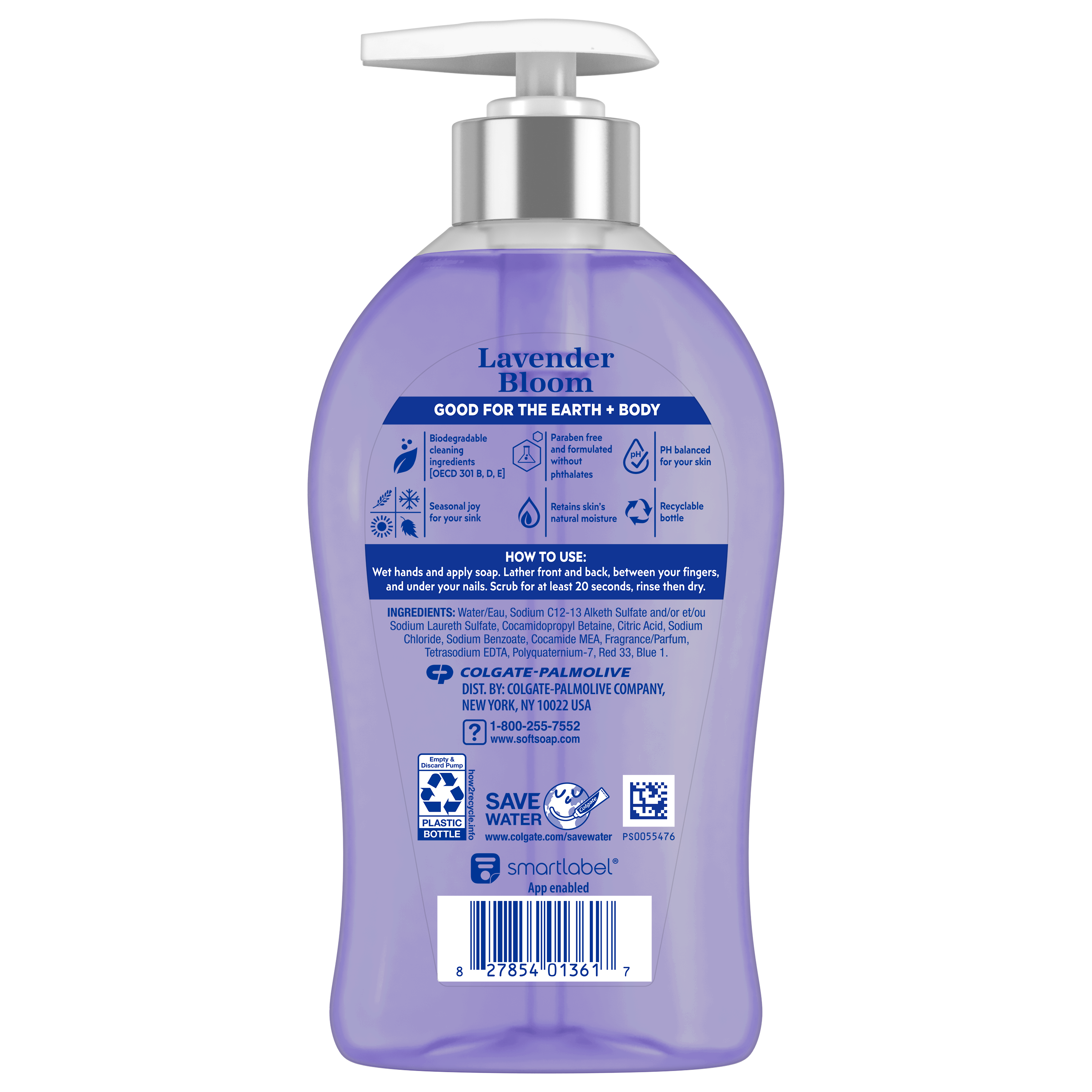 SKU 61040020 Consumer Unit - GTIN 00827854013617 Case - GTIN 10827854013614 Product Category Personal Care Product Sub Category Liquid Hand Wash Product Equity (Brand) Softsoap Product Sub Brand Softsoap LHW Product Title Softsoap Limited Edition Liquid Hand Soap, Lavender Bloom Scent, Lavender Hand Soap, 11.25 oz Pump Bottle Product Description Infuse your daily routine with Softsoap’s Limited Edition Lavender Bloom Scented Liquid Hand Soap. Softsoap is America's #1 Liquid Hand Soap brand (1), trusted to clean your hands since 1975. Immerse yourself in the scent of lavender, amber, musk and sandalwood for a relaxing and floral aromatic experience. This purple hand soap will transport your senses to a freshly bloomed field or a vibrant bouquet. Our formula is pH balanced and helps to retain skin's natural moisture and is paraben free and without phthalates. Health care agencies recommend washing hands with soap and clean running water for 20 seconds to wash away dirt and bacteria. Versatile for any space, elevate your sink experience this season with delightful packaging and a stylish metal collar pump bottle. Don't miss the chance to make every hand wash a moment of happiness – grab yours while supplies last. (1) Based in part on data reported by Nielsen through its Market Track Service for the Liquid Hand Soap Category for the 52 week period ending 07/01/23, for the All Outlet market. Copyright © 2023 Nielsen Bullet 1 One 11.25 oz Pump Bottle of Softsoap Limited Edition Liquid Hand Soap, Lavender Bloom Scent Bullet 2 Softsoap is America's #1 Liquid Hand Soap brand (1), trusted to clean your hands since 1975 Bullet 3 This purple hand soap will transport your senses to a freshly bloomed field or a vibrant bouquet Bullet 4 Elevate your sink with the delightful packaging and stylish metal collar pump bottle this season Bullet 5 Versatile to use as a bathroom hand soap, kitchen hand soap, or in any other space that needs a touch of happiness Bullet 6 Our formula is pH balanced and helps to retain skin’s natural moisture and is paraben free and without phthalates Bullet 7 Health care agencies recommend washing hands with soap and clean running water for 20 seconds to wash away dirt and bacteria Target RPC 89622983 Target URL https://www.target.com/p/a/-/A-89622983