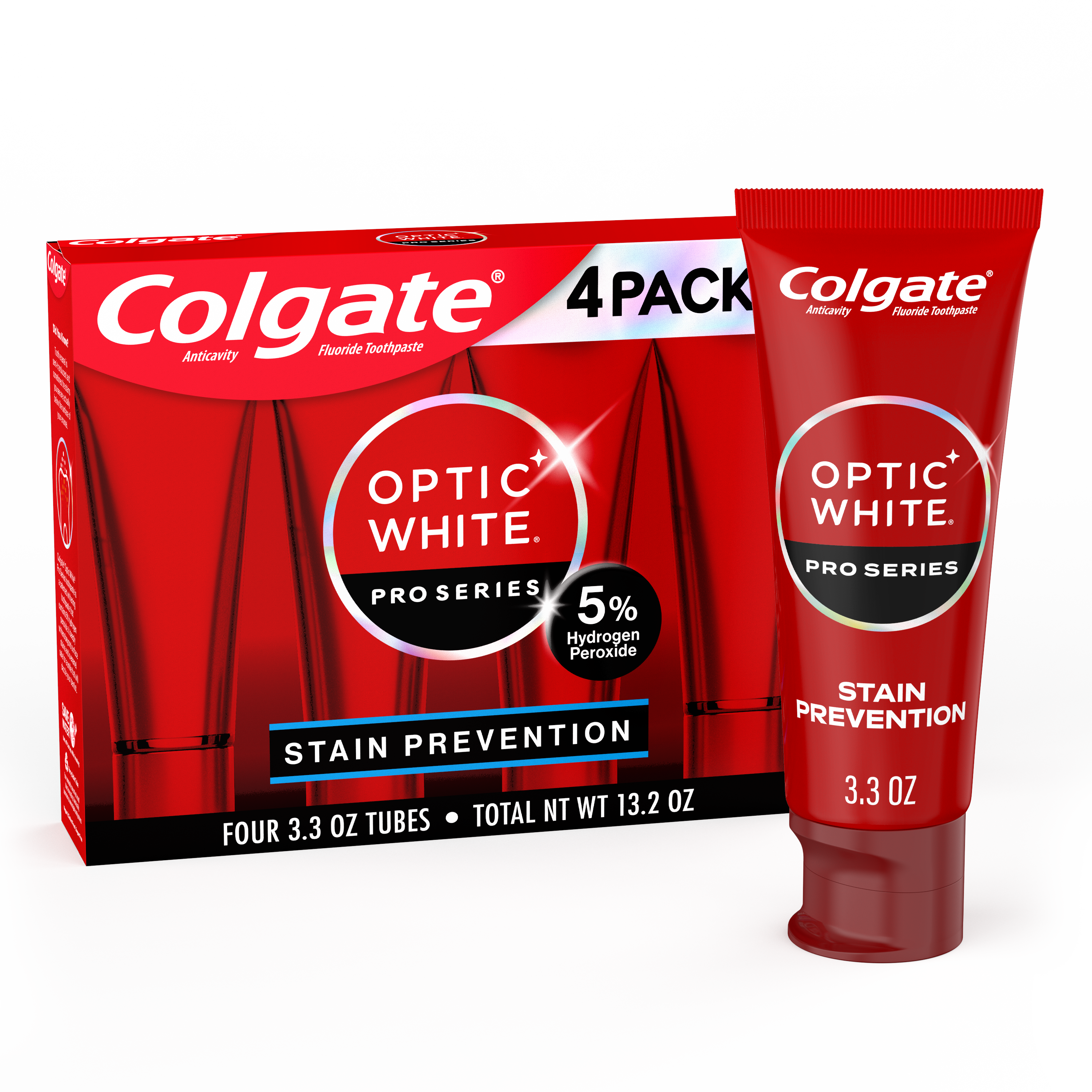 Colgate Optic White Pro Series Stain Prevention Hydrogen Peroxide Toothpaste, 3.3 oz, 4 pk