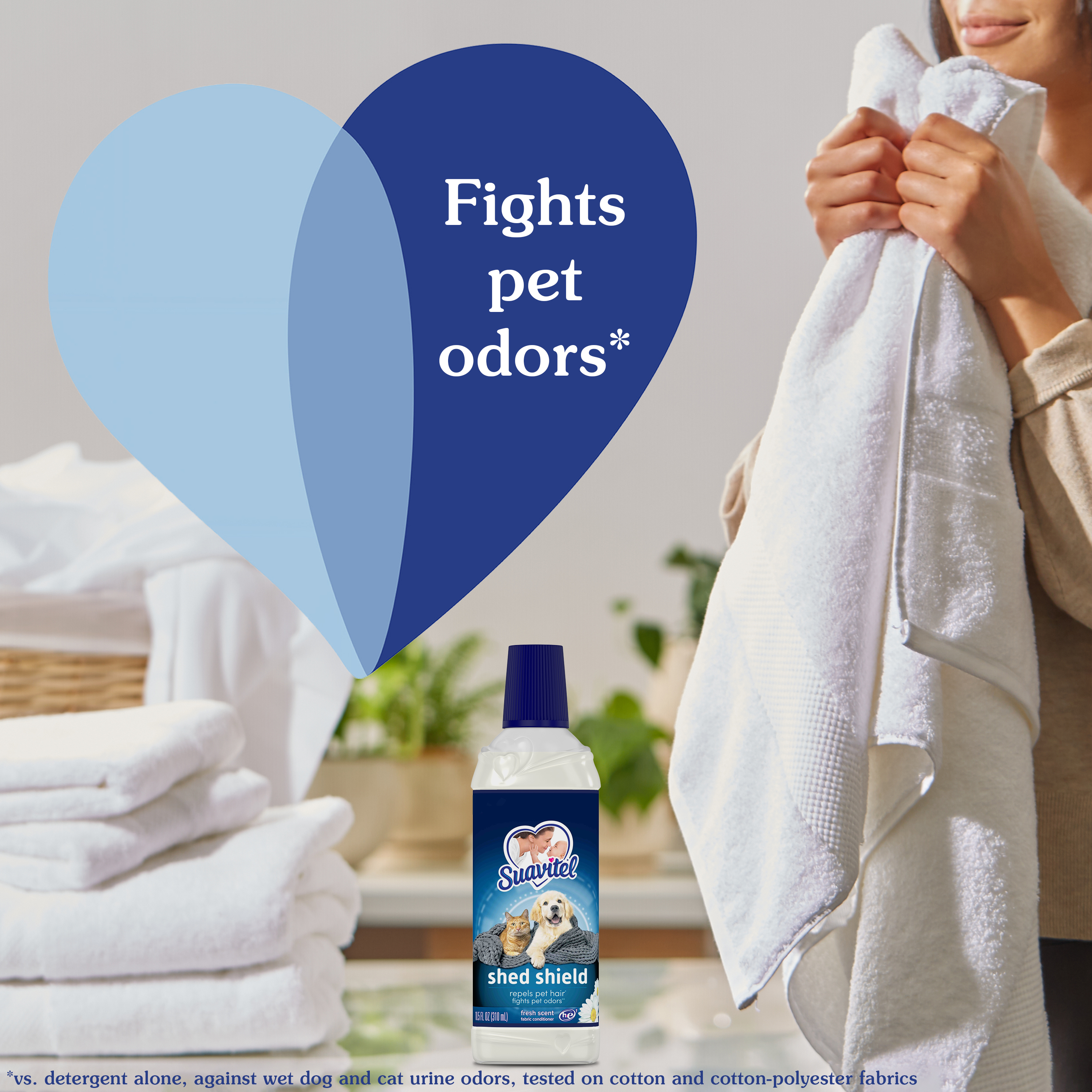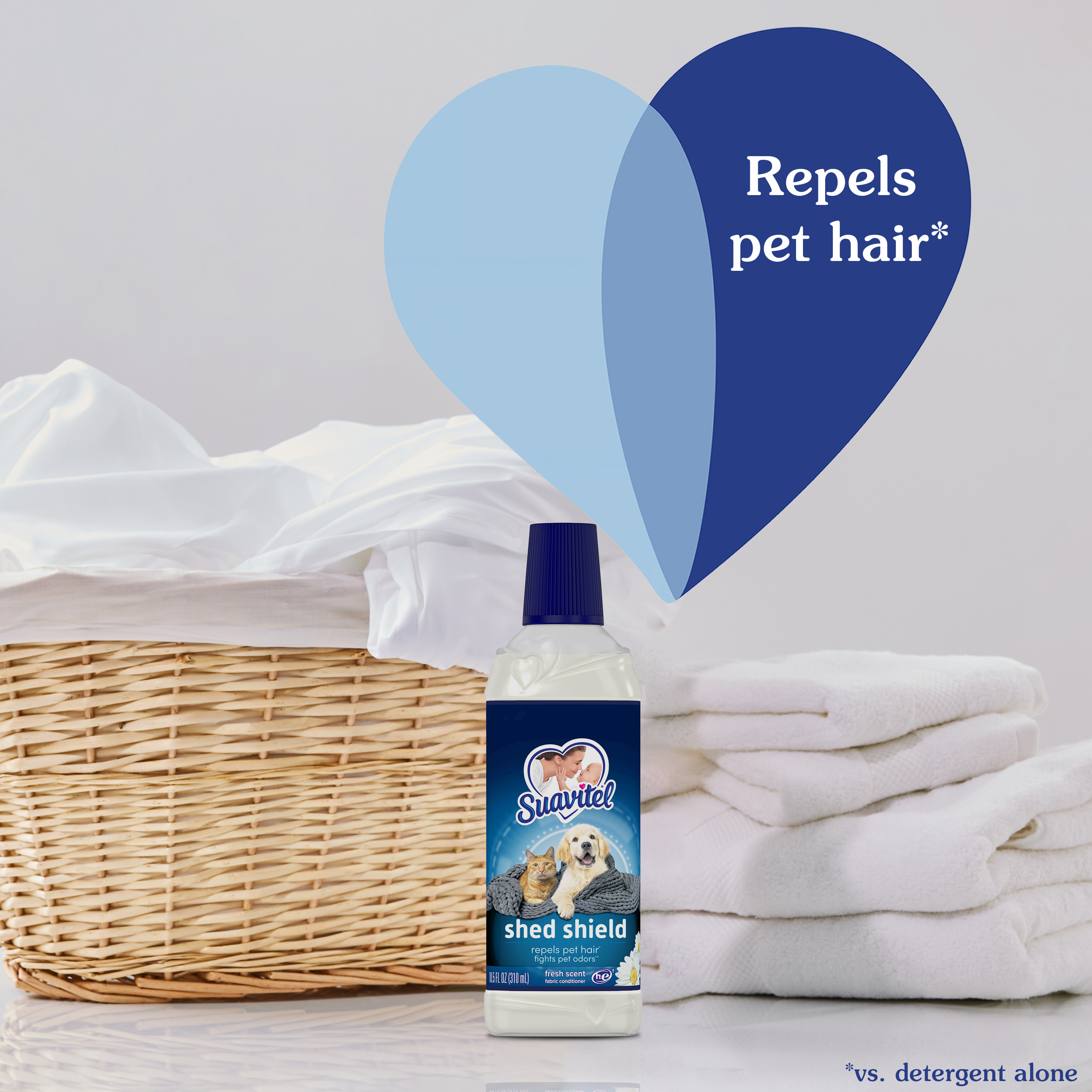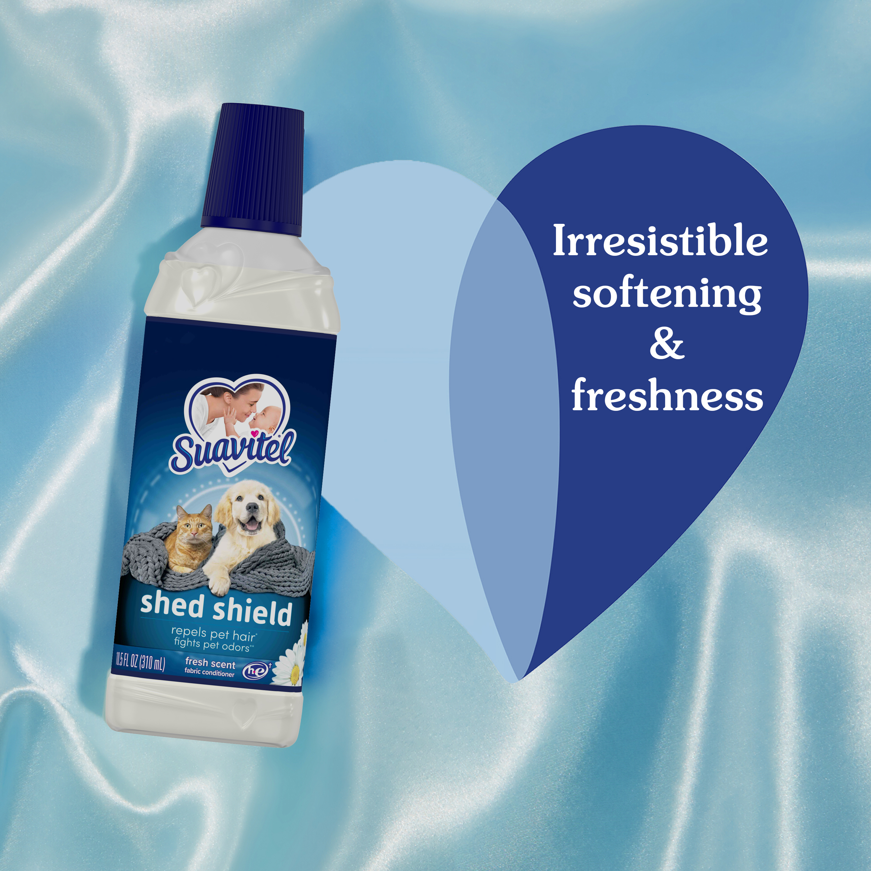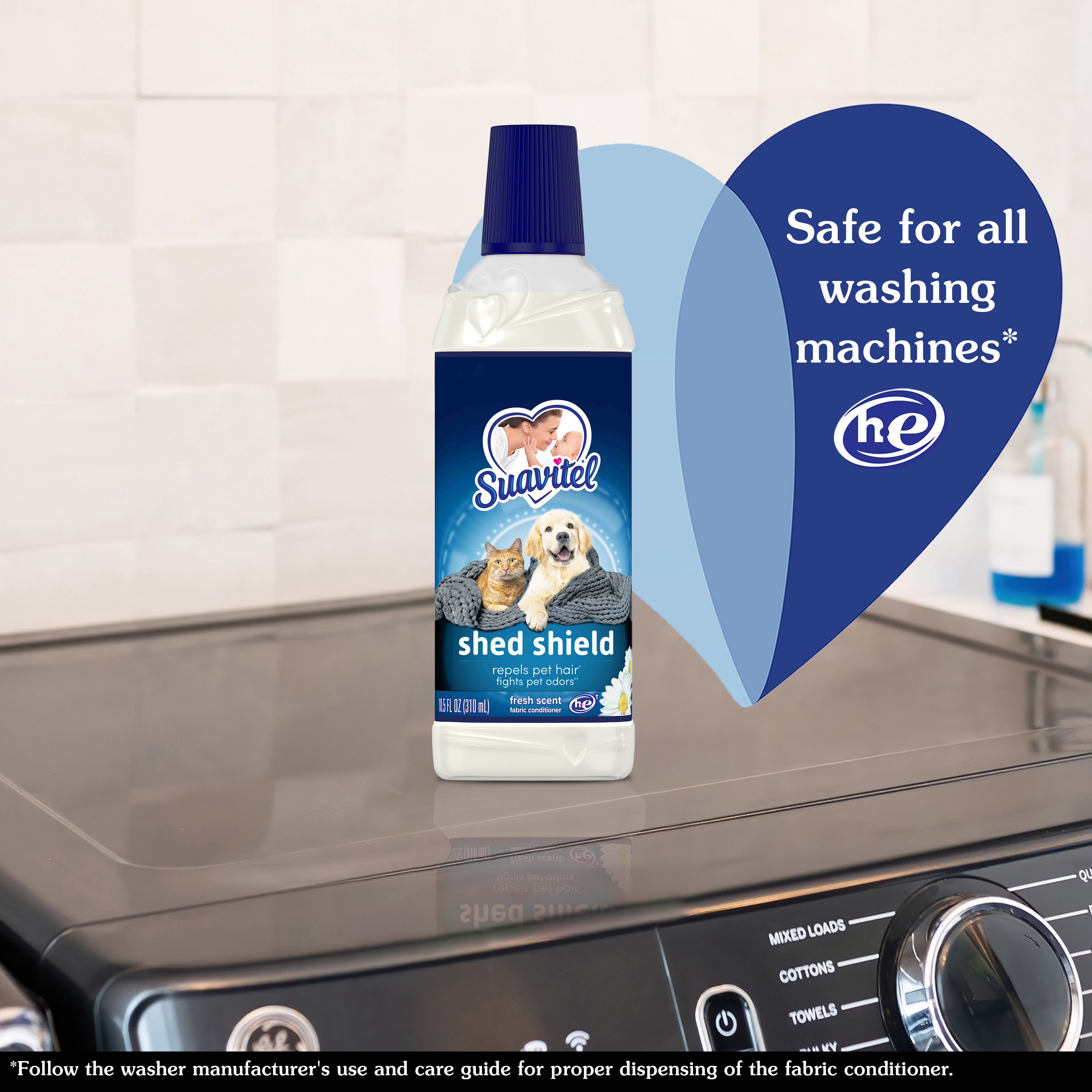SKU 61041384 Consumer Unit - GTIN 00827854014652 Case - GTIN 10827854014659 Product Category Home Care Product Sub Category FC Liquids Product Equity (Brand) Suavitel Product Sub Brand Suavitel Liq FC Product Title Suavitel Shed Shield Fabric Conditioner, Fresh Scent, 10.5 oz Product Description Introducing Suavitel Shed Shield, the ideal solution designed specifically for pet parents who want to win the fight against pet hair and odors. Suavitel Shed Shield helps you leave the fur behind by repelling pet hair compared with using detergent alone. Make Suavitel Shed Shield your go-to fabric conditioner to win the fight against pet fur mess. Suavitel Shed Shield effectively repels pet hair versus using detergent alone (1). You can now worry less about fur sticking to your clothes and enjoy the fresh scent with every wash. Our formula fights pet odor vs detergent alone (2). Having been tested on cotton and cotton-polyester fabrics, this fabric conditioner helps your laundry stay fresh. We understand the unique challenges that pet parents face, that's why Suavitel Shed Shield is specifically designed for you. Suavitel addresses your needs and helps your fabrics fight pet fur compared with only using detergent. Shed Shield not only repels pet hair (1) and fights odors (2), but it also leaves your fabrics soft and comfortable to touch. The Fresh Scent provides a harmonious combination of soft floral top notes and juicy fruity mid notes. Suavitel Shed Shield is compatible with all washing machines, including HE compatible (3), making it convenient for every pet parent. You can trust Shed Shield to provide outstanding results without any hassle. Suavitel Shed Shield allows you to focus on the love and companionship of your furry friends, without worrying about the mess they leave behind. Help your clothes stay fresh while repelling pet hair (1) and fighting pet odor (2) with Suavitel Shed Shield. (1 ) vs. detergent alone (2) vs. detergent alone, against wet dog and cat urine odors, tested on cotton and cotton-polyester fabrics (3) Follow the washer manufacturer's use and care guide for proper dispensing of the fabric conditioner eCommerce Copy- Long Description Introducing Suavitel Shed Shield, the ideal solution designed specifically for pet parents who want to win the fight against pet hair and odors. Suavitel Shed Shield helps you leave the fur behind by repelling pet hair compared with using detergent alone. Make Suavitel Shed Shield your go-to fabric conditioner to win the fight against pet fur. Suavitel Shed Shield effectively repels pet hair versus using detergent alone (1). Worry less about fur sticking to your clothes. Our formula fights pet odor (2).Tested on cotton and cotton-polyester fabrics, this fabric conditioner helps your laundry stay fresh. We understand the unique challenges that pet parents face. That's why Suavitel Shed Shield is specifically designed for you. Suavitel addresses your needs and helps your fabrics fight pet fur compared with detergent alone. Experience the irresistible softness that Suavitel is known for. Shed Shield not only repels pet hair (1) and fights odors (2), but it also leaves your fabrics soft and comfortable to touch. Enjoy the ultimate laundry experience with every wash. A harmonious combination of soft floral top notes and juicy fruity mid notes. The creamy base notes of amber, woods and musk add long-lasting freshness. Suavitel Shed Shield is compatible with all washing machines, including HE compatible (3), making it convenient for every pet parent. You can trust Shed Shield to provide outstanding results without any hassle. Suavitel Shed Shield allows you to focus on the love and companionship of your furry friends, without worrying about the mess they leave behind. Help your clothes stay fresh while repelling pet hair (1) and fighting pet odor (2) with Suavitel Shed Shield. (1 ) vs. detergent alone (2) vs. detergent alone, against wet dog and cat urine odors, tested on cotton and cotton-polyester fabrics (3) Follow the washer manufacturer's use and care guide for proper dispensing of the fabric conditioner Bullet 1 One 10.5 oz bottle of Suavitel Shed Shield Fabric Conditioner, Fresh Scent Bullet 2 Fight unpleasant pet odors (2) with Suavitel Shed Shield, tested against wet dog and cat urine odors on cotton and cotton-polyester fabrics Bullet 3 Designed specifically for pet parents, Suavitel Shed Shield addresses their unique needs and helps avoid pet fur on fabrics Bullet 4 Experience the irresistible softness that Suavitel is known for, in addition to its hair-repelling (1) and odor-fighting (2) capabilities Bullet 5 Suavitel Shed Shield is compatible with all washing machines, including HE compatible (3), ensuring convenience for every pet parent Bullet 6 Focus on the love and companionship of your furry friends, while Suavitel Shed Shield takes care of helping your clothes fight pet fur Bullet 7 Stand out from other fabric conditioners with Suavitel Shed Shield to repel pet hair (1) and fight pet odors (2) Dollar Tree RPC 388895