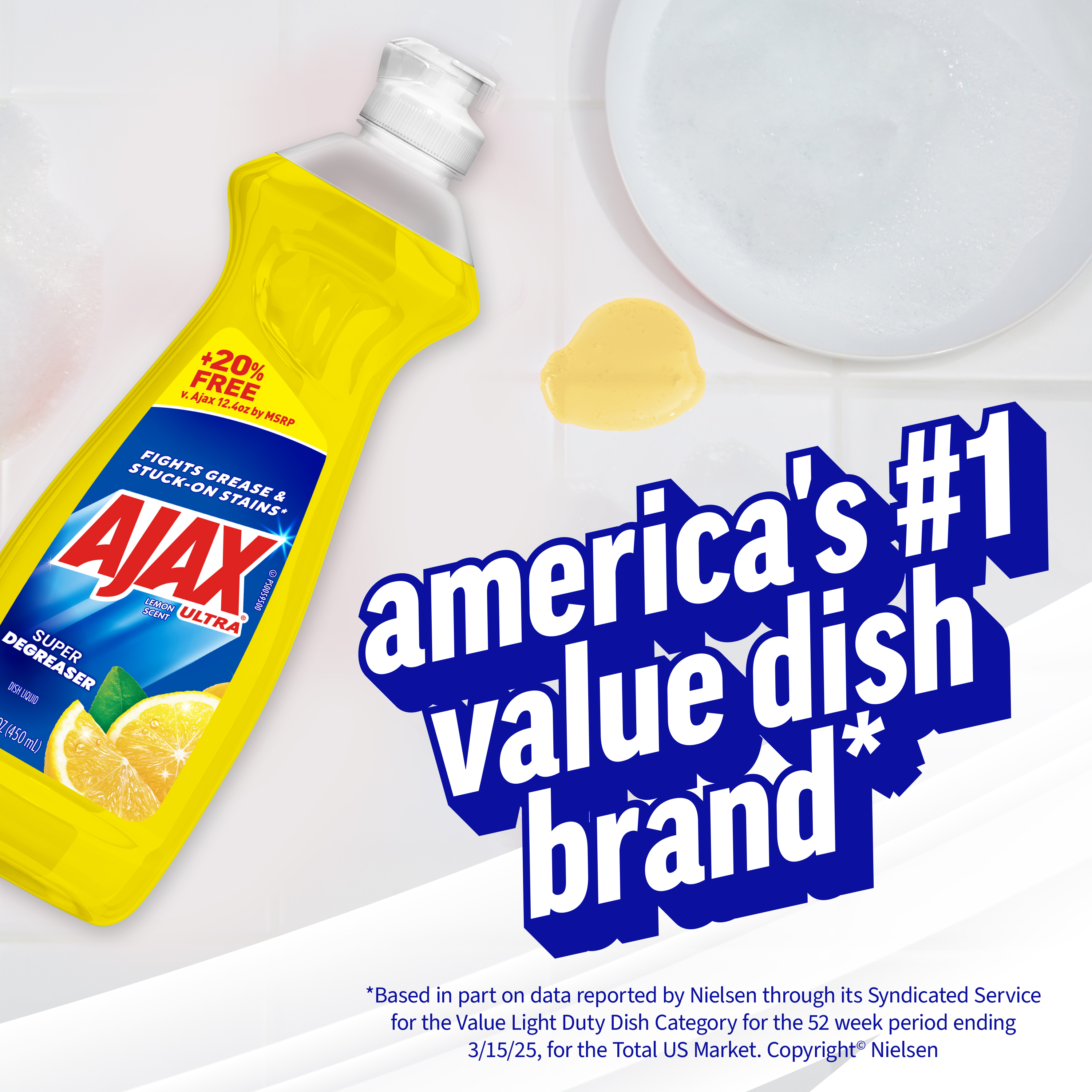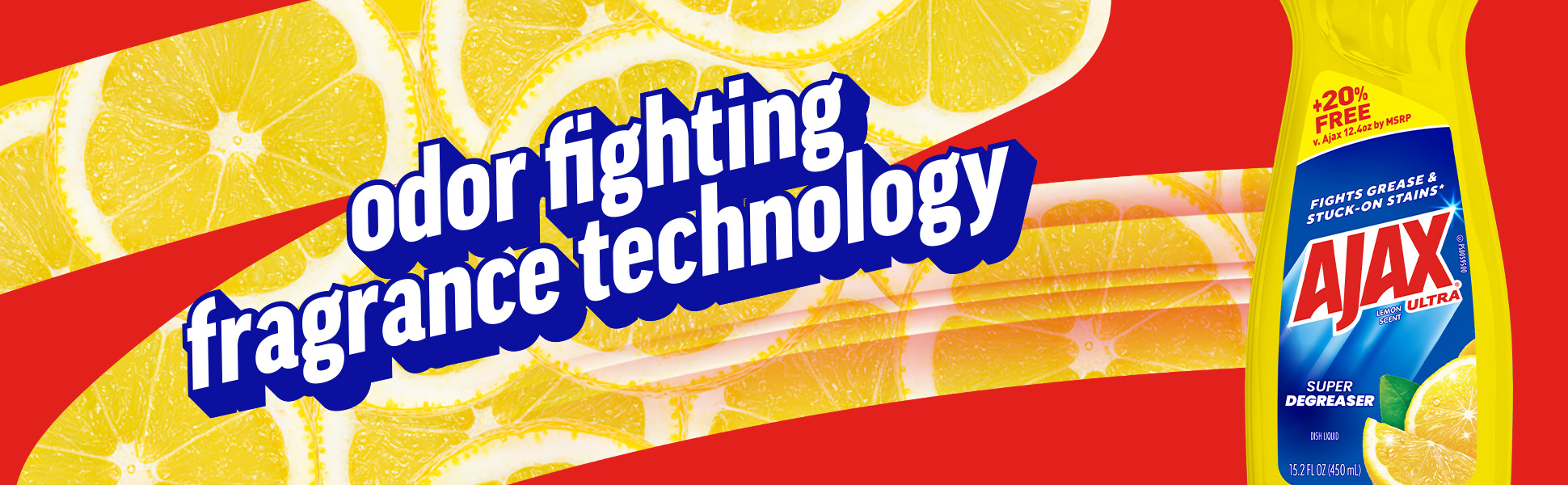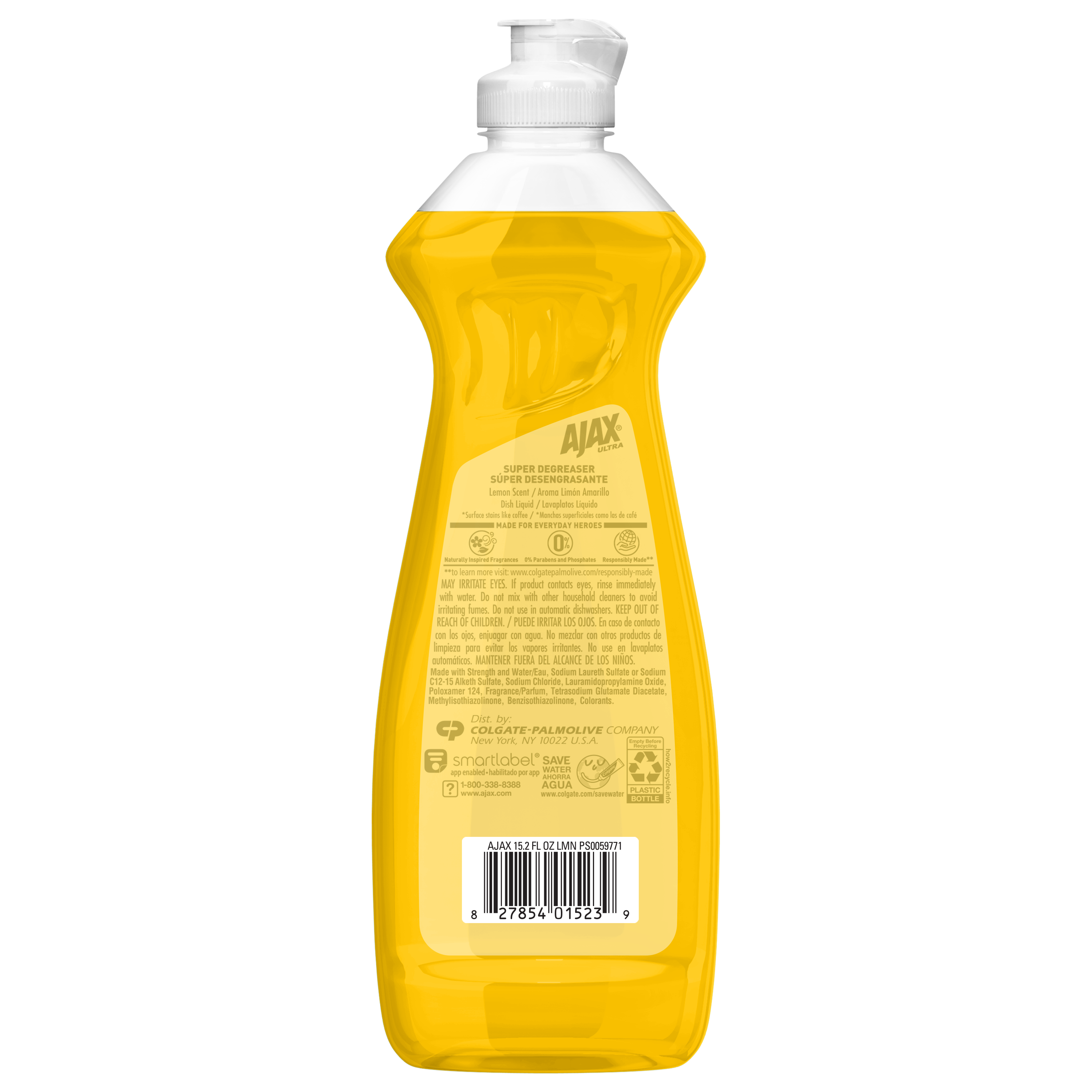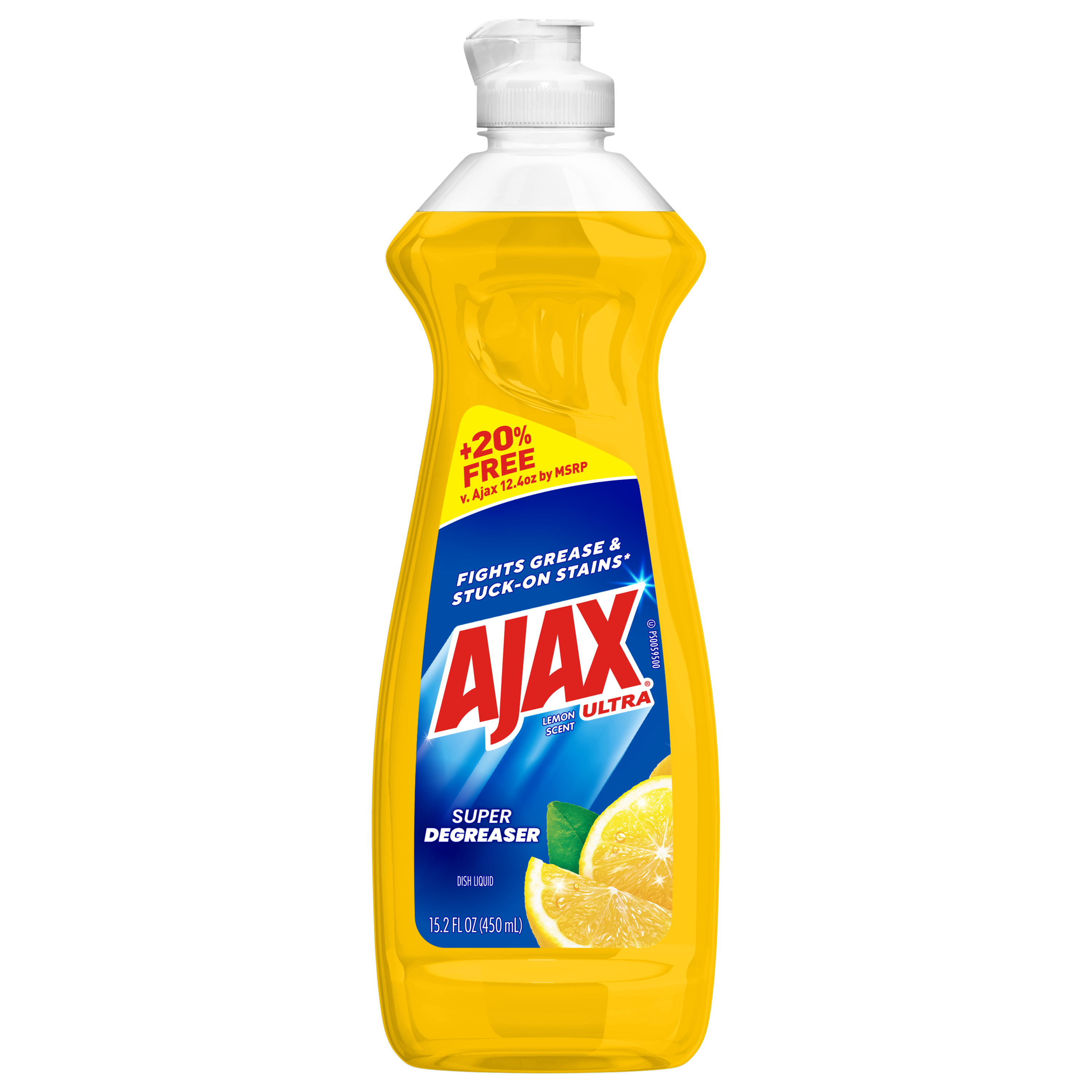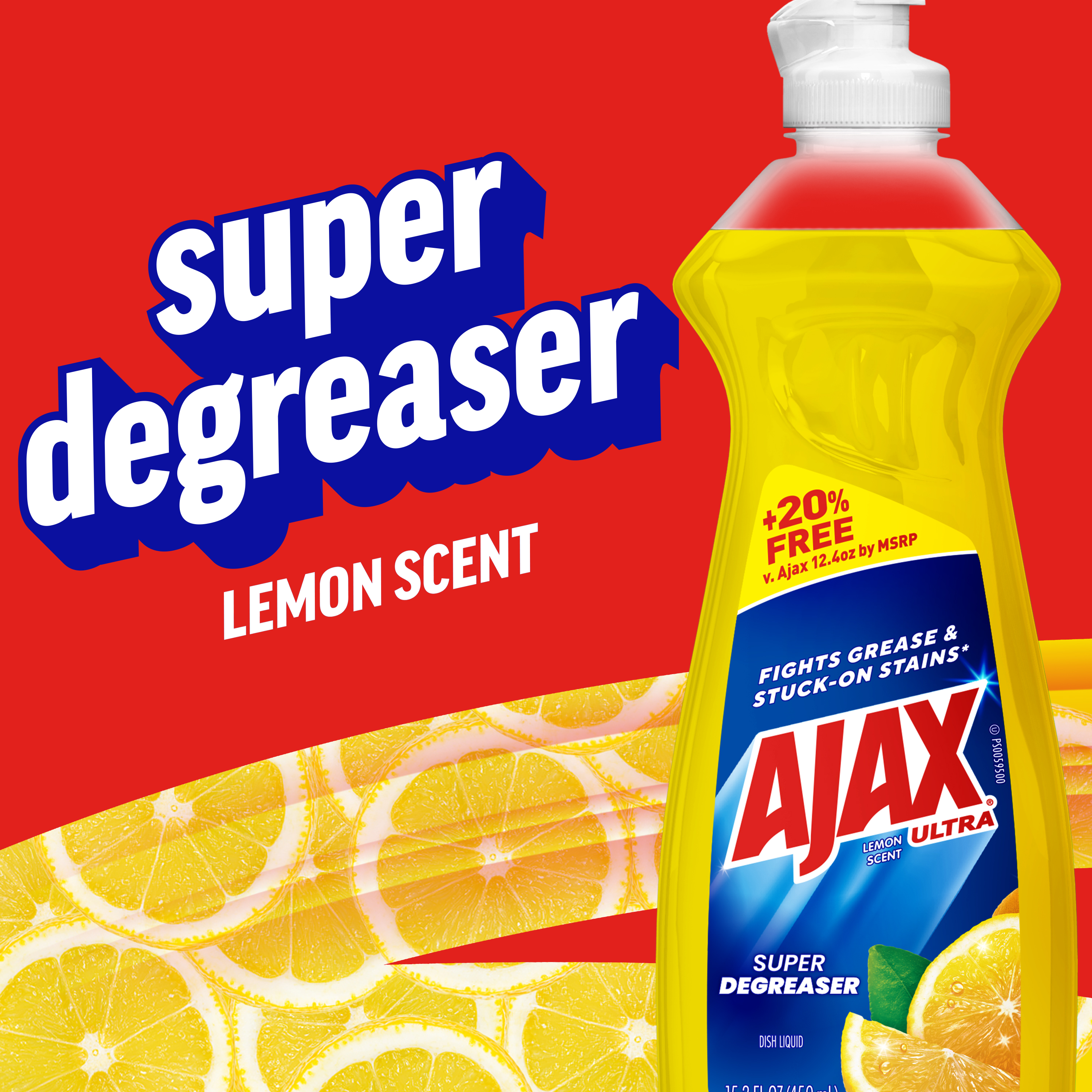 SKU 61041839 Consumer Unit - GTIN 00827854015239 Case - GTIN 10827854015236 Product Category Home Care Product Sub Category Dish Hand Product Equity (Brand) Ajax Product Sub Brand Ajax HD Product Title Ajax Ultra Liquid Dish Soap Lemon Scent, Super Degreaser, 15.2 oz Bottle Product Description Boost your mood and your dishwashing experience with Ajax Ultra Liquid Dish Soap. We have combined your favorite lemon scent with the efficacy of Ajax to help you fight grease and stuck-on stains on dishes, ensuring a powerful cleaning experience. Our super degreaser formula ensures you conquer grease and stubborn stains on your dishes, delivering a deep-cleaning action that leaves your kitchenware spotless. This dishwashing detergent liquid is made with naturally inspired fragrances, zero parabens and no phosphates. Get more cleaning power for your buck with Ajax Ultra Liquid Dish Soap, offering +20% free compared to Ajax 12.4 oz by MSRP, ensuring you get extra value with every bottle. The power of Ajax Ultra goes beyond the sink. This versatile kitchen dish soap allows you to pre-treat laundry, wash tires, and wipe down appliances. Life is tough, but you're tougher! We understand that life isn’t easy. You work hard—heck, REALLY hard. You tackle big and small tough jobs, without looking for applause. That’s why we at Ajax recognize you, the everyday heroes, who step up at the end of a long day and get the dishes done. Because, let’s face it, at the end of the day a clean home is a happy home. Leave the grime to us so you can get back to what really matters! Bullet 1 One 15.2 oz Bottle of Ajax Ultra Liquid Dish Soap Lemon Scent, Super Degreaser Bullet 2 This liquid dish soap brings a boost of mood and freshness to your kitchen with its refreshing lemon scent, creating a delightful and powerful cleaning experience Bullet 3 This yellow dish soap not only leaves your dishes sparkling clean but easily dissolves stuck on grease and stubborn stains Bullet 4 This dishwashing detergent liquid is made with naturally inspired fragrances, zero parabens and no phosphates Bullet 5 The power of Ajax kitchen dish soap goes beyond the sink. This versatile dish soap liquid allows you to pre-treat laundry, wash tires, and wipe down appliances Bullet 6 Life is tough, but Ajax applauds your resilience. Let the lemon scent transform chores into moments of joy Bullet 7 Ajax salutes hardworking individuals, recognizing the unsung heroes who conquer tough jobs, making homes happy Dollar Tree RPC 388866 Family Dollar RPC 1498126