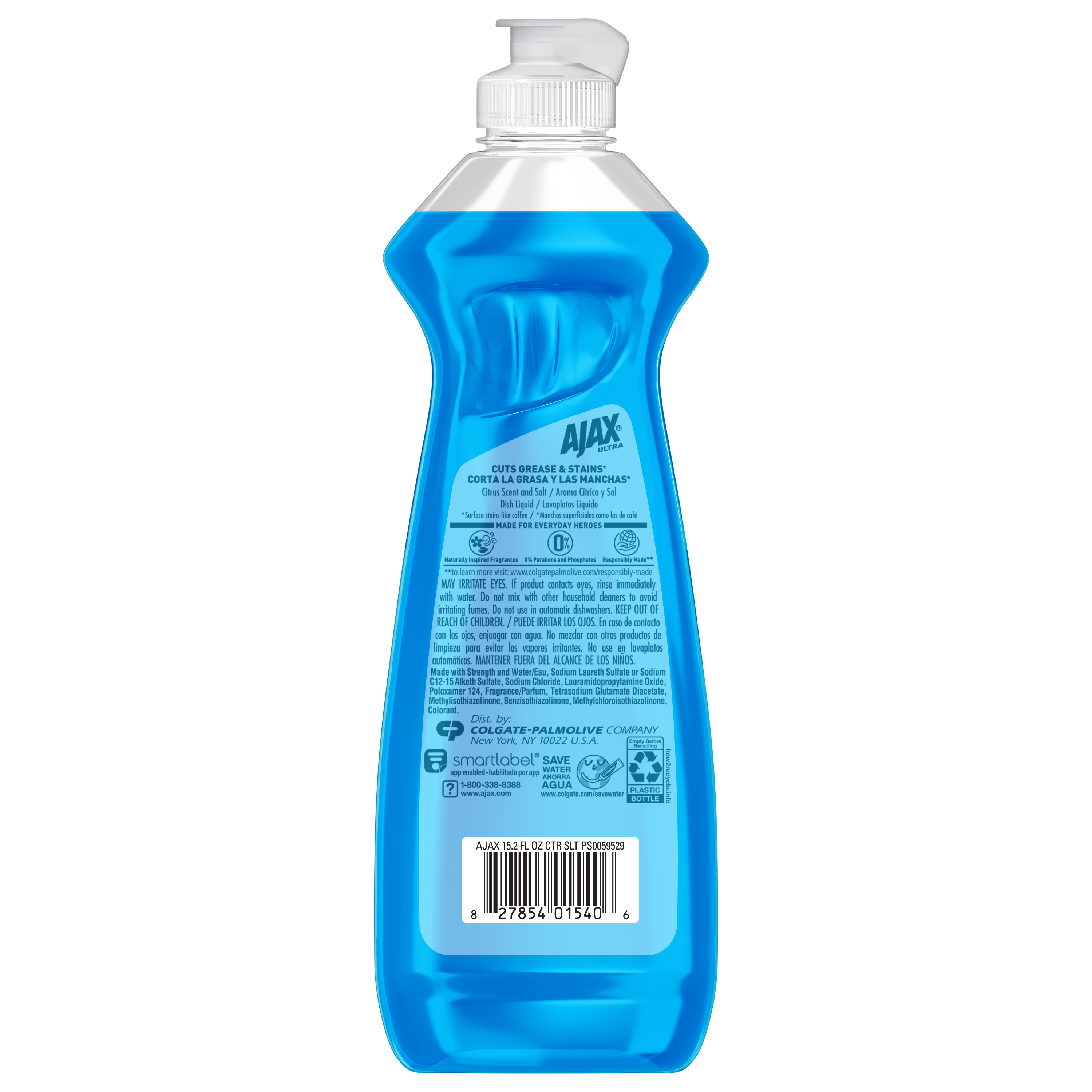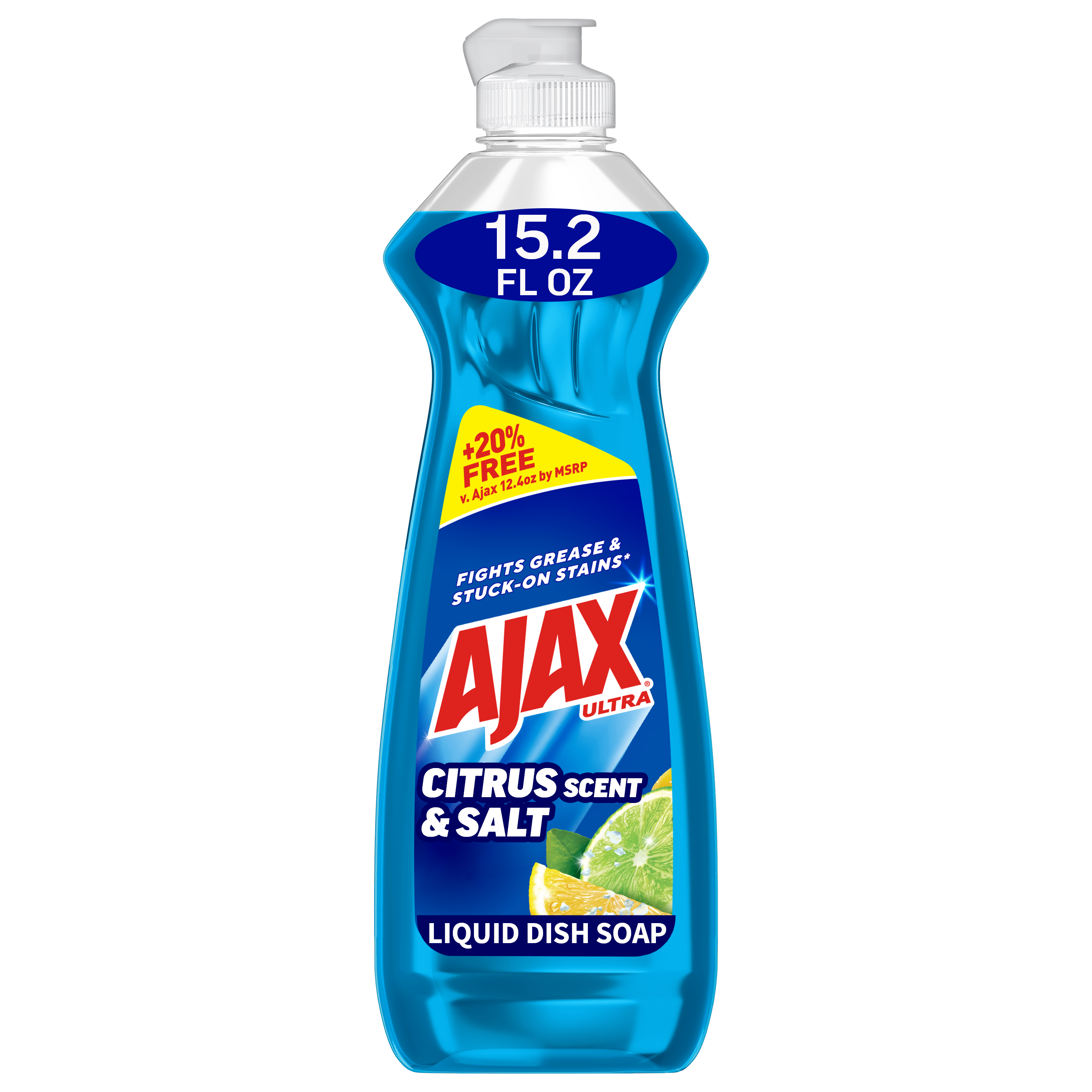 Ajax Ultra Liquid Dish Soap Citrus Scent and Salt, Cuts Grease and Stains, 15.2 oz Bottle