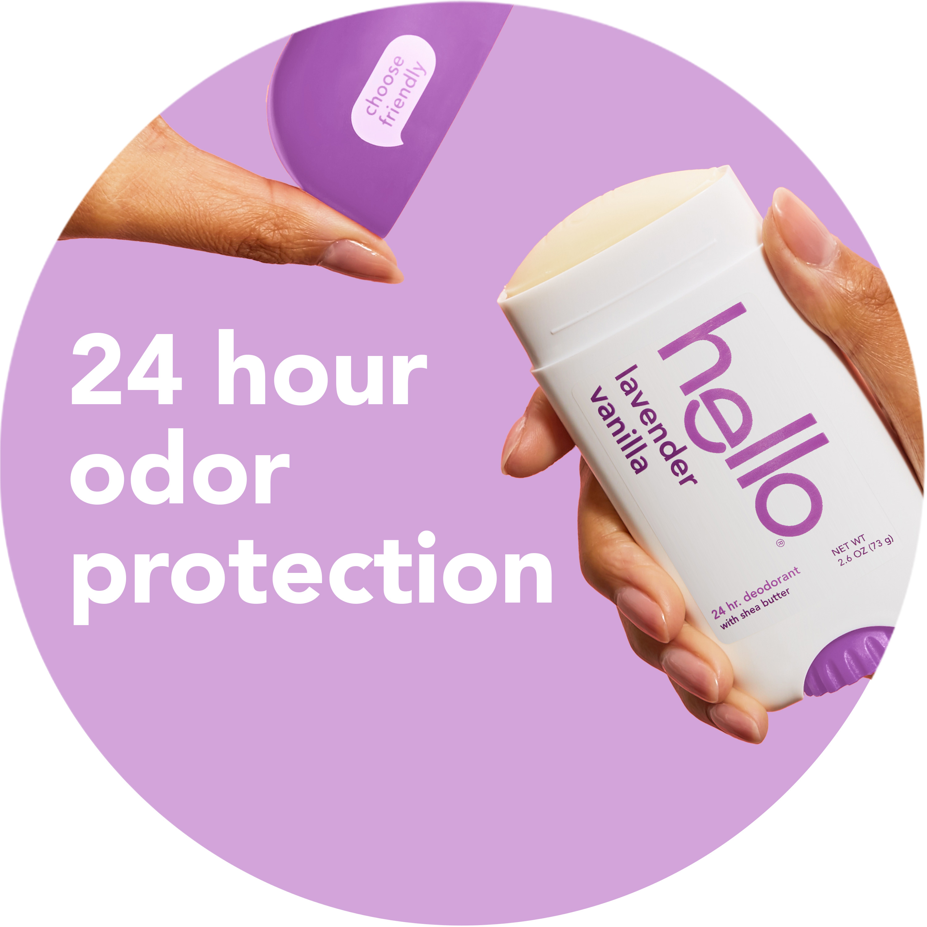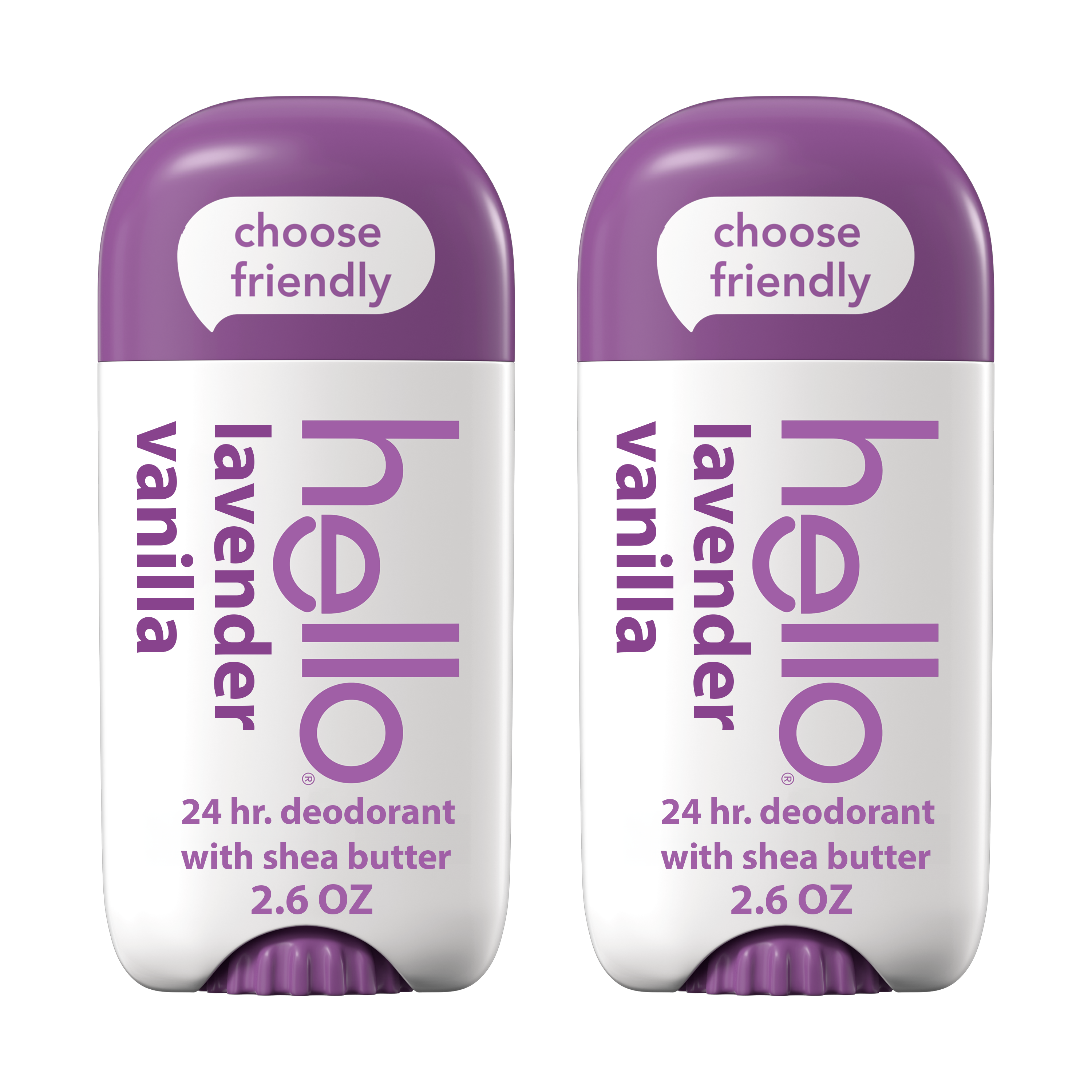 hello Lavender Vanilla Aluminum Free Deodorant for Women and Men with Shea Butter, 24-Hour Freshness, Baking Soda Free Deodorant, Dermatologically Tested, 2.6 oz Stick (2 Pack)