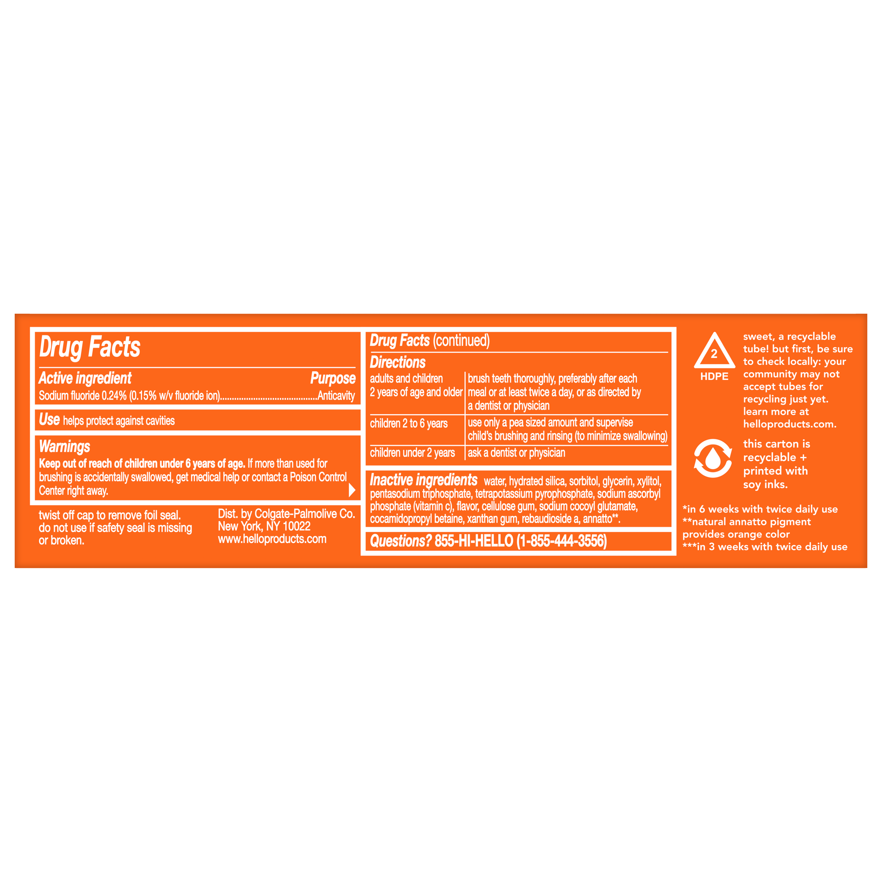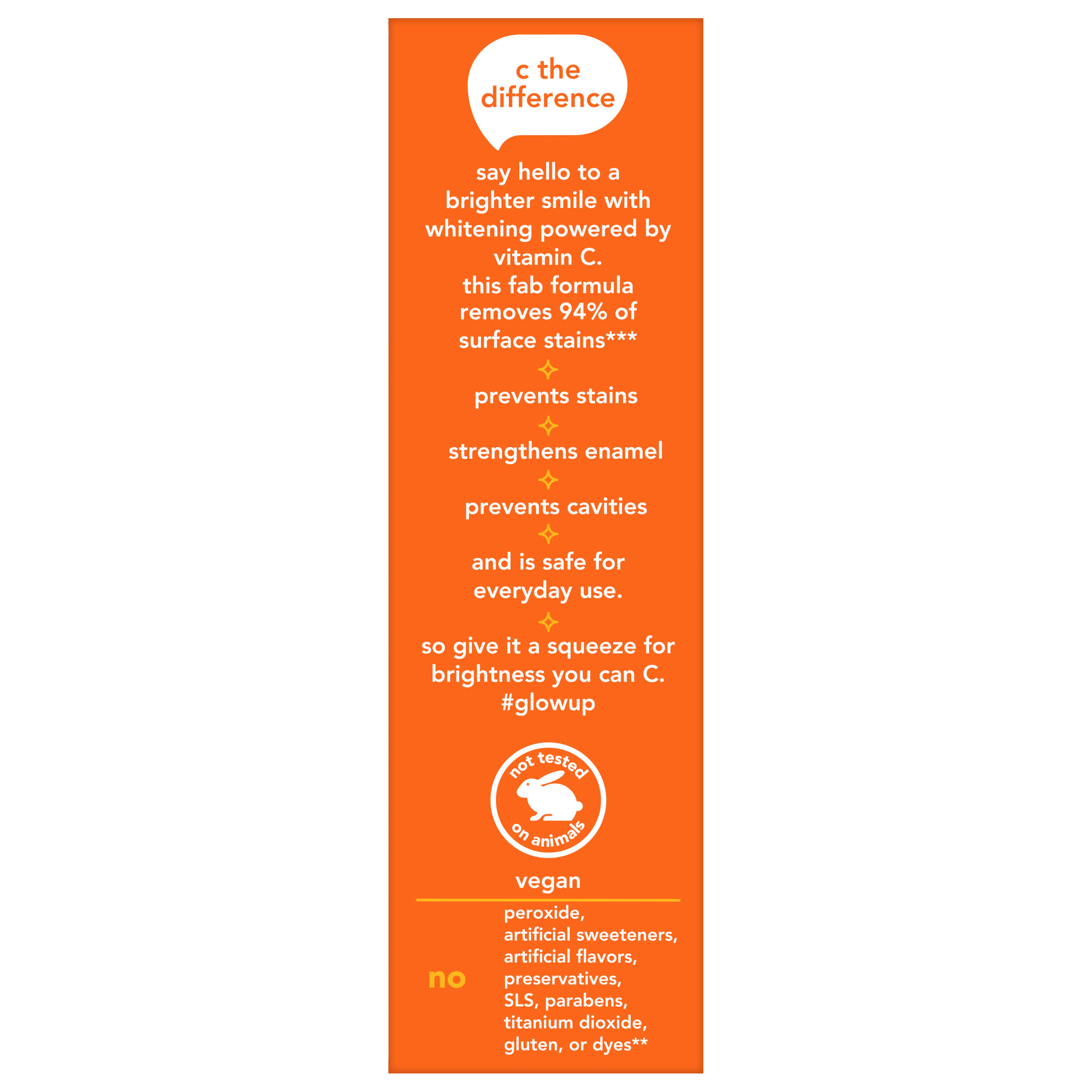 | Bullet 6 | C THE DIFFERENCE: C the sparkle that a whitening toothpaste powered by Vitamin C can do for your smile with hello Vitamin C Whitening Fluoride Toothpaste |