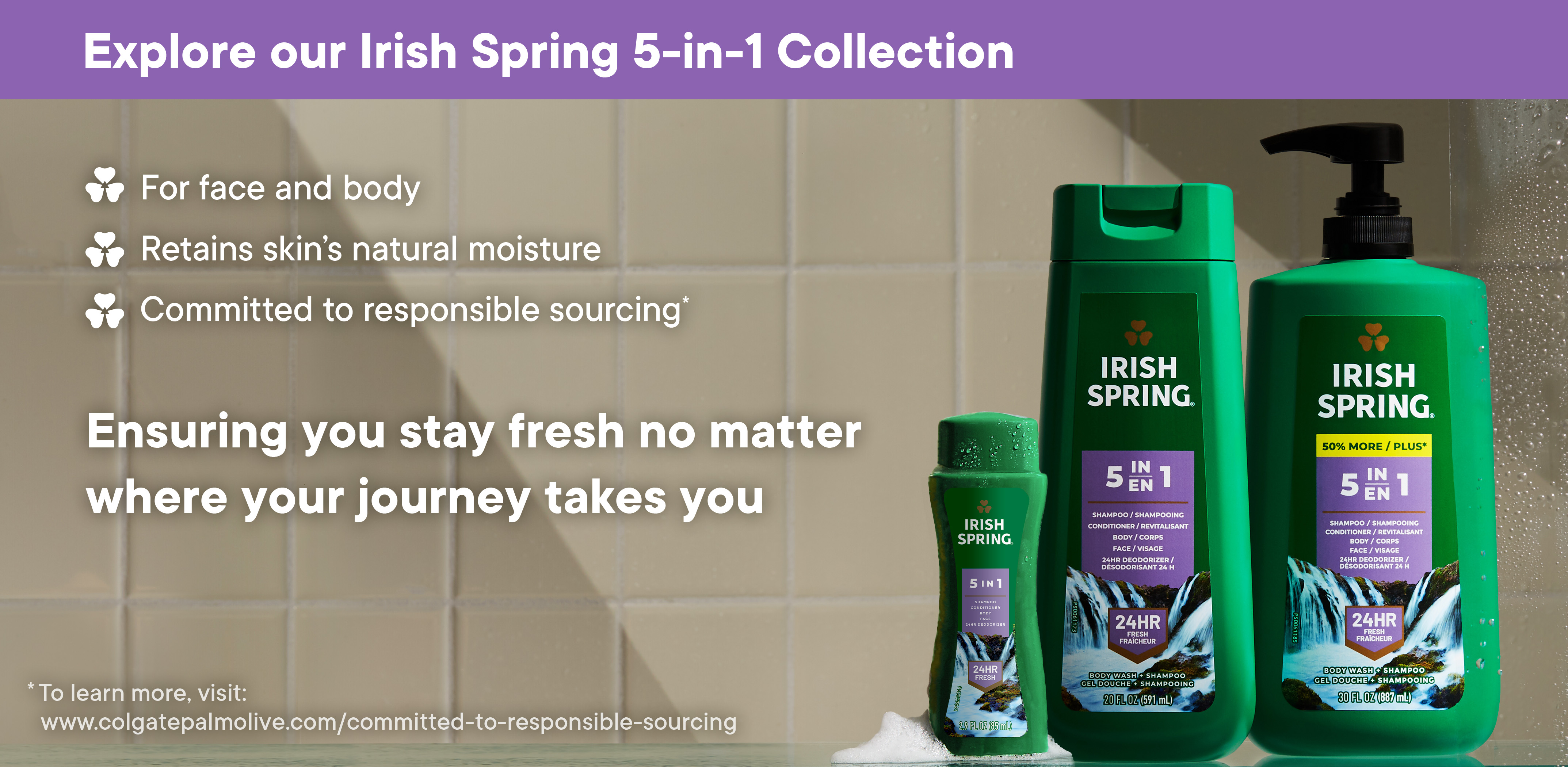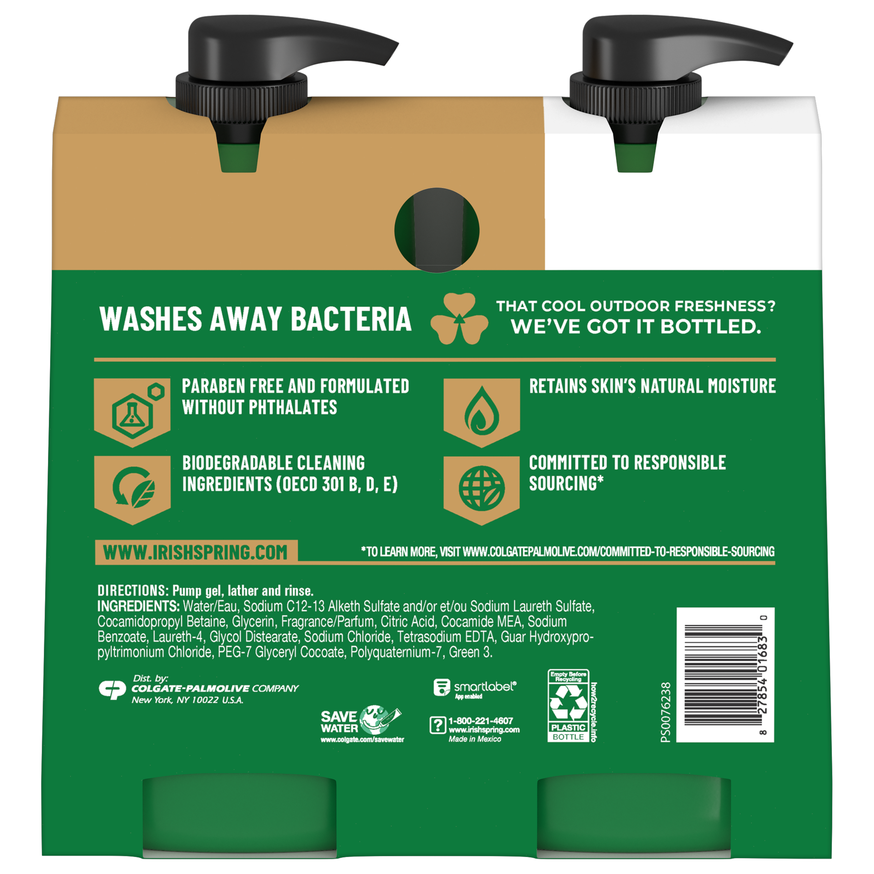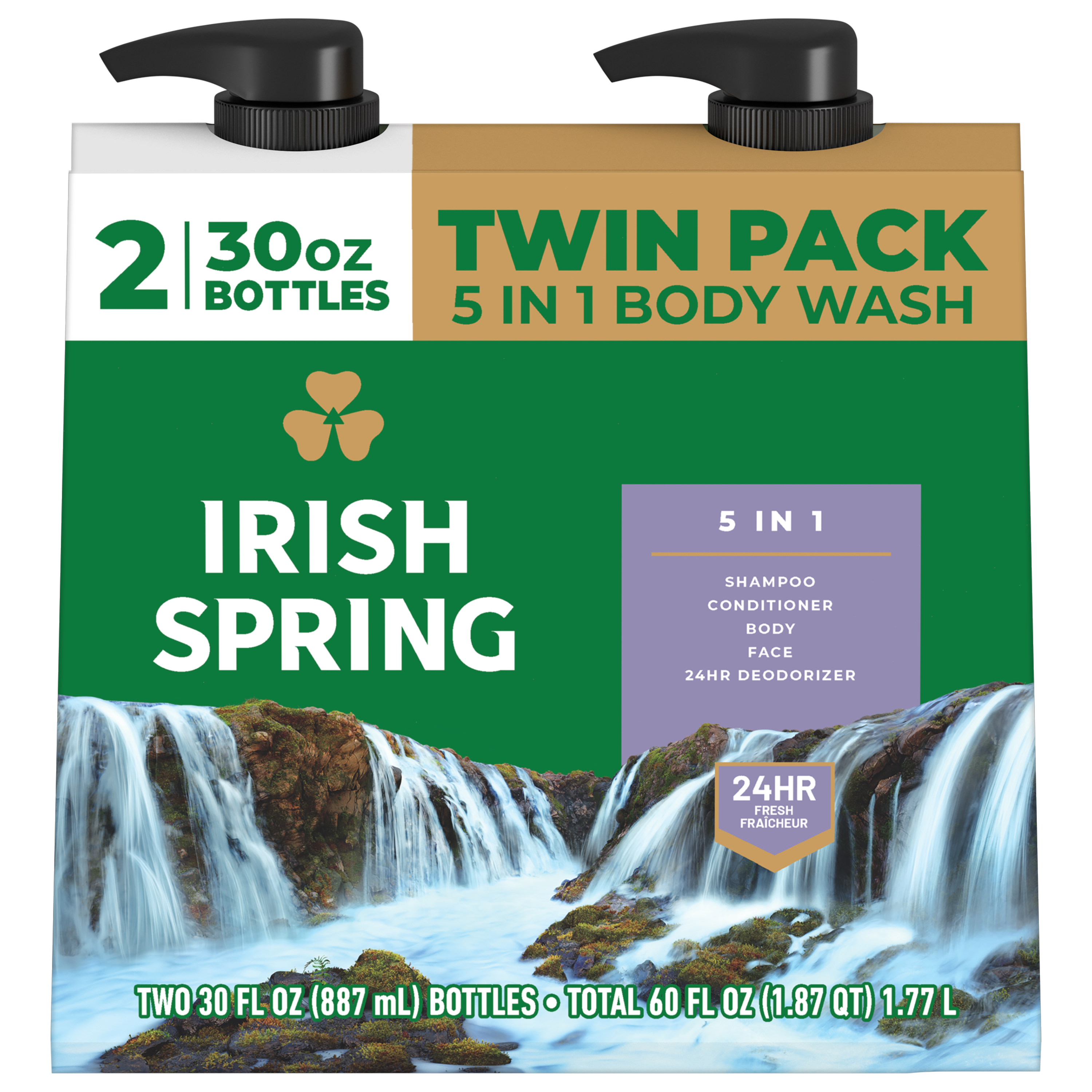 SKU 61044134 Consumer Unit - GTIN 00827854016830 Case - GTIN 10827854016837 Product Category Personal Care Product Sub Category Body Wash Product Equity (Brand) Irish Spring Product Sub Brand Irish Spring BW Product Title Irish Spring 5 in 1 Body Wash for Men, Cool Fresh Scent, 20 fl oz Bottle (2 Pack)