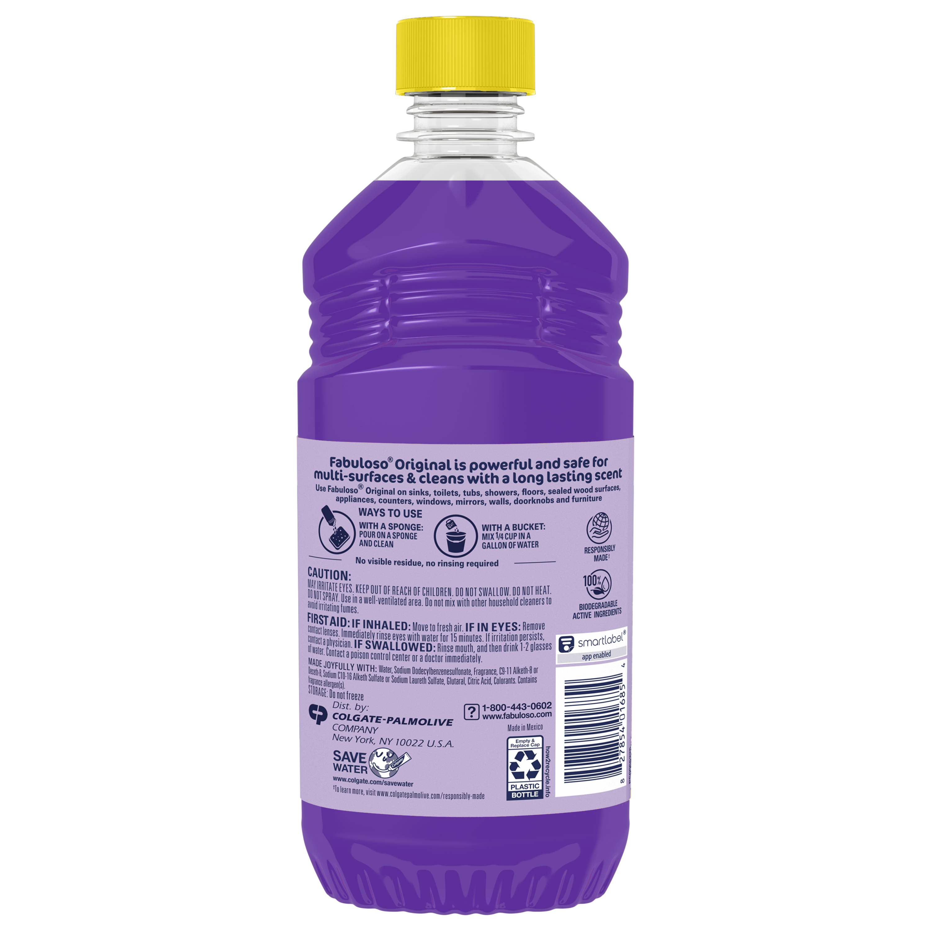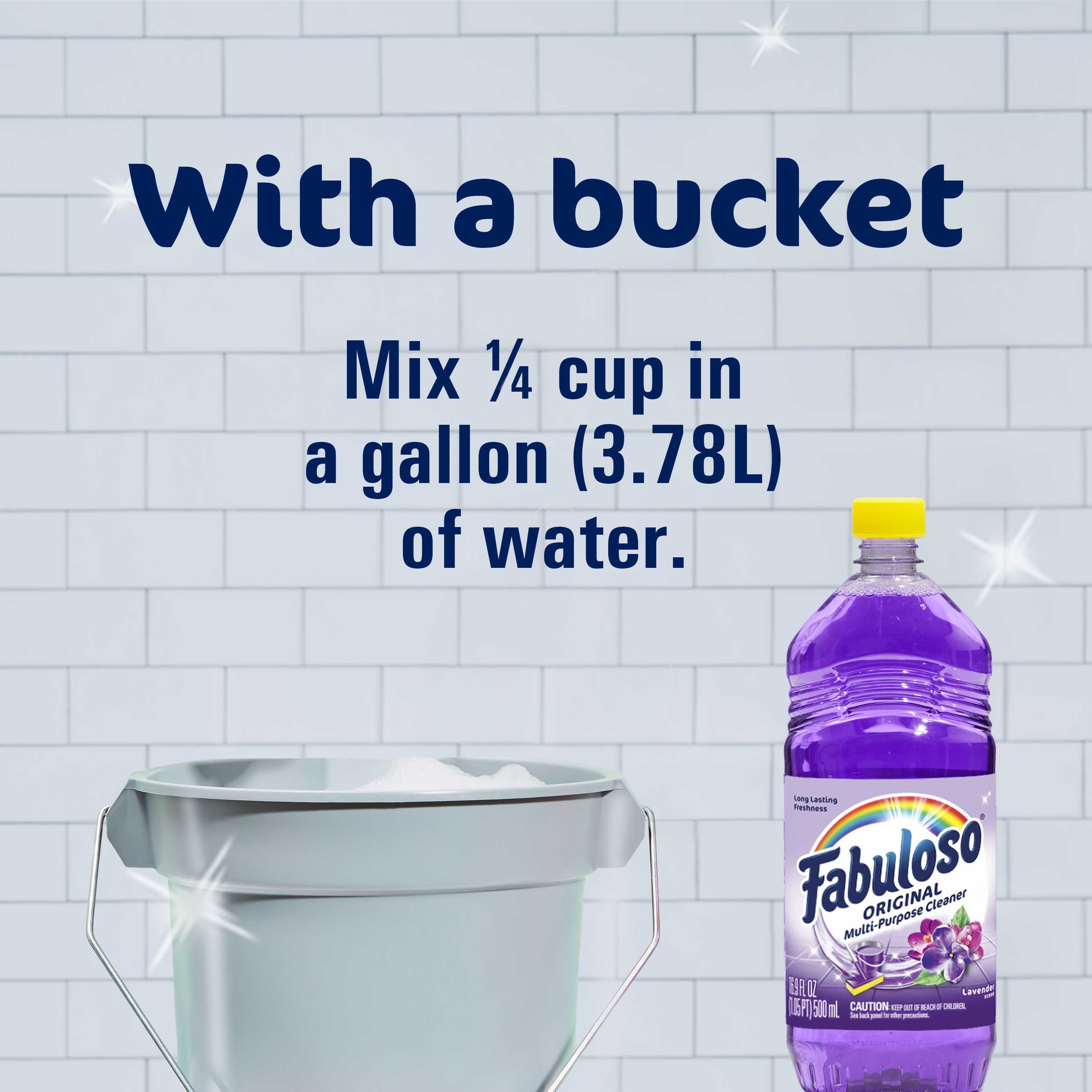 SKU 61044138 Consumer Unit - GTIN 00827854016854 Case - GTIN 10827854016851 Product Category Home Care Product Sub Category Cleaners Liquid / Gel Product Equity (Brand) Fabuloso Product Sub Brand Fabuloso Liq Cln Product Title Fabuloso Original Multi-Purpose Cleaner, Lavender Scent, 16.9 oz Bullet 1 One 16.9 oz bottle Fabuloso Original Multi-Purpose Cleaner, Lavender Scent Bullet 2 Convenient and no rinsing required Bullet 3 Long-lasting lavender scent for a fresh and inviting atmosphere Bullet 4 Versatile usage on sinks, toilets, tubs, showers, floors, and more Bullet 5 Safe for sealed wood surfaces, appliances, counters, and furniture Bullet 6 With a bucket: Mix 1/4 cup in a gallon of water Bullet 7 With a sponge: Pour on a sponge and clean Dollar Tree RPC 393903