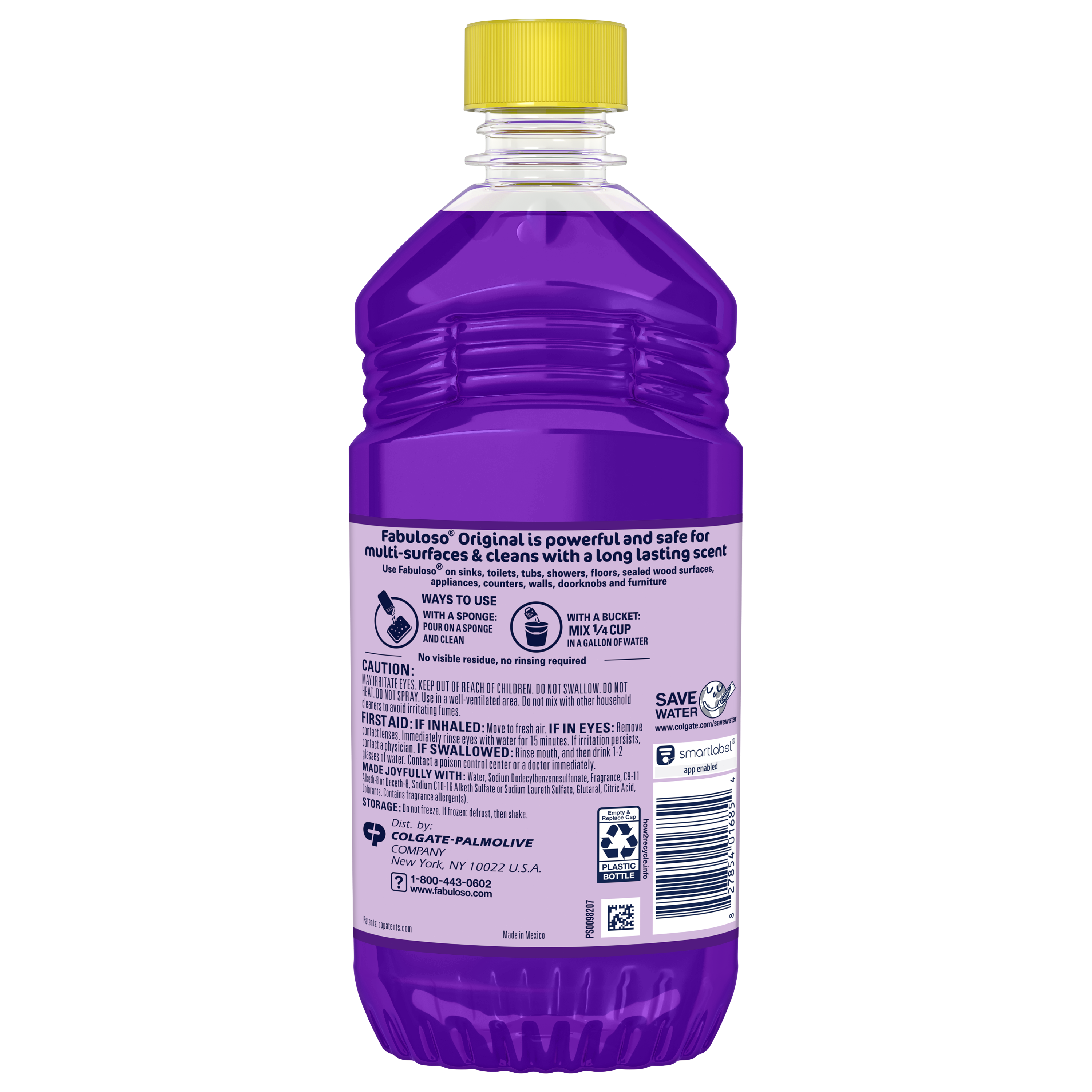 SKU 61044138 Consumer Unit - GTIN 00827854016854 Case - GTIN 10827854016851 Product Category Home Care Product Sub Category Cleaners Liquid / Gel Product Equity (Brand) Fabuloso Product Sub Brand Fabuloso Liq Cln Product Title Fabuloso Original Multi-Purpose Cleaner, Powerful Cleaning, Long-Lasting Freshness, No Rinse Floor Cleaner, Lavender Scent, 16.9 fl oz Product Description Discover the exceptional cleaning power and long-lasting freshness of Fabuloso Original Multi-Purpose Cleaner, infused with a fresh Lavender scent. Fabuloso Original is powerful and safe for multiple surfaces while leaving your home with an inviting, refreshing scent. This versatile cleaner has a sophisticated lavender fragrance featuring citrus and mint notes, complemented by warm amber, sandalwood, and vanilla undertones, creating a luxurious cleaning experience. Fabuloso Original is your one-stop solution for households, working effectively on sinks, toilets, tubs, showers, and floors. It's also safe for use on sealed wood surfaces, appliances, counters, walls, doorknobs, and furniture. Fabuloso Original is ready to use: add 1/4 cup to a bucket of water for mopping, or use undiluted on a sponge for general surface cleaning and spot treatment, giving you flexibility for all your cleaning needs. Keep in a cool, dry place and do not freeze; if the product freezes, simply defrost and shake well before use to restore optimal cleaning performance. Experience the confidence of a powerful, reliable cleaner that transforms your entire home with every use, backed by the trusted Fabuloso brand families have depended on for generations. eCommerce Copy- Long Description Experience the incredible cleaning power of Fabuloso Original Multi-Purpose Cleaner for your household cleaning needs. Fabuloso Original combines powerful cleaning capabilities with a refreshing, long-lasting lavender scent, ensuring that your home is left pristine and fragrant. Say goodbye to visible residue and the hassle of rinsing. Versatility is key, and Fabuloso Original delivers. From sinks and toilets to tubs, showers, and floors, Fabuloso Original is suitable for a wide range of surfaces. It's also safe for use on sealed wood surfaces, appliances, counters, windows, mirrors, walls, doorknobs, and even furniture. With Fabuloso Original, you have one powerful cleaner for your cleaning needs. Whether you prefer using a bucket or a sponge, Fabuloso Original offers flexibility in application. For bucket cleaning, just mix 1/4 cup of Fabuloso Original with a gallon of water, and you're ready to tackle any mess. Alternatively, pour Fabuloso Original directly onto a sponge for convenient and effective spot cleaning. Experience the joy of a clean and fresh home with Fabuloso Original Multi-Purpose Cleaner. Its delightful lavender scent will provide long lasting freshness, creating an inviting and pleasant atmosphere. Make Fabuloso Original a part of your cleaning routine and enjoy the benefits of a versatile, residue-free cleaner that leaves a long-lasting scent. Bullet 1 Includes one 16.9 fl oz bottle of Fabuloso Original Multi-Purpose Cleaner, Lavender Scent Bullet 2 Fabuloso Original delivers exceptional cleaning power on multiple surfaces making rinsing optional for convenient, efficient household cleaning Bullet 3 Infused with sophisticated lavender fragrance featuring citrus and mint notes, complemented by warm amber, sandalwood, and vanilla undertones Bullet 4 Use confidently on sinks, toilets, tubs, showers, floors, sealed wood surfaces, appliances, counters, walls, doorknobs, and furniture Bullet 5 Fabuloso is ready to use: add 1/4 cup to a bucket of water for mopping, or use undiluted on a sponge for general surface cleaning and spot treatment Bullet 6 Keep Fabuloso in a cool, dry place and do not freeze; if the product freezes, simply defrost and shake well before use Bullet 7 Experience the confidence of a powerful, reliable cleaner that transforms your entire home with every use Dollar Tree RPC 393903
