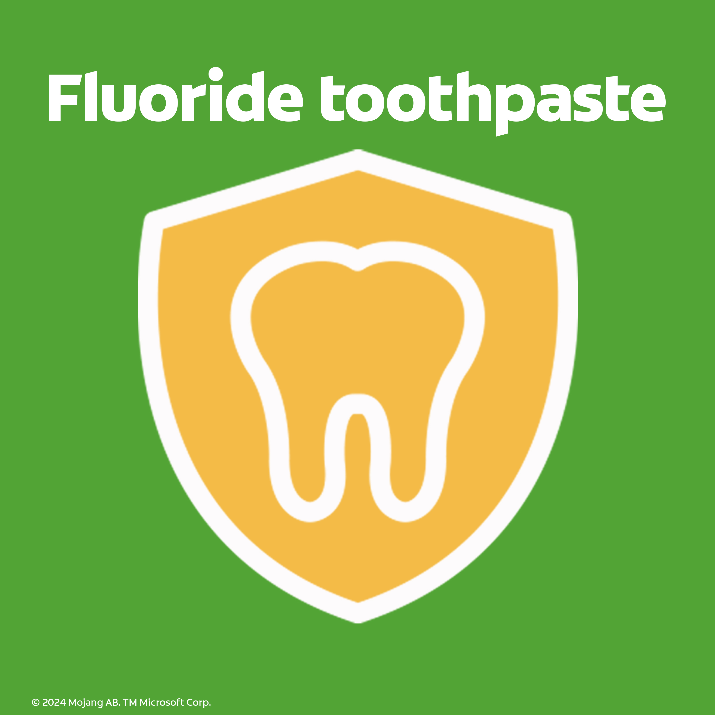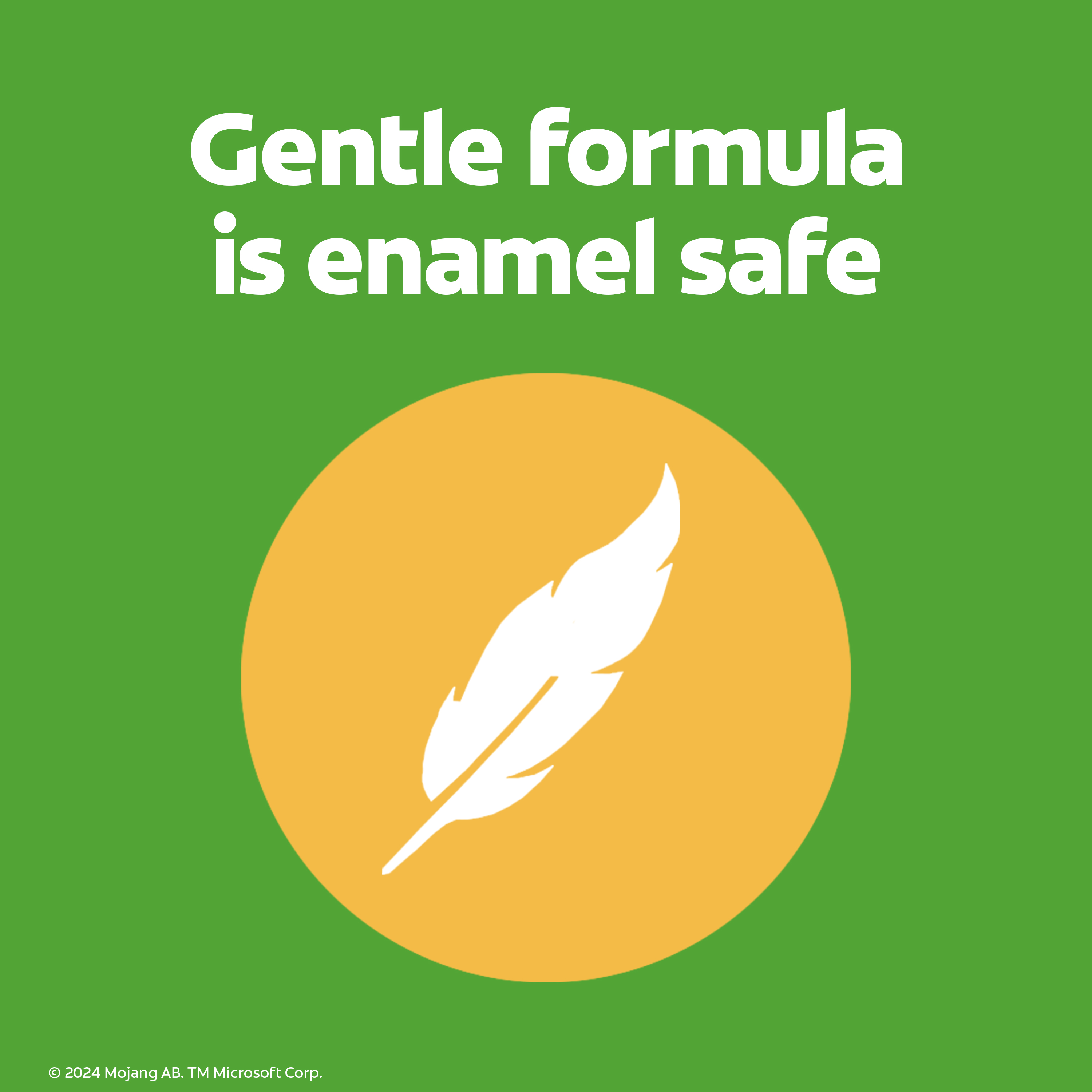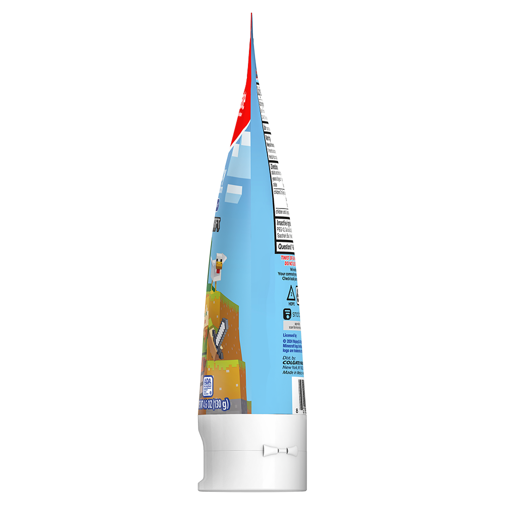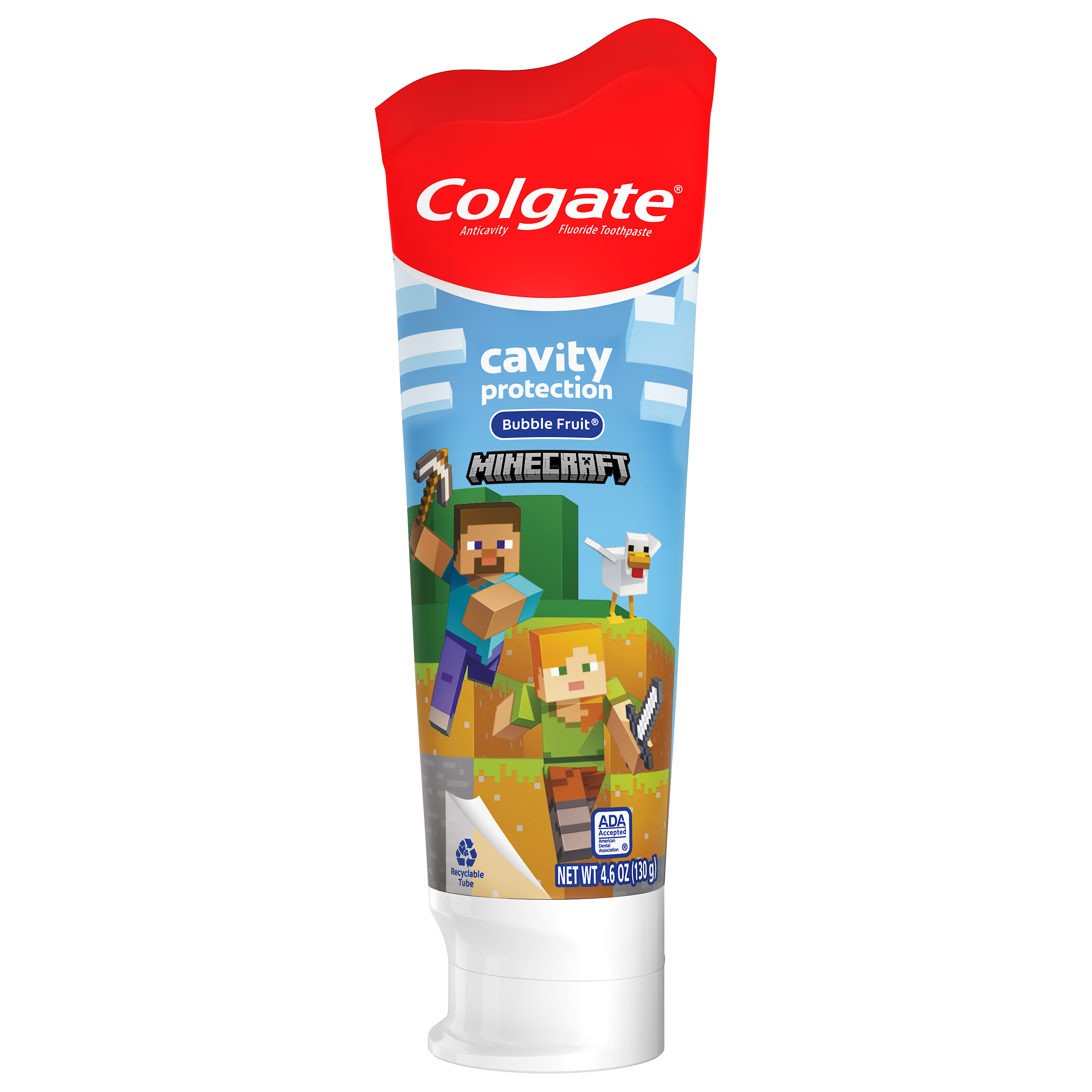 SKU 61044170 Consumer Unit - GTIN 00827854016984 Case - GTIN 10827854016981 Product Category Oral Care Product Sub Category Toothpaste Product Equity (Brand) Colgate Product Sub Brand Colgate Kids TP Product Title Colgate Minecraft Kids Toothpaste with Fluoride, Mild Bubble Fruit Flavor, 4.6 oz Product Description Turn regular brushing time into a fun Minecraft adventure using Colgate Kids Minecraft Toothpaste with Fluoride. Designed for children ages 2 and older, this kids anticavity toothpaste offers a Mild Bubble Fruit bubblegum toothpaste flavor that makes brushing teeth fun. This Minecraft themed childrens toothpaste comes in a stand-up tube with a flip-top cap for easy opening, closing, and storage on the counter. The fluoride kids toothpaste offers cavity protection and is an ADA accepted toothpaste for kids. This Colgate kids toothpaste contains fluoride, a clinically proven ingredient that fights cavities and provides cavity protection for developing teeth. In addition to fighting cavities, this kids fluoride toothpaste also helps strengthen teeth and is gentle on kids’ tooth enamel. Plus, parents will appreciate this kids cavity protection toothpaste is sugar free, gluten free, paraben free, and vegan. Make brushing feel like an awesome Minecraft adventure with the Colgate Minecraft Kids Toothpaste with Fluoride. This kids fluoride toothpaste is ideal for parents who want an effective anticavity toothpaste for their young kids or toddlers. Help build healthy oral care habits with Colgate Minecraft Kids Toothpaste with Fluoride. eCommerce Copy- Long Description Fun Flavored Toothpaste Loved by Kids When it comes to dental care, encouraging children to start brushing early and regularly is important. As their oral health care needs are evolving, Colgate Kids Toothpaste with Fluoride, Anticavity & Cavity Protection Toothpaste, For Ages 2+, Minecraft, Mild Bubble Fruit Flavor made especially for kids 2 and up offers an enamel safe children’s toothpaste formula that works on developing teeth. This kids anticavity toothpaste offers cavity and enamel protection, convenient tube packaging and a fun flavor making brushing enjoyable for a lifetime of bright smiles. Furthermore, the ADA Council of Scientistic Affairs' Acceptance of Colgate for Kids toothpaste is based on its finding that the product is effective in helping to prevent and reduce tooth decay, when used as directed. Healthy Smiles With Colgate At Colgate, we make toothpaste that promotes healthy smiles. Not only because having a healthy smile is important to your overall health, but because when you have a healthy smile, you actually smile more – and that’s a powerful thing. Smiles are the simplest form of optimism, something we need now more than ever. That’s why we’re committed to raising oral healthcare standards everywhere. Bullet 1 Includes one (1) 4.6 oz tube of Colgate Minecraft Kids Toothpaste with Fluoride in an exciting Mild Bubble Fruit bubblegum toothpaste flavor Bullet 2 This fluoride toothpaste for kids is clinically proven to fight against cavities and help strengthen teeth Bullet 3 You can use this fluoride-formulated Minecraft toothpaste for children ages 2 and up Bullet 4 The Mild Bubble Fruit flavor delivers a bubblegum toothpaste flavor that kids love and encourages healthy oral care habits Bullet 5 This kids anticavity toothpaste is gluten free, sugar free, paraben free, and vegan Bullet 6 The childrens toothpaste comes in a stand-up tube with a flip-top cap for easy opening, closing, and storage on the counter Bullet 7 Colgate Minecraft Fluoride Kids Toothpaste is an ADA accepted toothpaste that is gentle on kids’ tooth enamel Active Ingredients Sodium Fluoride 0.24 % (0.15% w/v fluoride ion) Amazon RPC B0DHW556F9 AMZ URL https://www.amazon.com/dp/B0DHW556F9 Walmart RPC 9026752813 Walmart URL (Computed) https://www.walmart.com/ip/a/9026752813
