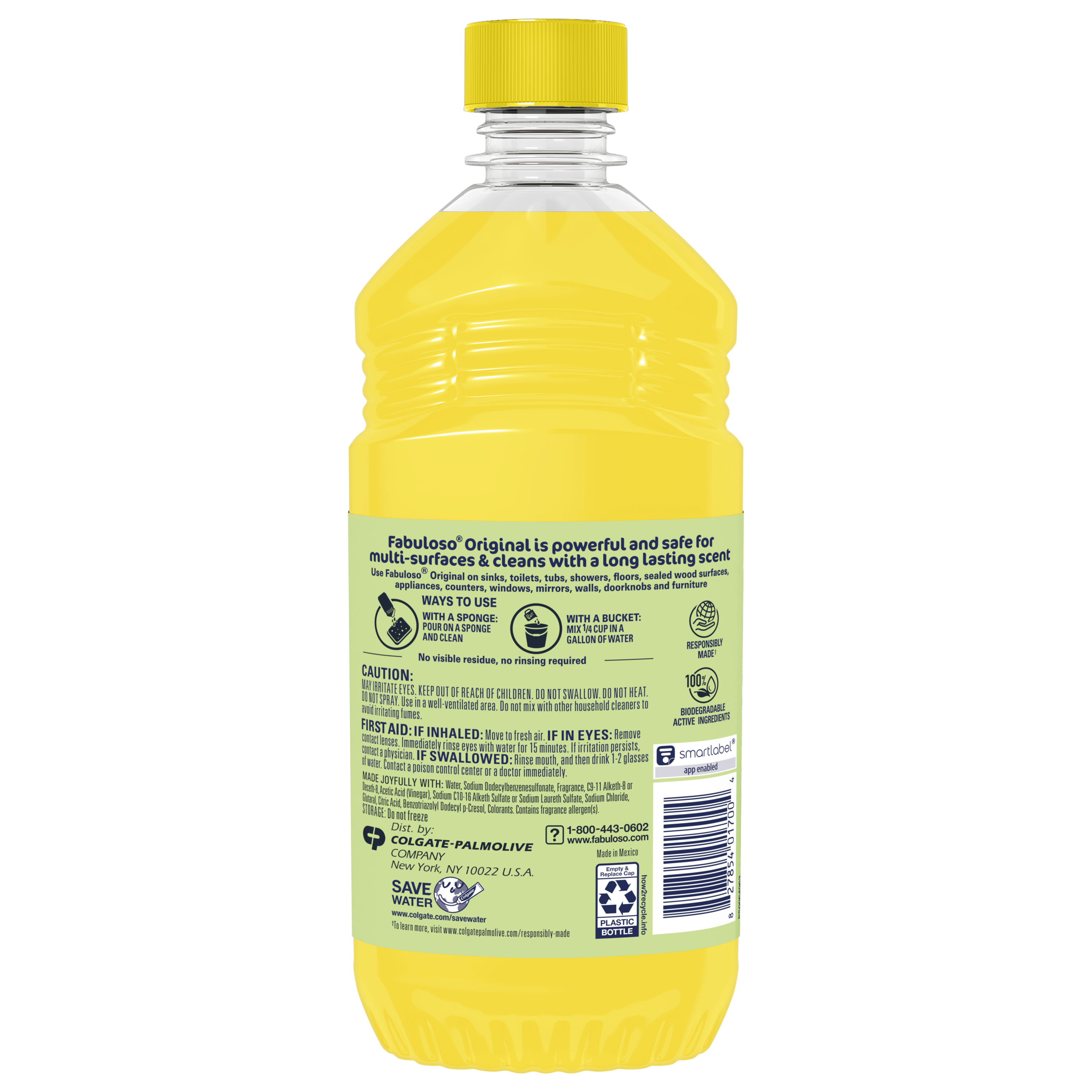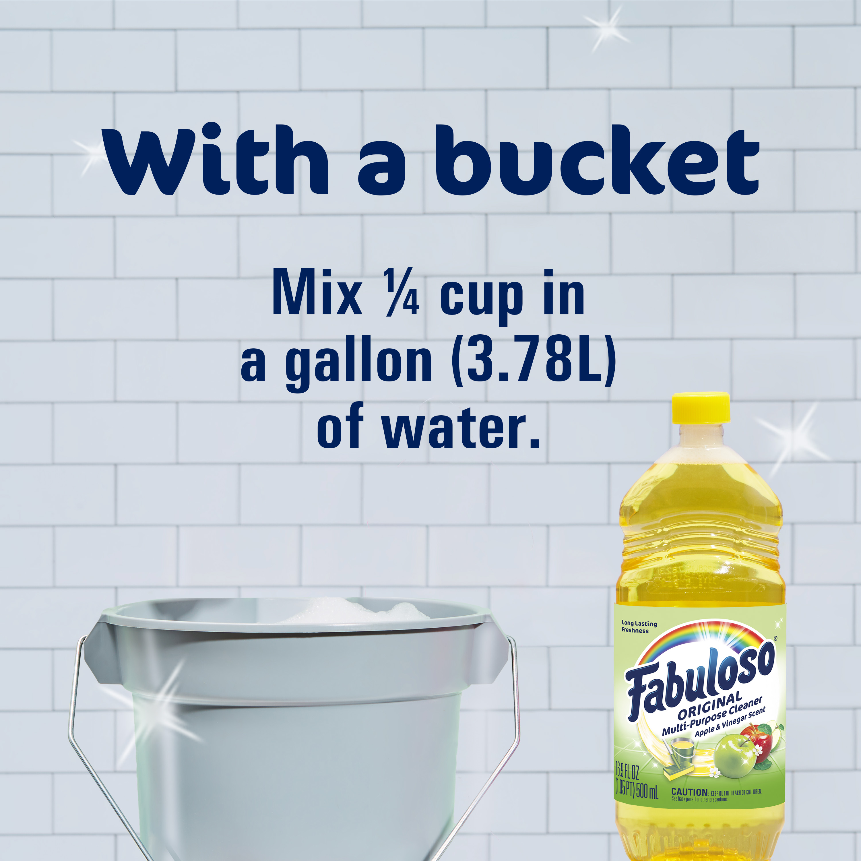 SKU 61044213 Consumer Unit - GTIN 00827854017004 Case - GTIN 10827854017001 Product Category Home Care Product Sub Category Cleaners Liquid / Gel Product Equity (Brand) Fabuloso Product Sub Brand Fabuloso Liq Cln Product Title Fabuloso Original Multi-Purpose Cleaner, Apple Vinegar, 16.9 oz Bullet 1 Fabuloso Original: Multi-purpose cleaner with no visible residue Bullet 2 Convenient and no rinsing required Bullet 3 Long-lasting scent for a fresh and inviting atmosphere Bullet 4 Versatile usage on sinks, toilets, tubs, showers, floors, and more Bullet 5 Safe for sealed wood surfaces, appliances, counters, and furniture Bullet 6 With a bucket: Mix 1/4 cup in a gallon of water Bullet 7 With a sponge: Pour on a sponge and clean Dollar Tree RPC 393896