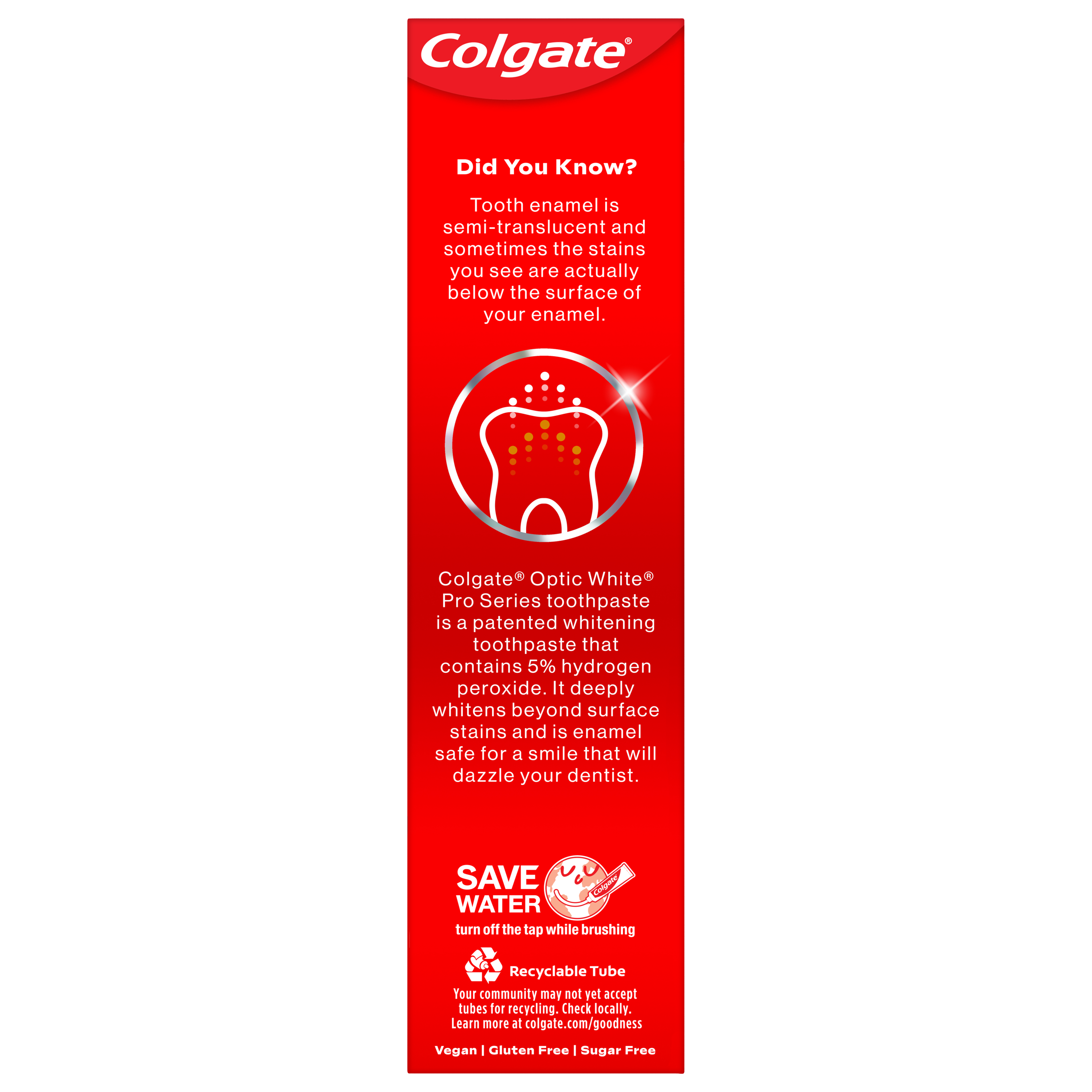 | Bullet 2 | Experience visibly whiter teeth in 3 days* with Colgate Optic White Pro Series Toothpaste (*when used as directed) |