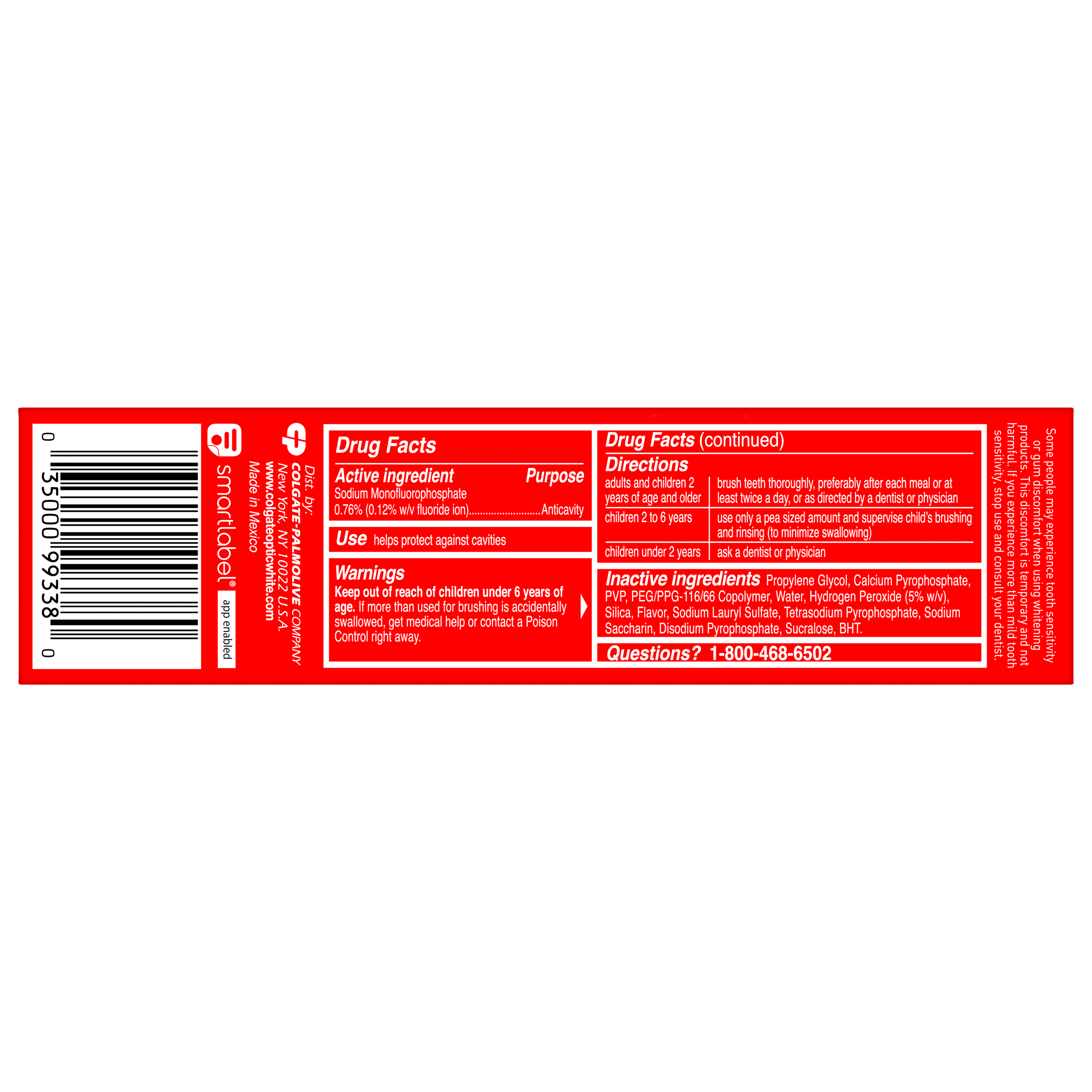 | Bullet 6 | Colgate Optic White Pro Series Hydrogen Peroxide Toothpaste is an anticavity toothpaste made with fluoride to help fight cavities |