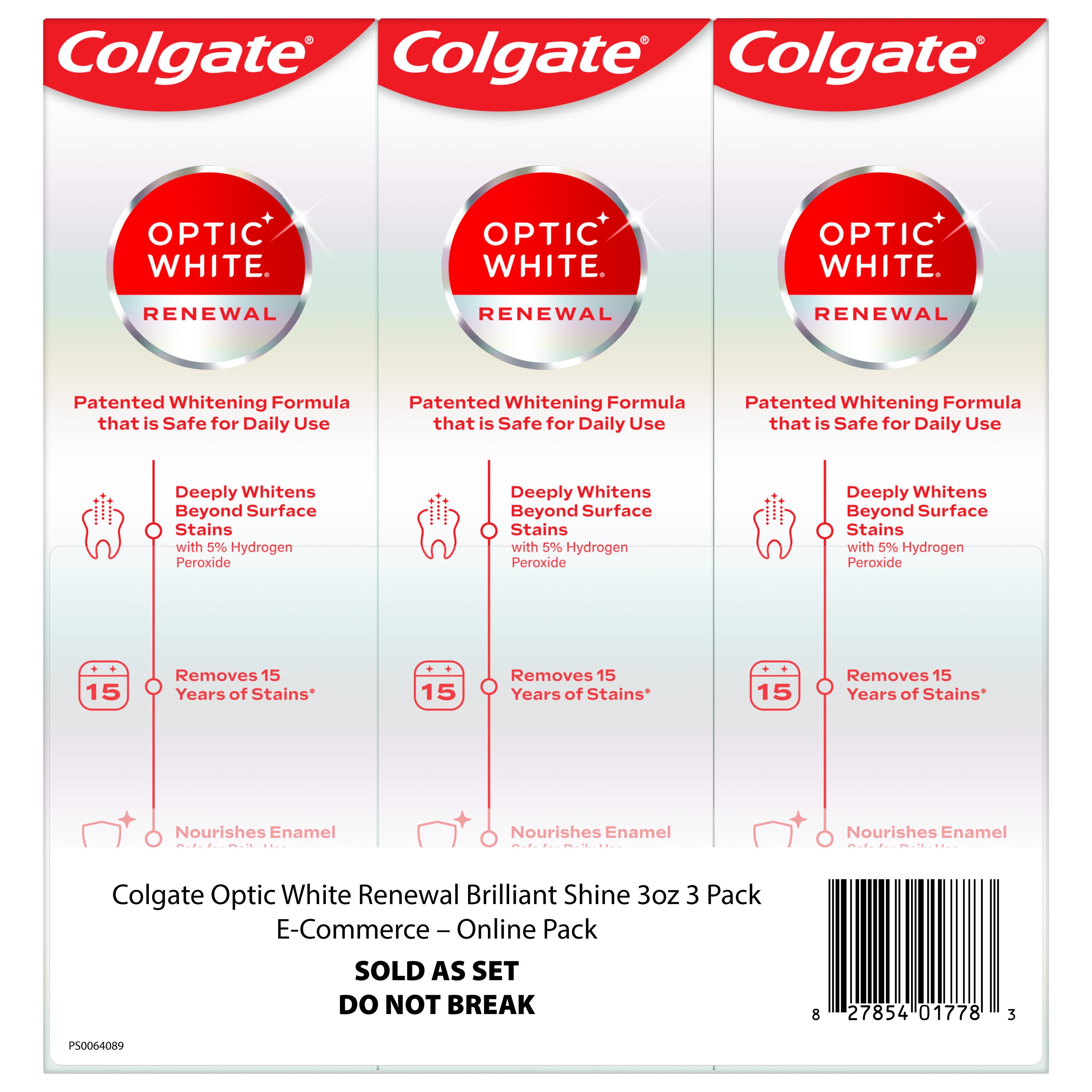 | Bullet 1 | Includes three (3) 3.0 oz tubes of Colgate Optic White Renewal Brilliant Shine Toothpaste, Teeth Whitening Toothpaste |