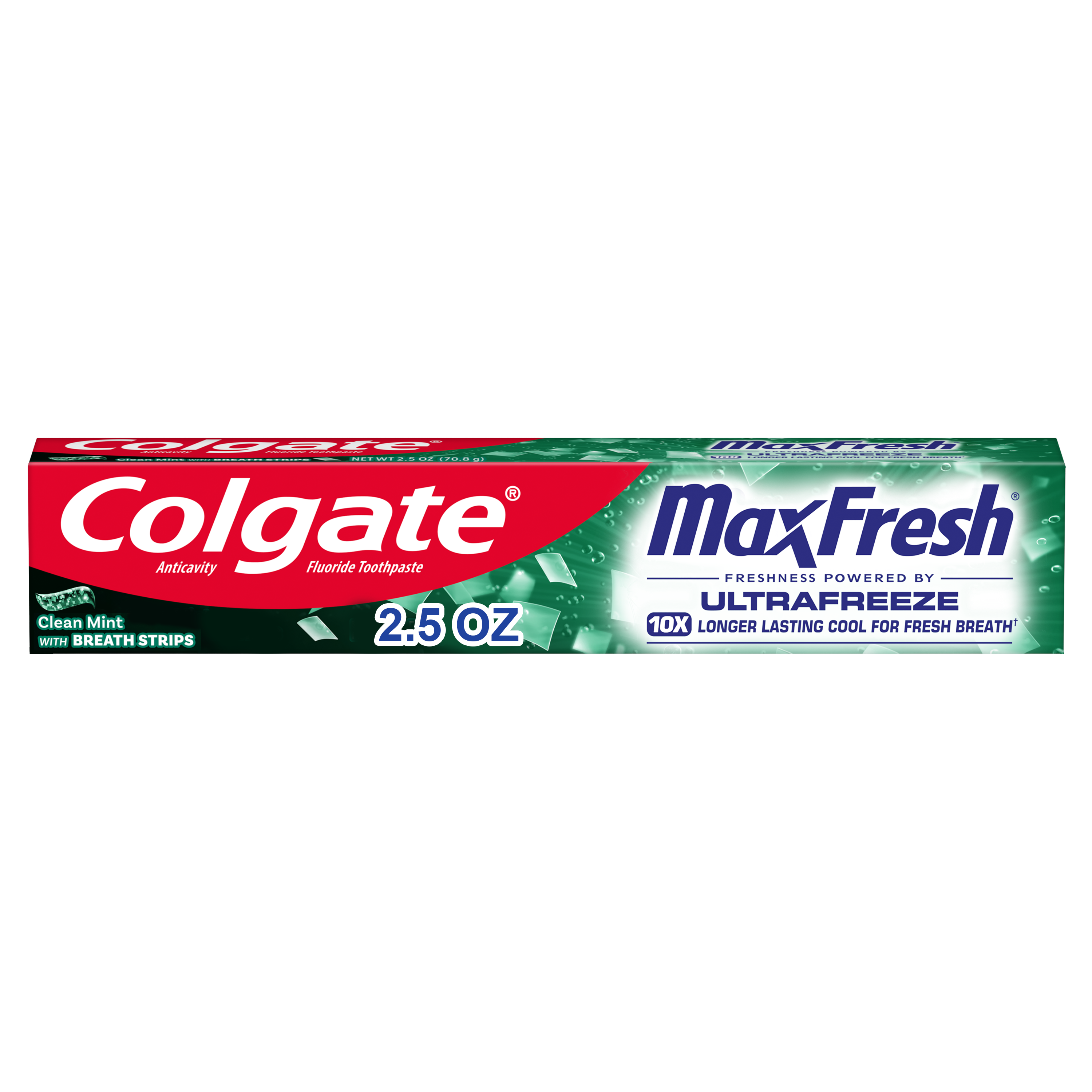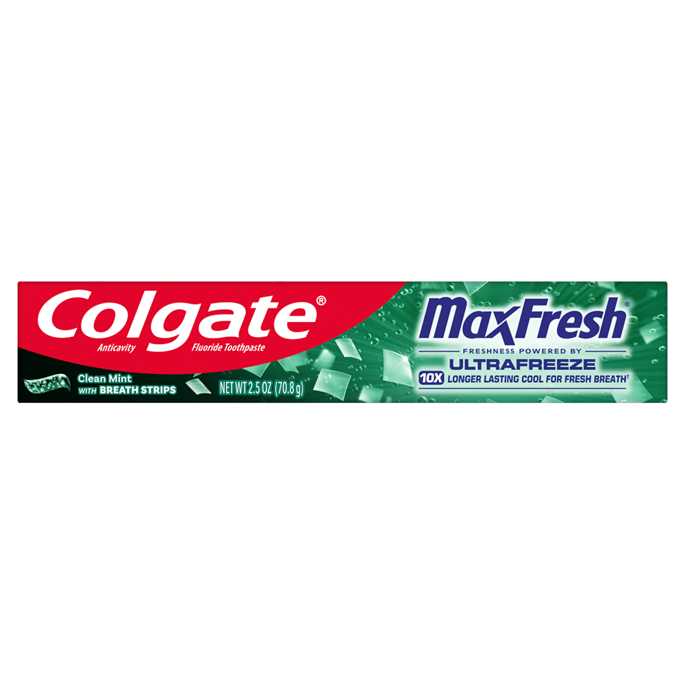 SKU 61044741 Consumer Unit - GTIN 00827854017899 Case - GTIN 10827854017896 Product Category Oral Care Product Sub Category Toothpaste Product Equity (Brand) Colgate Product Sub Brand Colgate Max Fresh TP Product Title Colgate MaxFresh Clean Mint Toothpaste, 6.3 oz Product Description Release an instant blast of freshness while you’re on the go with Colgate MaxFresh Clean Mint Toothpaste. Powered by Ultrafreeze, this invigorating travel-size spearmint toothpaste offers 10X longer-lasting cool for fresh breath*. This minty travel toothpaste, with the help of Ultrafreeze and hundreds of mini breath strips, unleashes a powerful rush of freshness for long-lasting fresh breath. In addition, this Colgate MaxFresh mini toothpaste comes in a refreshing Clean Mint flavor that invigorates the brushing experience. However, it’s more than just a travel size toothpaste for bad breath, Colgate MaxFresh Clean Mint Toothpaste is also a fluoride toothpaste and helps prevent cavities. With its refreshing Clean Mint flavor and hundreds of mini breath strips, Colgate MaxFresh Travel Toothpaste leaves your breath feeling fresh for hours. Plus, the fluoride-based formula helps fight cavities. Get long-lasting fresh breath with Colgate MaxFresh Clean Mint Toothpaste.*vs. a regular Colgate fluoride toothpaste eCommerce Copy- Long Description Release an instant blast of freshness with Colgate® Max Fresh Clean Mint Toothpaste. Powered by Ultrafreeze, this invigorating Spearmint toothpaste offers 10X longer-lasting cool for fresh breath*. This mint toothpaste, with the help of Ultrafreeze and hundreds of breath strips, releases a powerful rush of freshness for long-lasting fresh breath. Colgate® Max Fresh Toothpaste comes in a refreshing Clean Mint flavor that invigorates the brushing experience. However, it’s more than just a toothpaste for bad breath, Colgate® Max Fresh Clean Mint Toothpaste is also a fluoride toothpaste and helps prevent cavities. With its refreshing Clean Mint flavor and hundreds of breath strips, Colgate® Max Fresh Toothpaste leaves your breath feeling fresh for hours. *vs. a regular Colgate® fluoride toothpaste Bullet 1 Includes one (1) 6.3 oz tube of Colgate MaxFresh Clean Mint Toothpaste Bullet 2 Powered by Ultrafreeze, Colgate MaxFresh Toothpaste offers 10X longer-lasting cool for fresh breath* Bullet 3 Fluoride toothpaste formula helps fight cavities Bullet 4 This spearmint toothpaste, with hundreds of mini breath strips, unleashes a powerful rush of freshness for long-lasting fresh breath Bullet 5 Release an instant blast of freshness with Colgate MaxFresh Clean Mint Toothpaste Dollar Tree RPC 394752