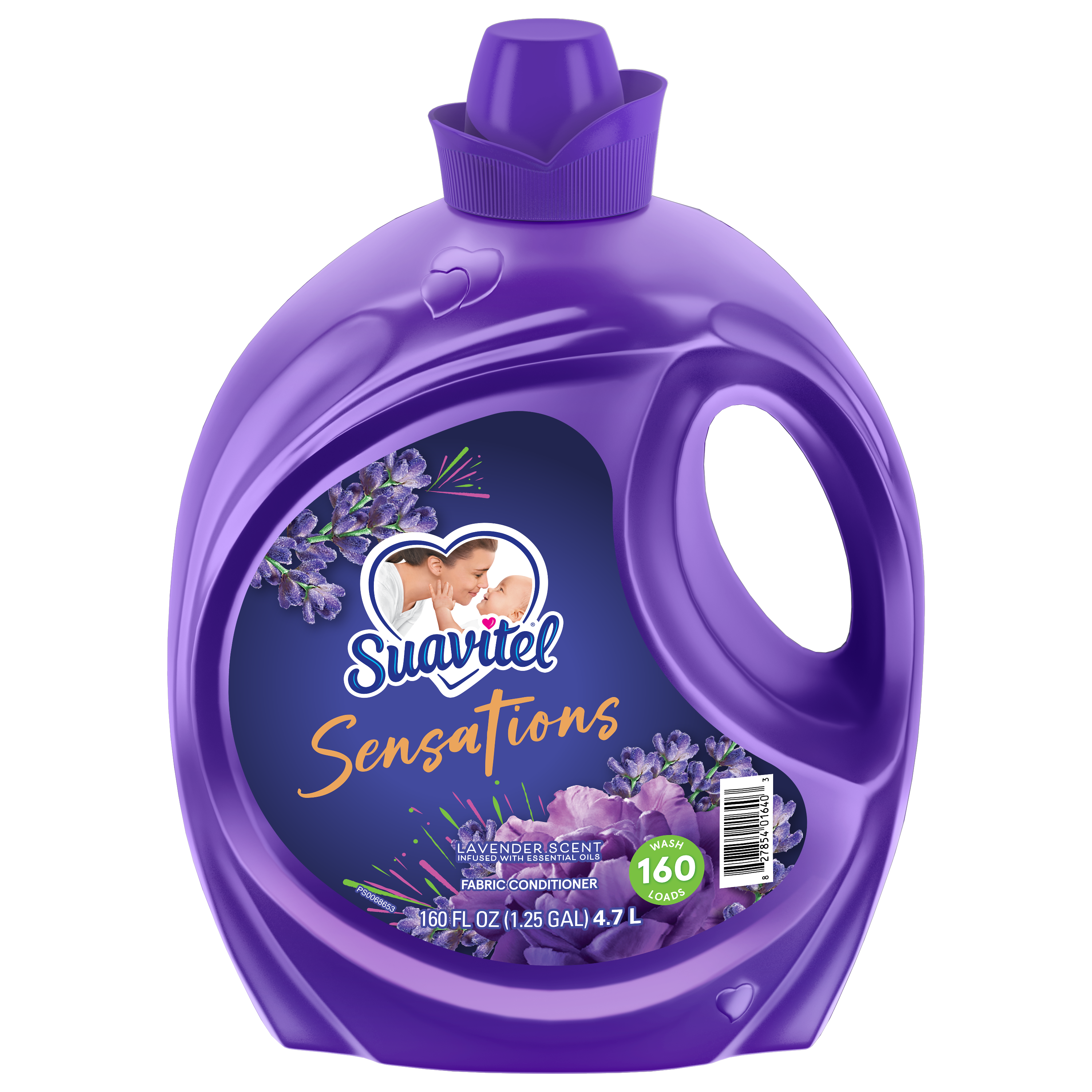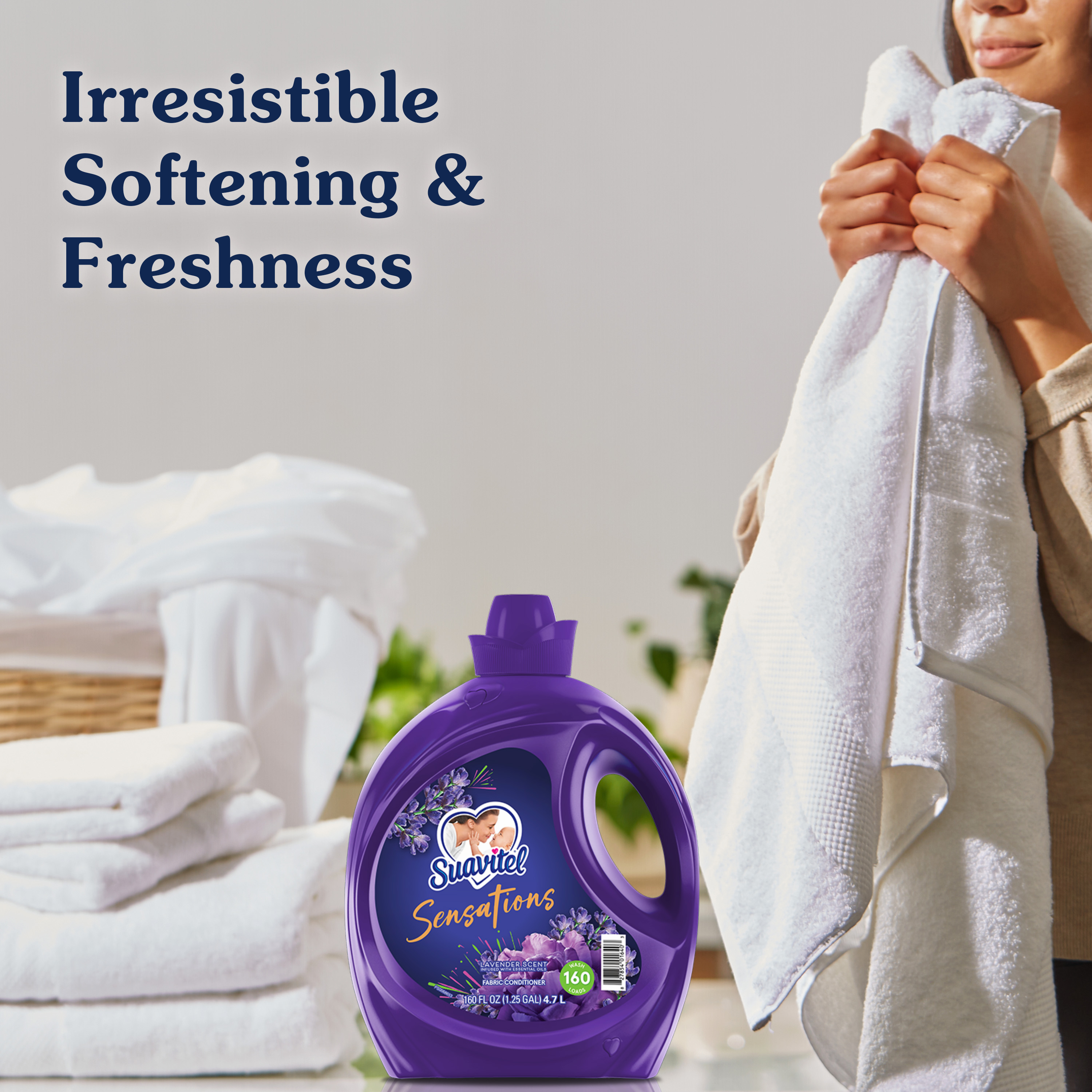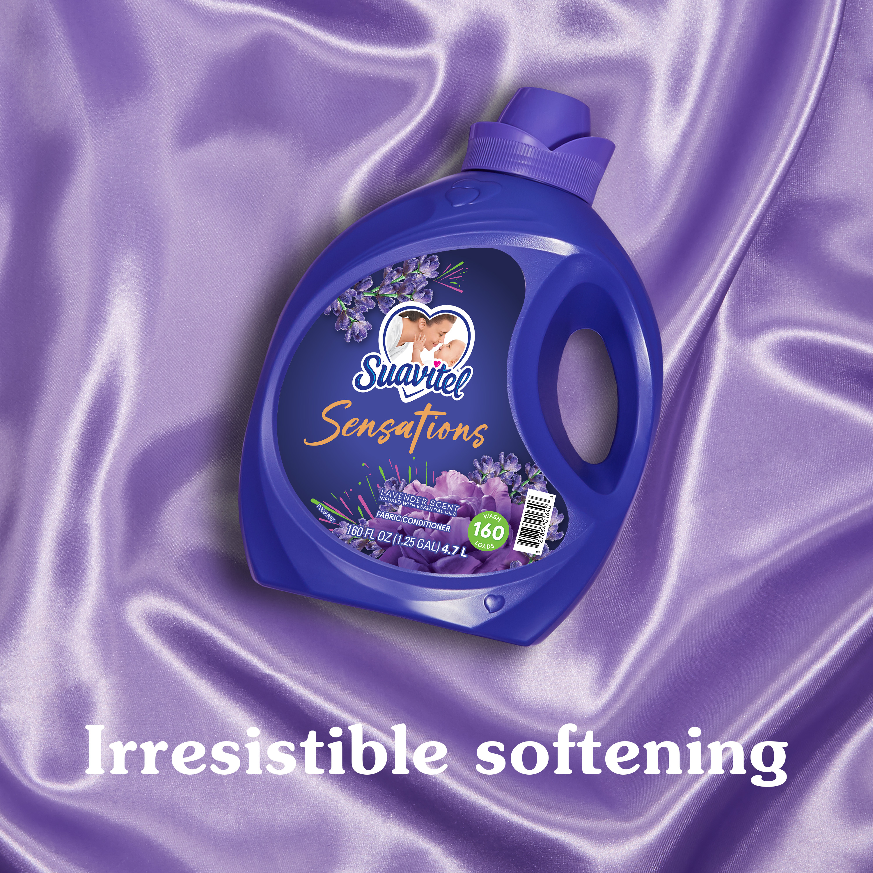 SKU 61044819 Consumer Unit - GTIN 00827854016403 Product Category Home Care Product Sub Category FC Liquids Product Equity (Brand) Suavitel Product Sub Brand Suavitel Liq FC Product Title Suavitel Sensations Lavender Fabric Softener - 160oz eCommerce Copy- Long Description Experience the irresistible softening power of Suavitel Sensations Liquid Fabric Conditioner, enriched with a captivating Lavender scent with essential oils. Each bottle is designed to elevate your fabric care routine, merging irresistible softening and freshness with each wash. This liquid fabric softener not only ensures your clothes and linens emerge supremely soft but also imbues them with long lasting freshness that endures well beyond the laundry room. Ideal for up to 160 wash loads*, our unique formula keeps each load feeling fresh and smelling delightful. Embrace the sensory delight of Suavitel Sensations and allow the long lasting freshness to transform your daily routine into an expression of love for your wardrobe, making every wash a testament to the quality and care you expect. Indulge in the luxury of softness and scent that lingers, making every piece of fabric feel cherished and refreshed. Whether you're freshening up your everyday wear, bed linens, or special garments, this fabric conditioner provides a touch of luxury with every cycle, ensuring your textiles maintain their texture and color vibrancy. Trust in Suavitel to deliver exceptional fabric care, leaving your laundry not only softer but also wonderfully infused with the essence of nature. *1 wash load = 1 fl. oz