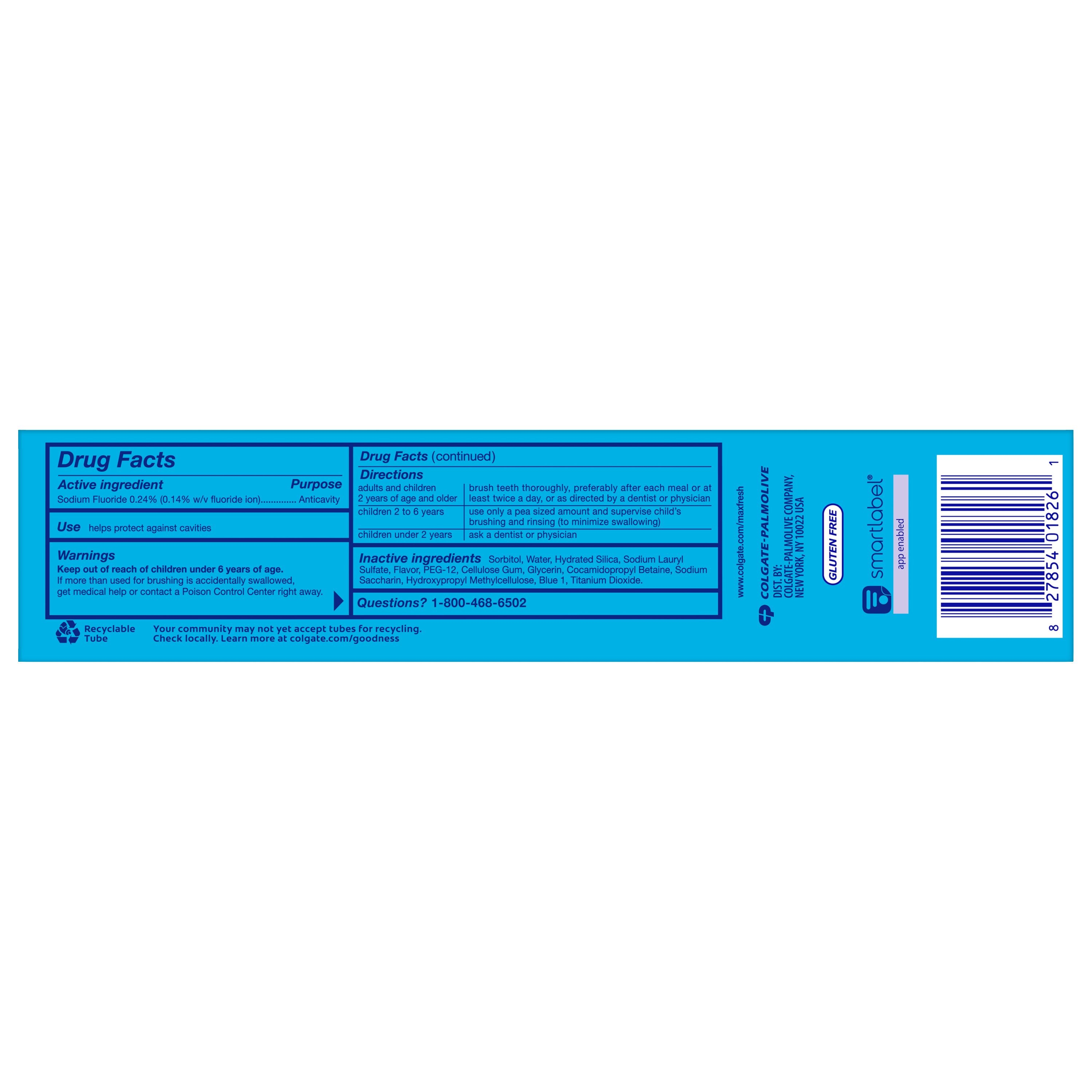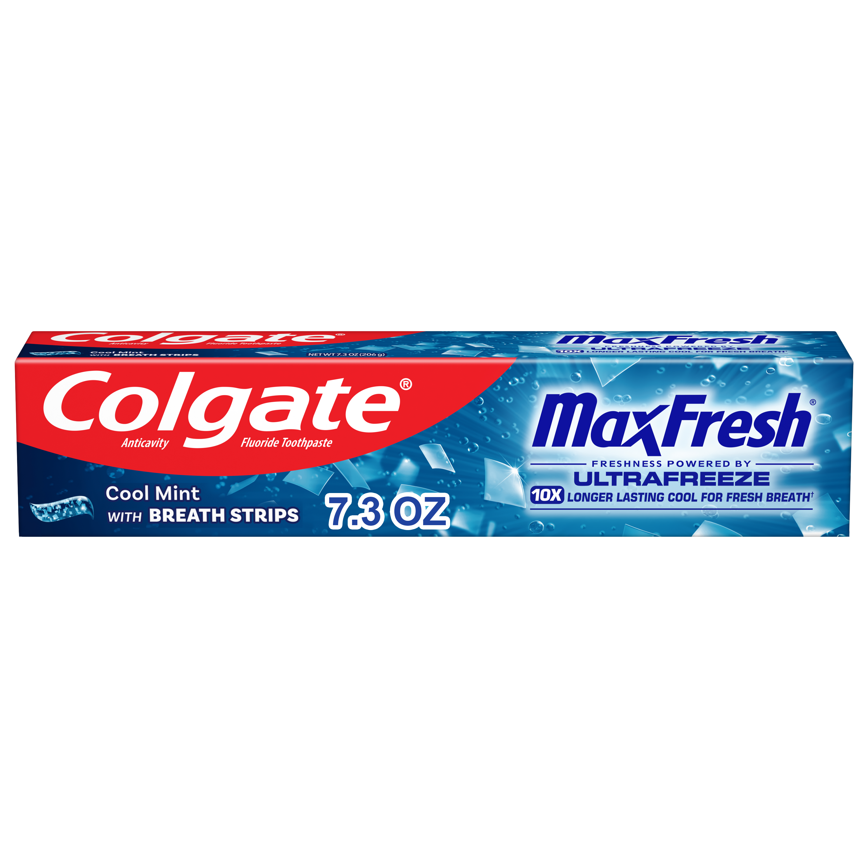 SKU 61045226 Consumer Unit - GTIN 00827854018261 Case - GTIN 10827854018251 Product Category Oral Care Product Sub Category Toothpaste Product Equity (Brand) Colgate Product Sub Brand Colgate Max Fresh TP Product Title Colgate MaxFresh Cool Mint Toothpaste, 7.3 oz Product Description Release an instant blast of freshness with Colgate MaxFresh Cool Mint Toothpaste. Powered by Ultrafreeze, this invigorating peppermint toothpaste offers 10X longer-lasting cool for fresh breath*. This mint toothpaste, with the help of Ultrafreeze and hundreds of mini breath strips, is bursting with freshness that lasts for hours. Colgate MaxFresh Toothpaste comes in a refreshing Cool Mint flavor that invigorates the brushing experience. However, it’s more than just a toothpaste for bad breath, Colgate MaxFresh Cool Mint Toothpaste is also a fluoride toothpaste and helps prevent cavities. With its refreshing Cool Mint flavor and hundreds of mini breath strips, Colgate MaxFresh Toothpaste leaves your breath feeling fresh for hours. Plus, the fluoride-based formula helps fight cavities. Get long-lasting fresh breath with Colgate MaxFresh Cool Mint Toothpaste. *vs. a regular Colgate fluoride toothpaste eCommerce Copy- Long Description Release an instant blast of freshness with Colgate® Max Fresh Cool Mint Toothpaste. Powered by Ultrafreeze, this invigorating peppermint toothpaste offers 10X longer-lasting cool for fresh breath*. This mint toothpaste, with the help of Ultrafreeze and hundreds of breath strips, releases a powerful rush of freshness for long-lasting fresh breath. Colgate® Max Fresh Toothpaste comes in a refreshing Cool Mint flavor that invigorates the brushing experience. However, it’s more than just a toothpaste for bad breath, Colgate® Max Fresh Cool Mint Toothpaste is also a fluoride toothpaste and helps prevent cavities. With its refreshing Cool Mint flavor and hundreds of breath strips, Colgate® Max Fresh Toothpaste leaves your breath feeling fresh for hours. *vs. a regular Colgate® fluoride toothpaste Bullet 1 Includes one (1) 7.3 oz tube of Colgate MaxFresh Cool Mint Toothpaste Bullet 2 Powered by Ultrafreeze, Colgate MaxFresh Toothpaste offers 10X longer-lasting cool for fresh breath* Bullet 3 Fluoride toothpaste formula helps fight cavities Bullet 4 This peppermint toothpaste, with hundreds of mini breath strips, is bursting with freshness that lasts for hours Bullet 5 Release an instant blast of freshness with Colgate MaxFresh Cool Mint Toothpaste