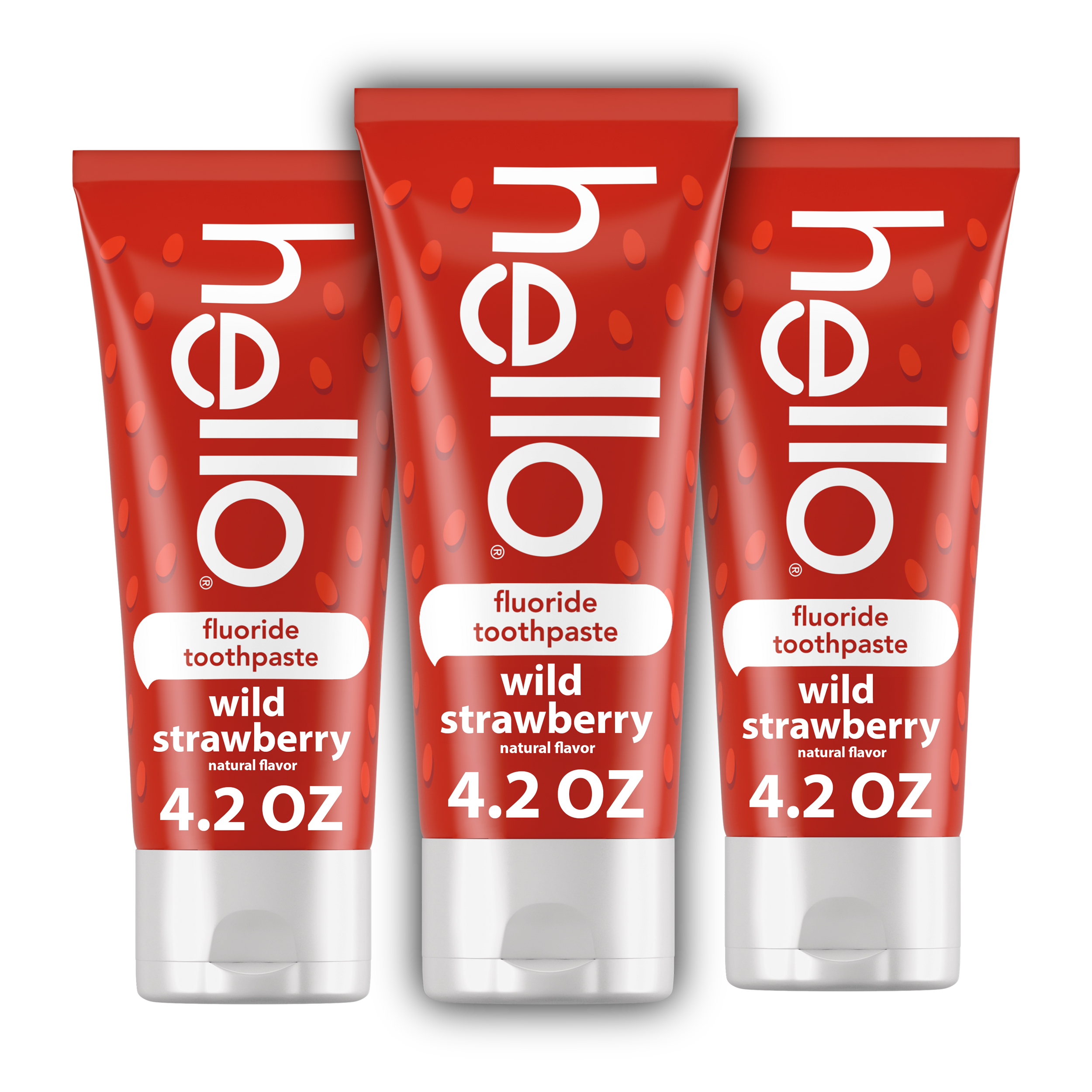 SKU 61045377 Consumer Unit - GTIN 00827854018391 Case - GTIN 10827854018381 Product Category Oral Care Product Sub Category Toothpaste Product Equity (Brand) hello Product Sub Brand Hello Kids TP Product Title hello Wild Strawberry Kids Toothpaste with Fluoride, 3 Pack, 4.2 Oz Product Description Say goodbye to brush time negotiations and hello to everyday yay with hello Wild Strawberry Kids Toothpaste with Fluoride. This children’s toothpaste tastes awesome and works brilliantly. This kids fluoride toothpaste pack is safe for ages 2 and up and the strawberry toothpaste flavor will make them rush to brush. Hello Wild Strawberry Kids Fluoride Toothpaste tastes awesome and works brilliantly. This kids toothpaste packs a flavor explosion of strawberry goodness that is perfect for brush time magic. Formulated with fluoride, this children’s toothpaste can help prevent cavities, strengthen enamel, and polish and brighten your little one's teeth. Don’t worry parents, we won’t tell if you decide to take a brush for yourself. We’re serious about being friendly, and about what goes into little mouths. That means making a kids toothpaste that contains no artificial sweeteners, artificial flavors, preservatives, SLS, parabens, dyes, spicy mint, and that is gluten free. Plus, this SLS free toothpaste is ADA approved, , and not tested on animals. Choose friendly and brush happy with hello Wild Strawberry Kids Toothpaste with Fluoride. Bullet 1 Includes three (3) 4.2 oz tubes of hello Wild Strawberry Kids Toothpaste with Fluoride, Strawberry Toothpaste for Kids Bullet 2 hello Wild Strawberry Kids Toothpaste is formulated with delish natural strawberry flavor Bullet 3 This kids fluoride toothpaste pack is safe for ages 2 and up and helps prevent cavities and strengthens enamel in growing teeth Bullet 4 The strawberry toothpaste works brilliantly as a children’s toothpaste to polish and brighten little smiles Bullet 5 This gluten-free kids toothpaste contains no SLS, preservatives, parabens, dyes, spicy mint, artificial sweeteners, or artificial flavors Amazon RPC B0CTD1Y2KG AMZ URL https://www.amazon.com/dp/B0CTD1Y2KG
