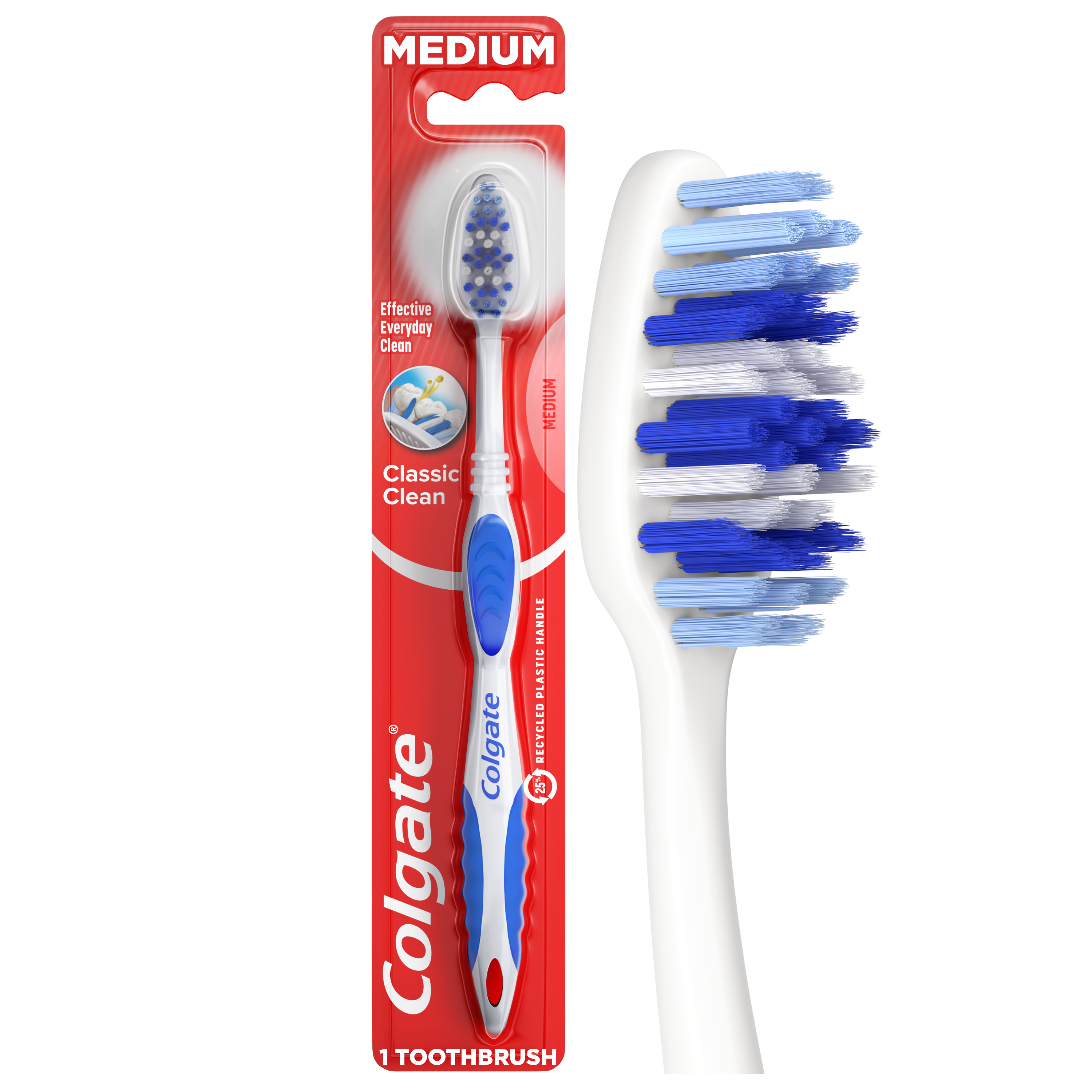 SKU 61045466 Consumer Unit - GTIN 00035000553775 Product Category Oral Care Product Sub Category Manual TB Product Equity (Brand) Colgate Product Sub Brand Colgate Premier Man TB Product Title Colgate Classic Adult Toothbrush Product Description Colgate Classic Clean Soft toothbrush has multilevel bristles that remove food particles in between teeth. It also has a soft tongue cleaner that gently removes odor causing bacteria and an easy-to grip handle to provide comfort and control while brushing. Bullet 1 Multilevel bristles that remove food particles in between teeth Bullet 2 Soft tongue cleaner that gently removes odor causing bacteria Bullet 3 Easy-to grip handle to provide comfort and control Bullet 4 Soft toothbrush bristles