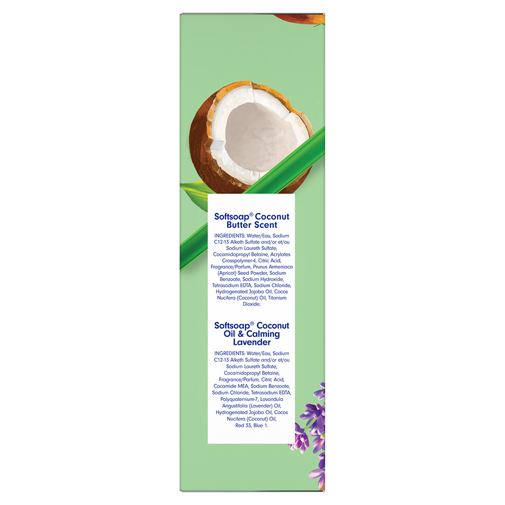 | Bullet 4 | Softsoap Coconut Oil and Calming Lavender Body Wash gives you a delightfully moisturizing yet effective clean. This body wash is made with real coconut and lavender oils |
